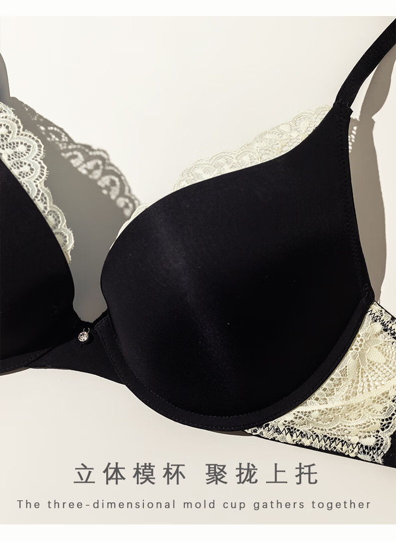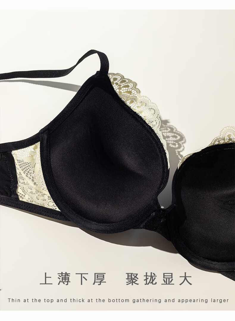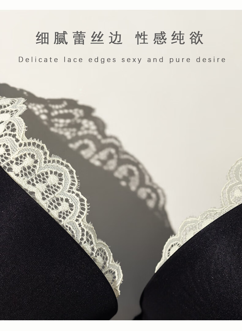 LangSha Sexy Lace Underwear Women's Summer New Small Breast Gathering Anti-Sagging Secondary Breast Seamless Bra Set Black Set S 32/70BC