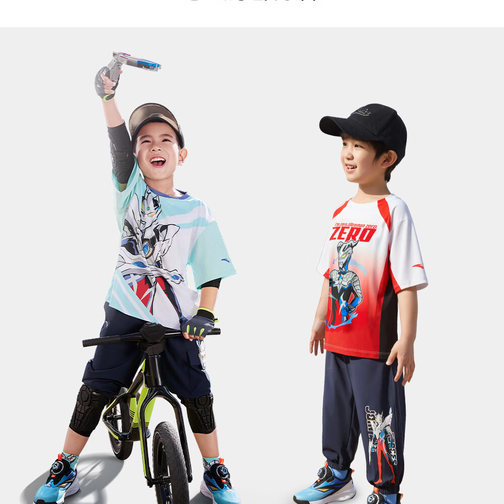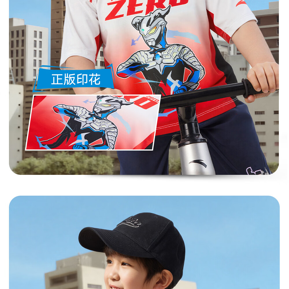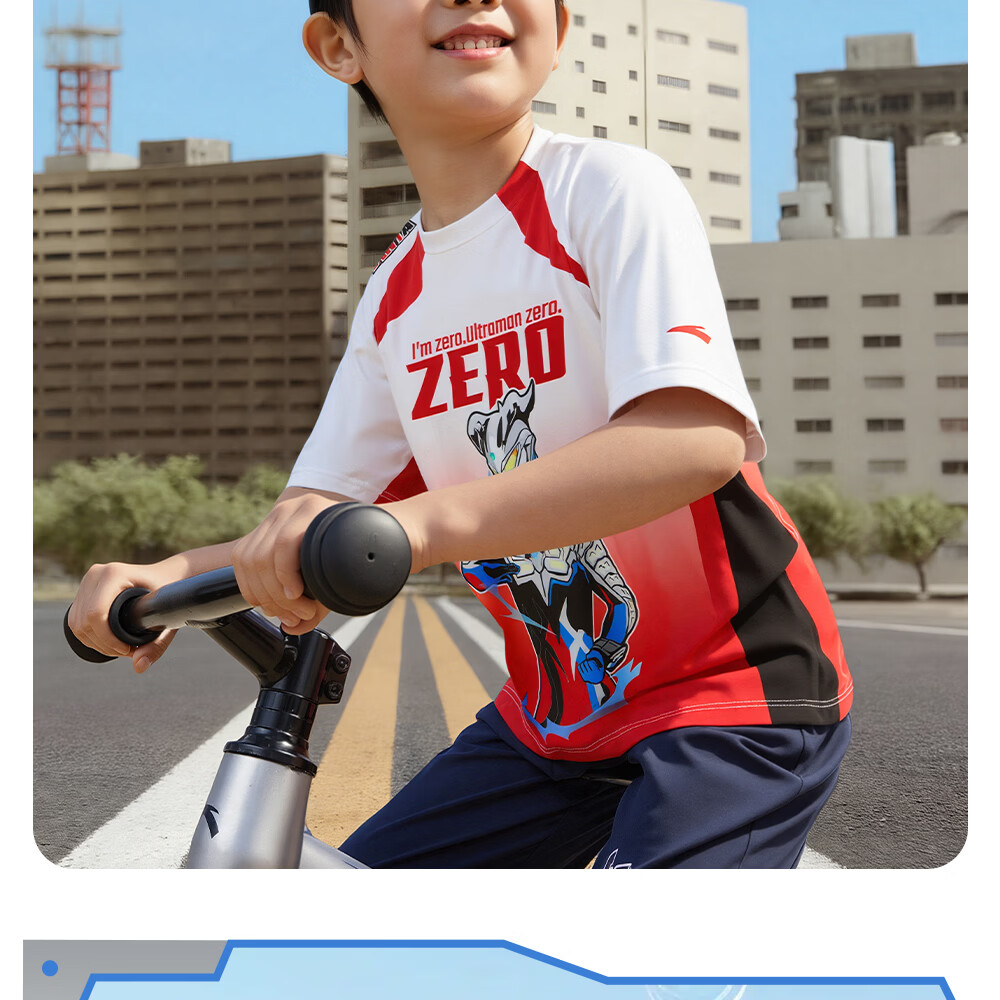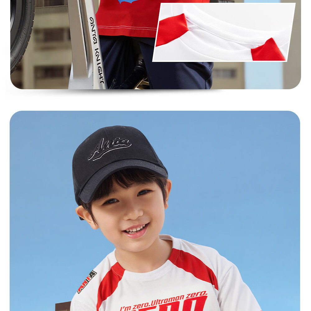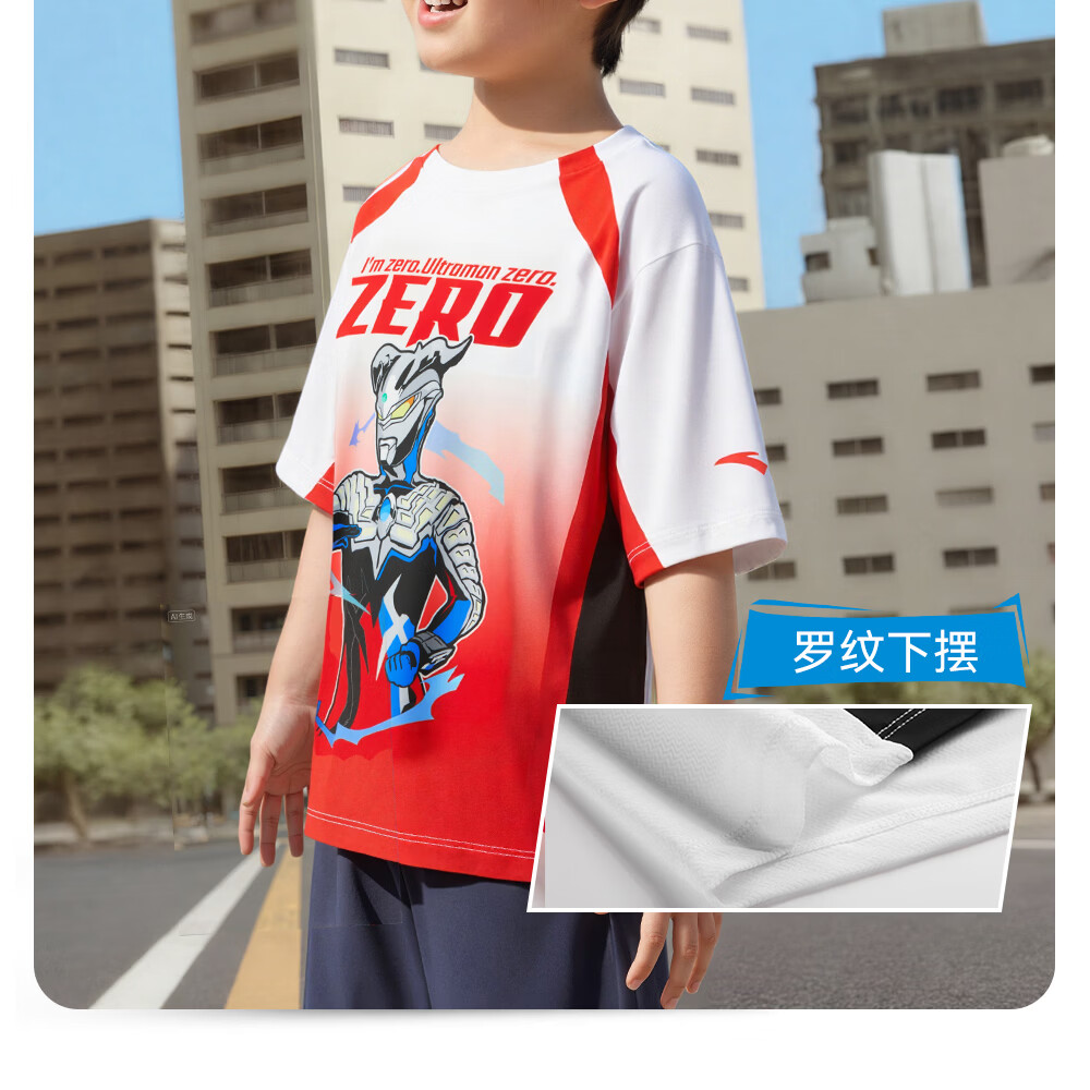 Anta children's T-shirt boys' wear Ultraman famous short T26 summer high elastic single guide quick dry cycling short sleeve pure white-1 110 cm/child