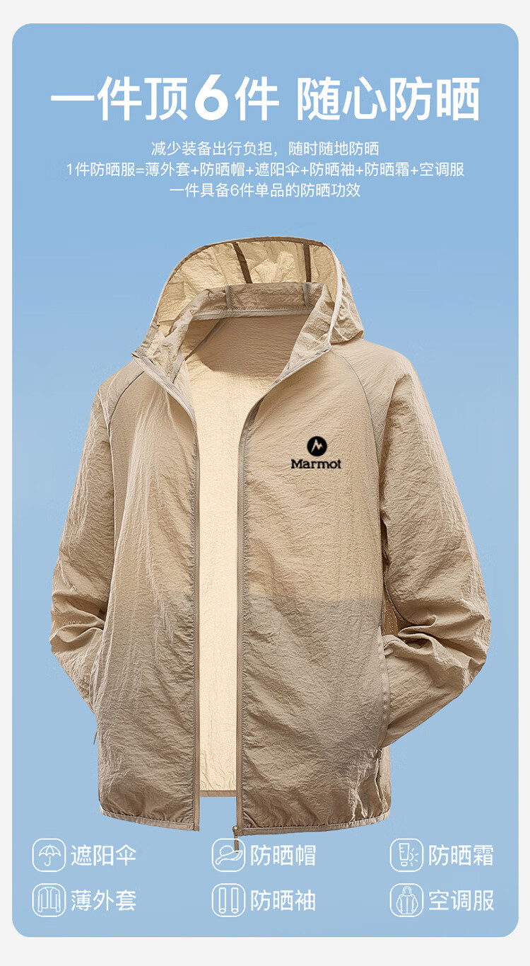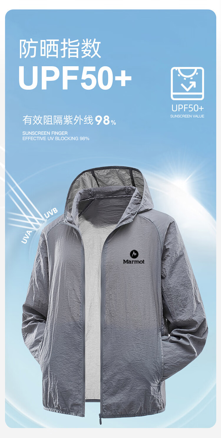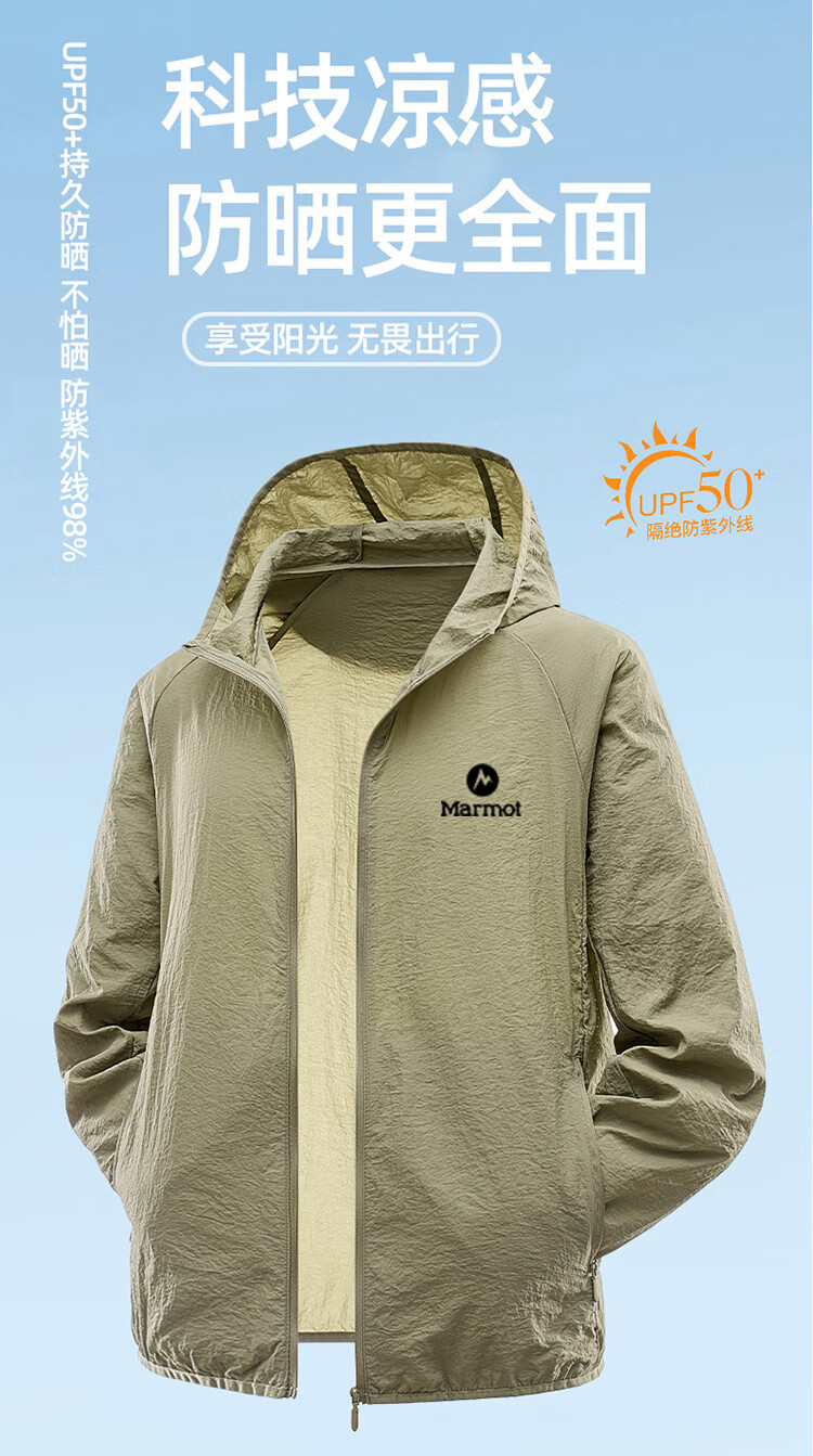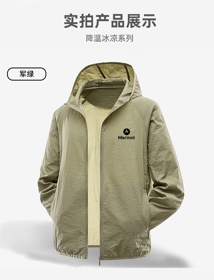 Marmot sun protection clothing men's hooded jacket summer thin outdoor mountaineering fishing clothing sports quick-drying skin clothing military green M