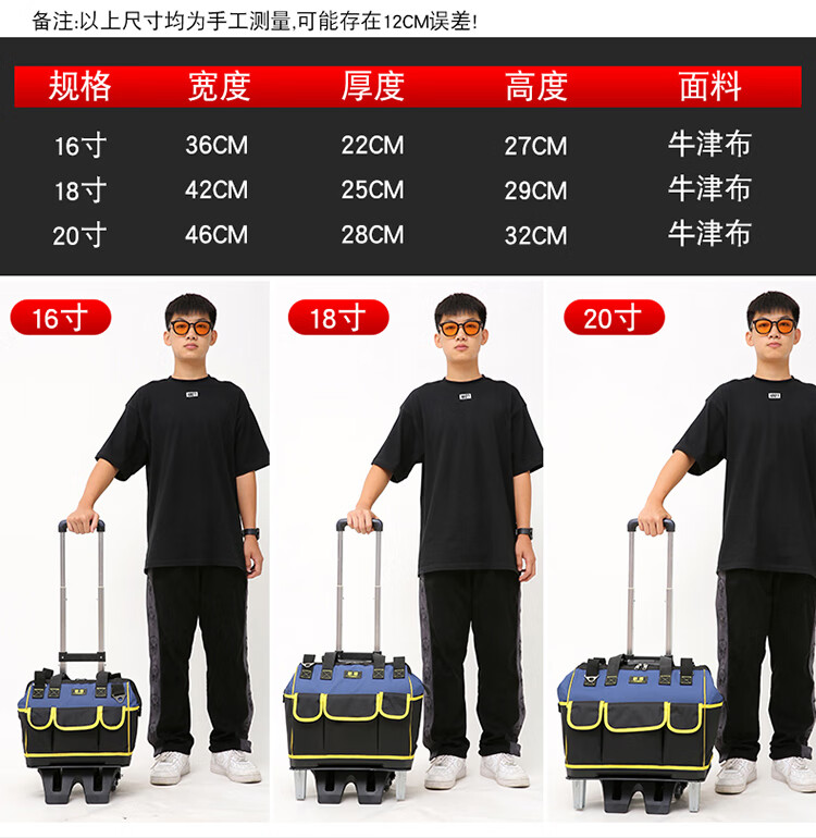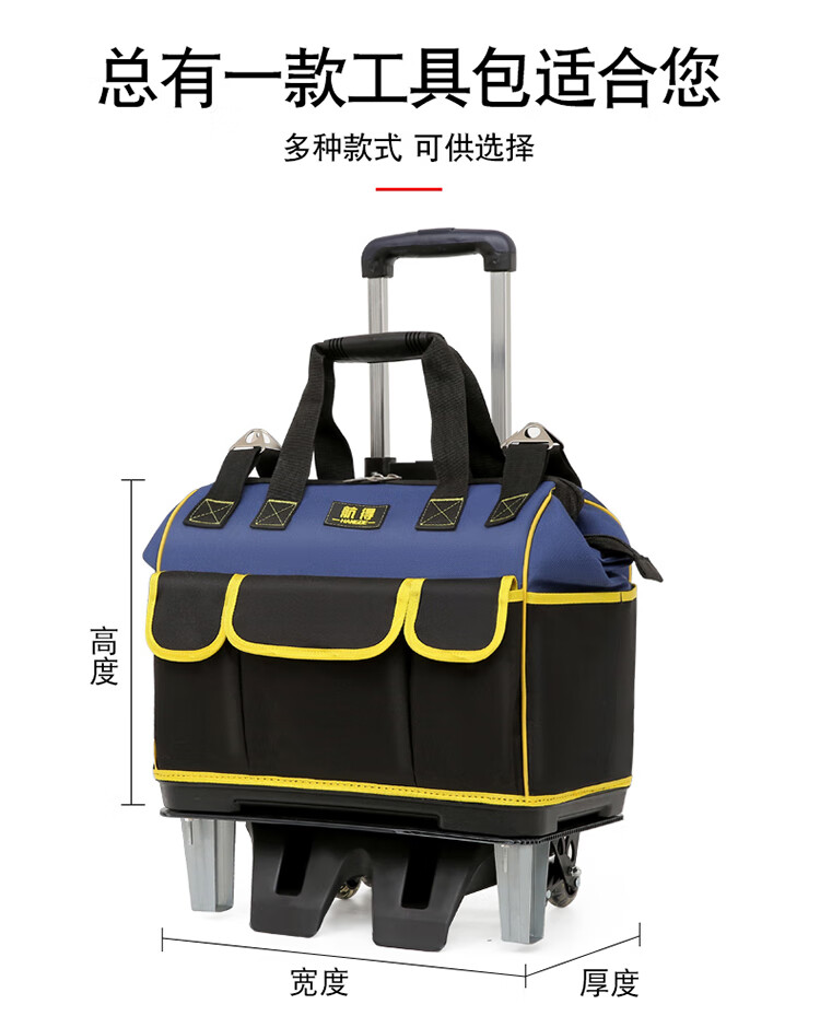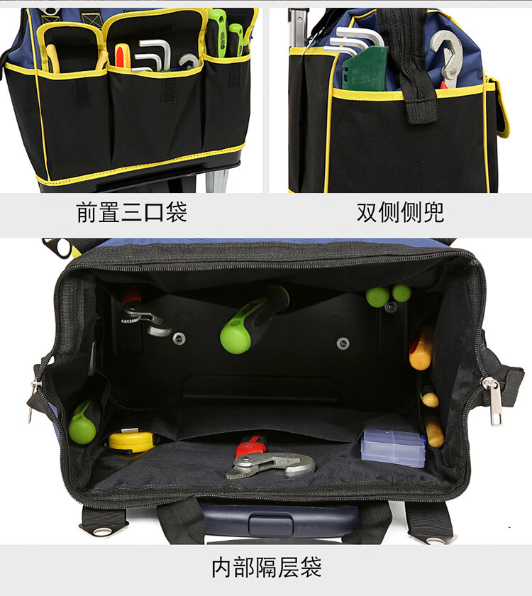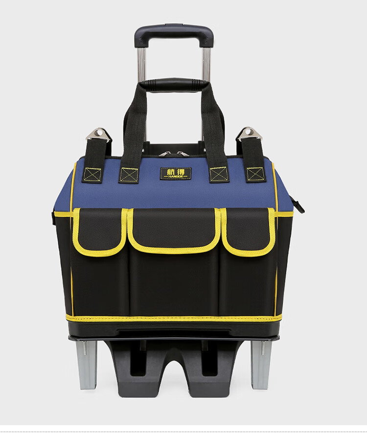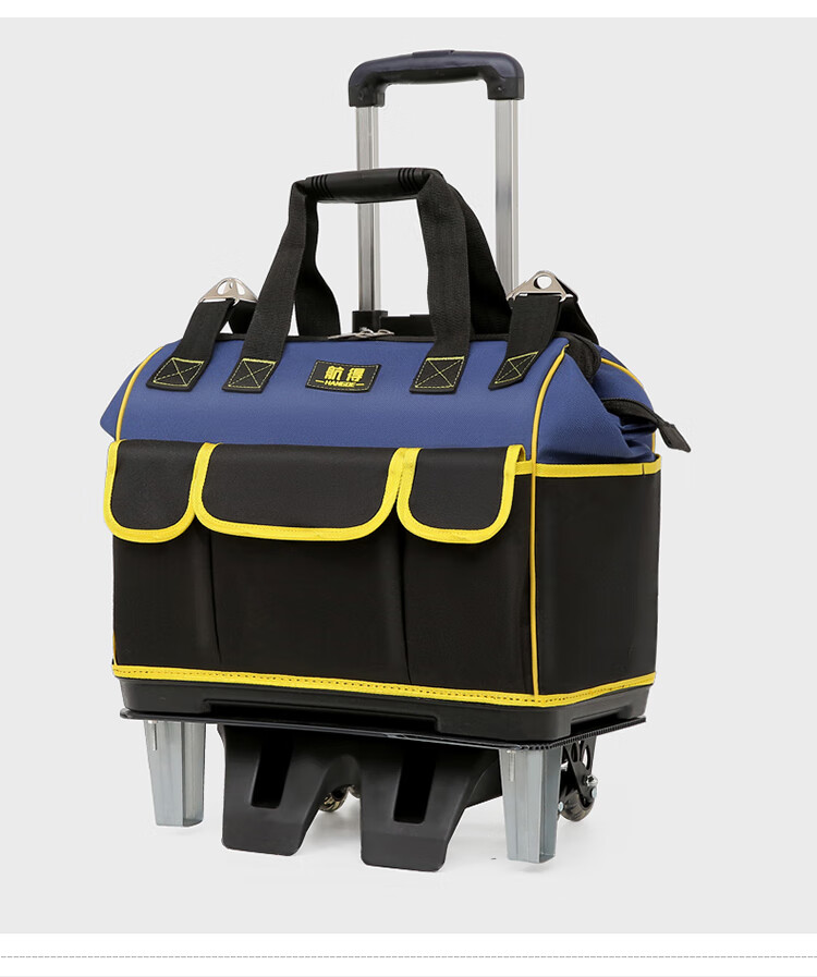 Shantou Lincun wheeled tool bag large pull rod roller canvas thickened multi-functional large capacity wear-resistant repair electrician tool box pull rod plastic bottom blue large