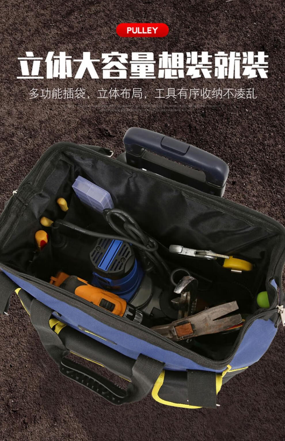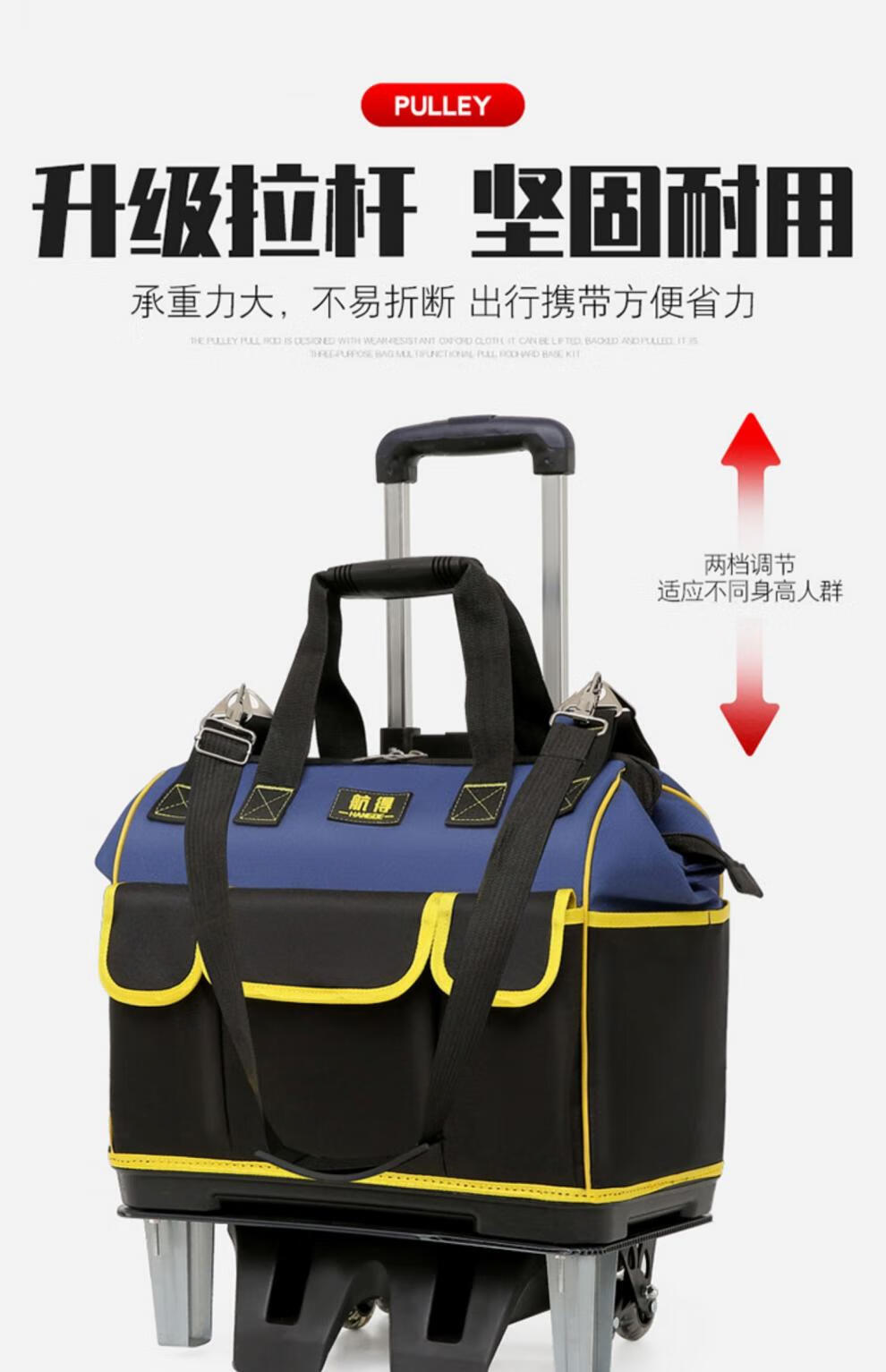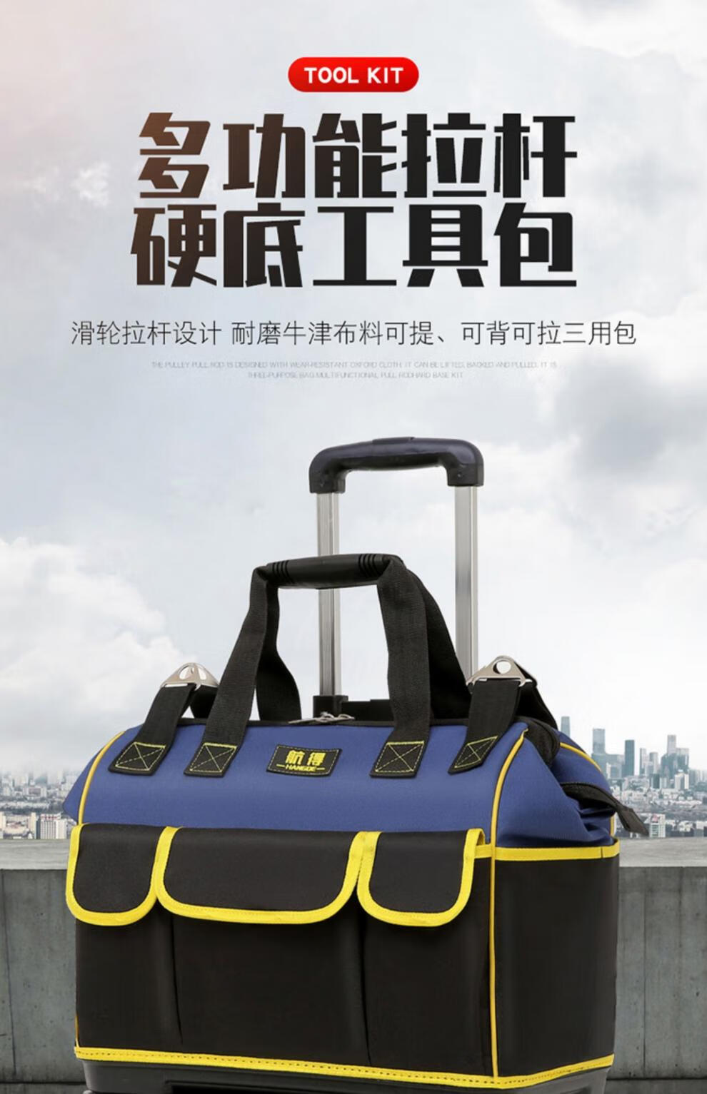 Shantou Lincun wheeled tool bag large pull rod roller canvas thickened multi-functional large capacity wear-resistant repair electrician tool box pull rod plastic bottom blue large