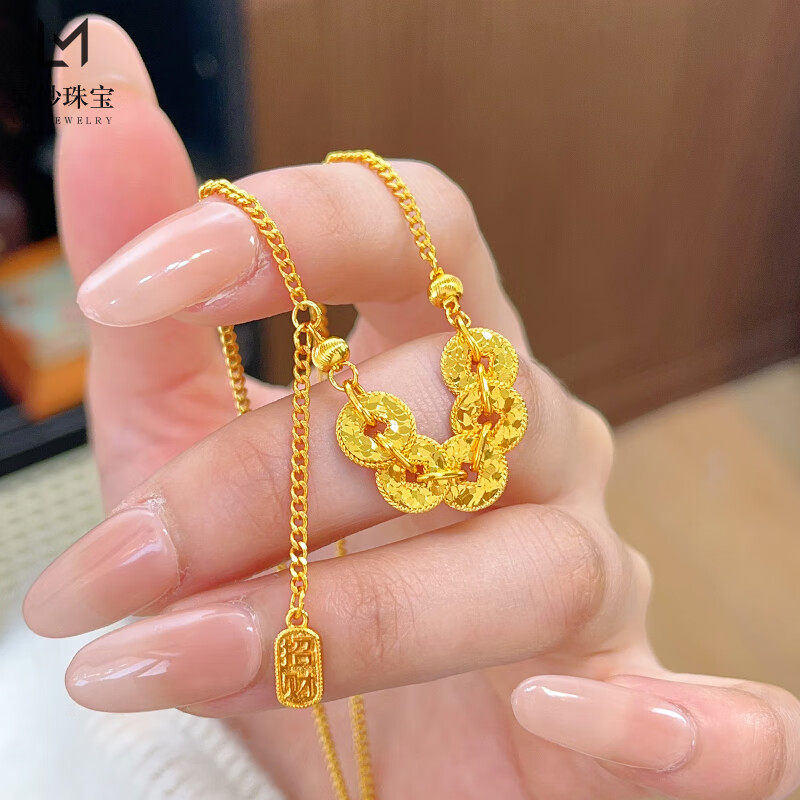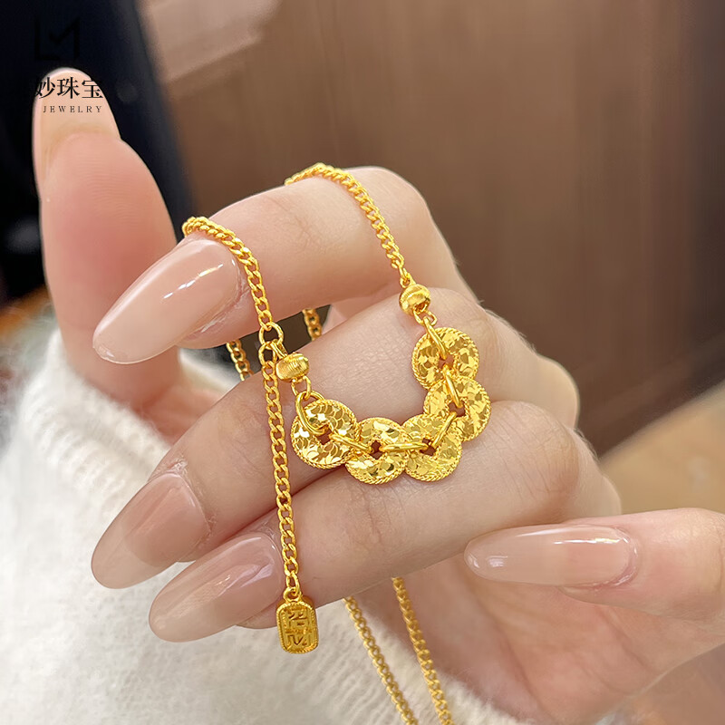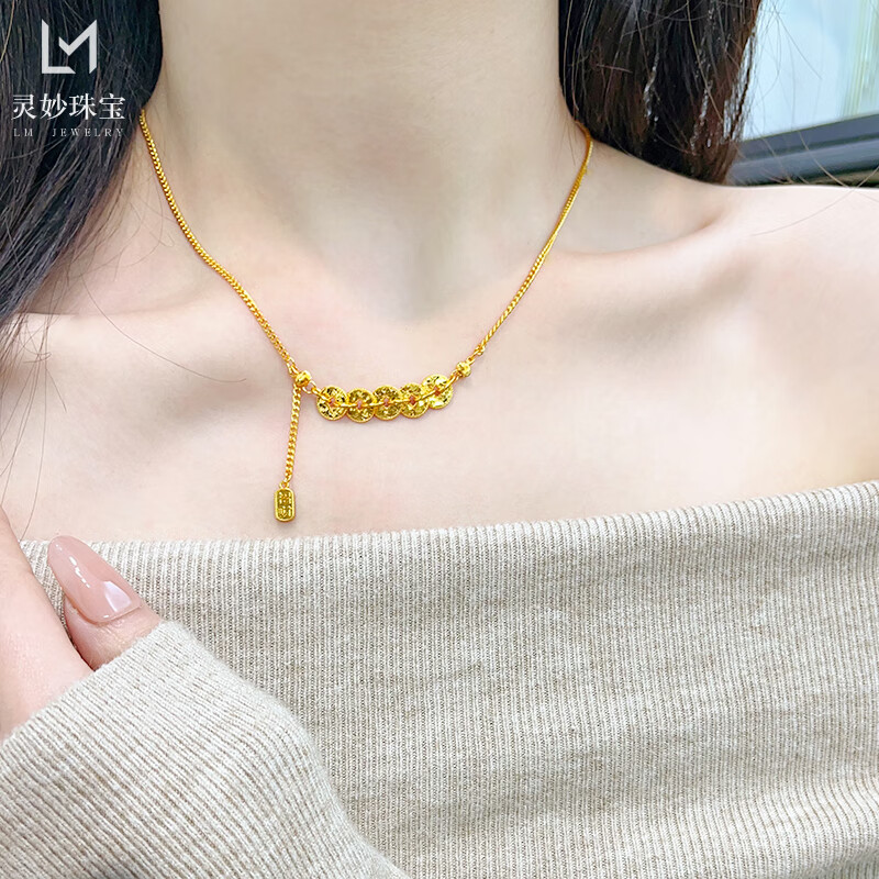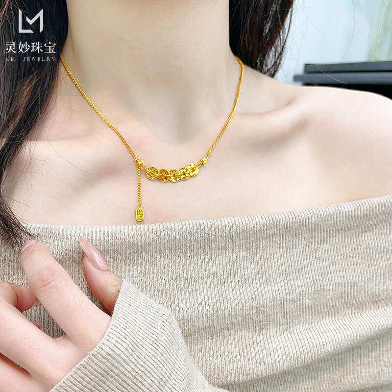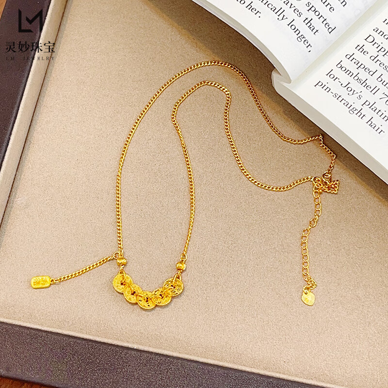 DRJEFUN Gold Shop Sand Gold Crushed Ice Cat's Eye Five Emperors Money Necklace Coin Tassel Clavicle Chain Temperament Light Luxury Gift for Women A0 Multi-Necklace Necklace