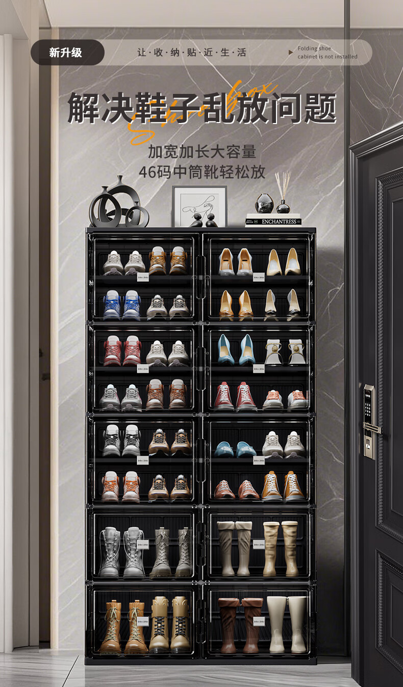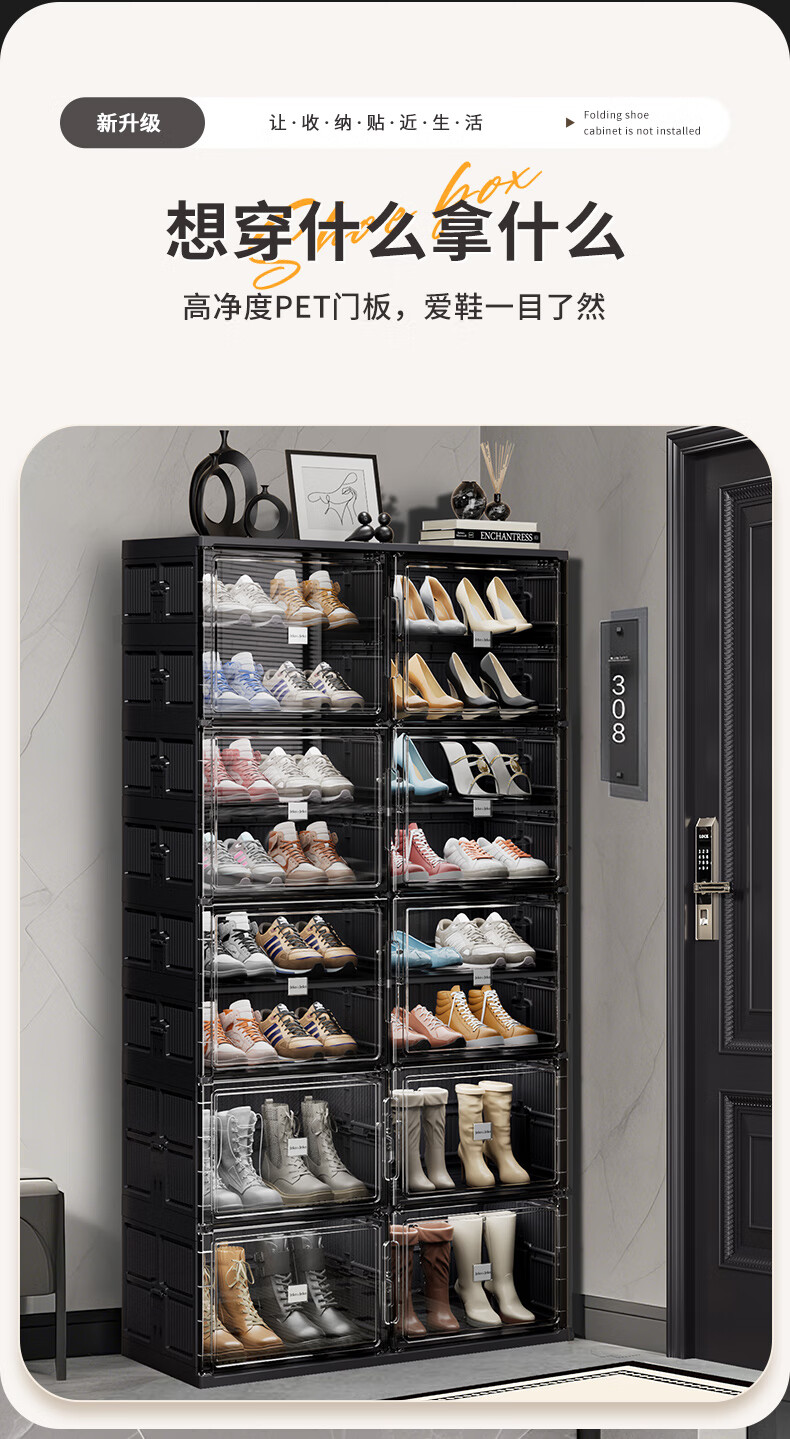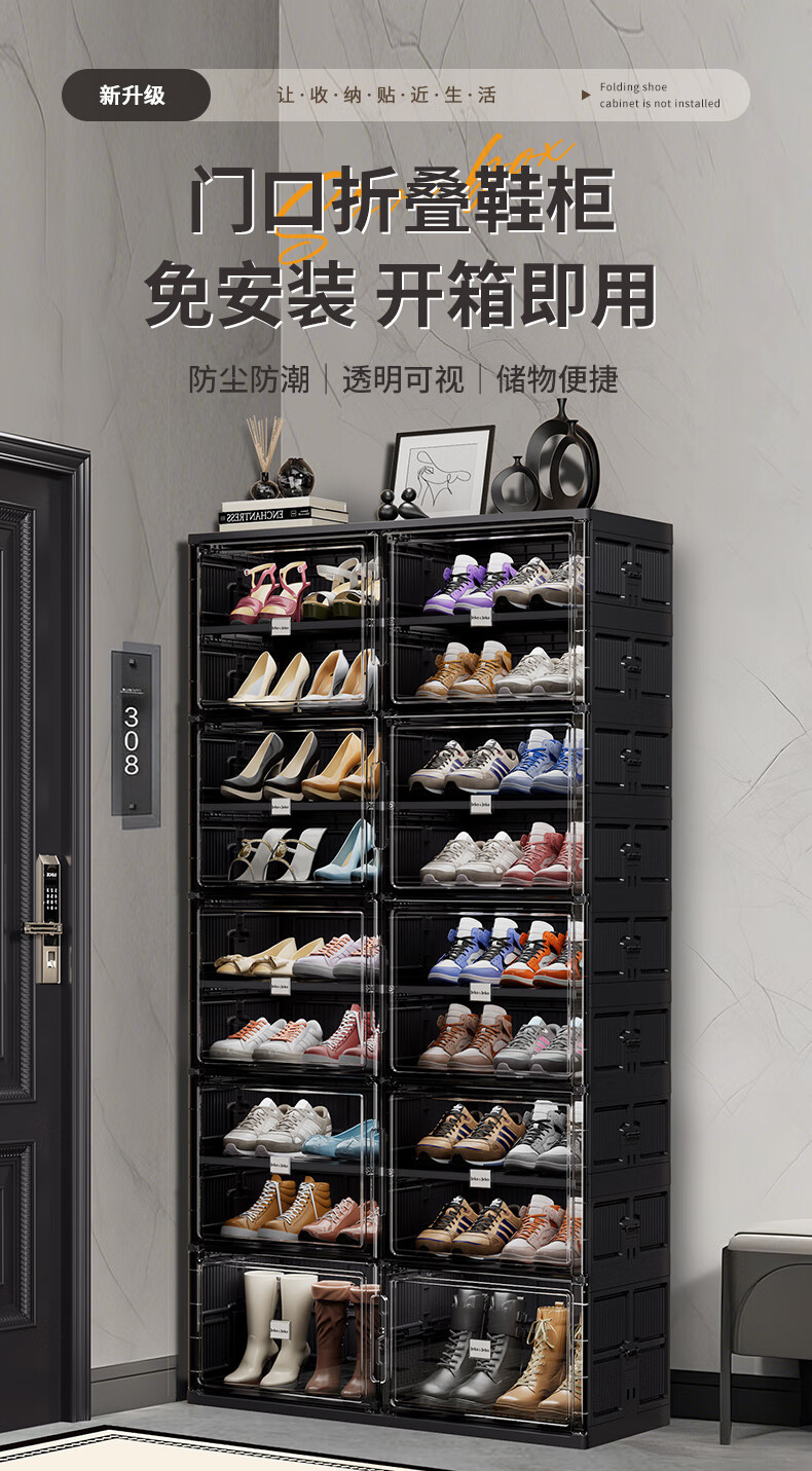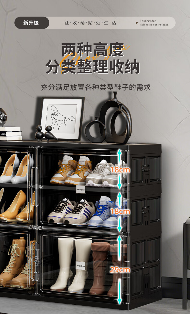 JEKO&JEKO installation-free foldable shoe cabinet plastic transparent shoe storage box household large-capacity dust-proof shoe shelf at the door 3 layers 1 high 2 short can hold 24 shoes black no installation required