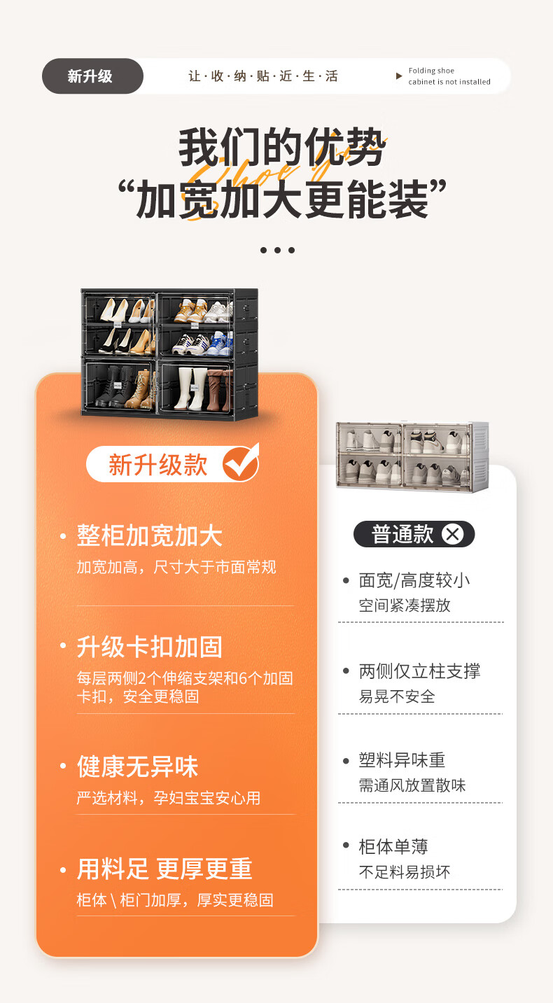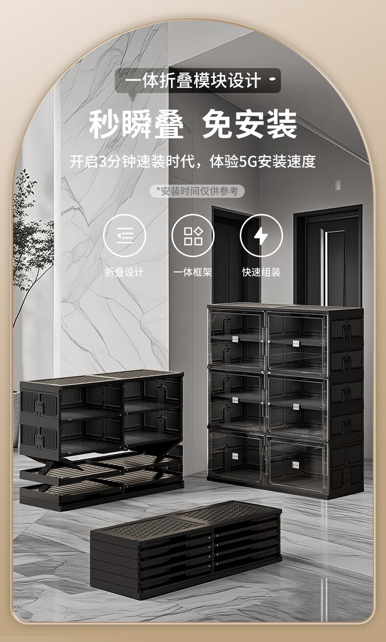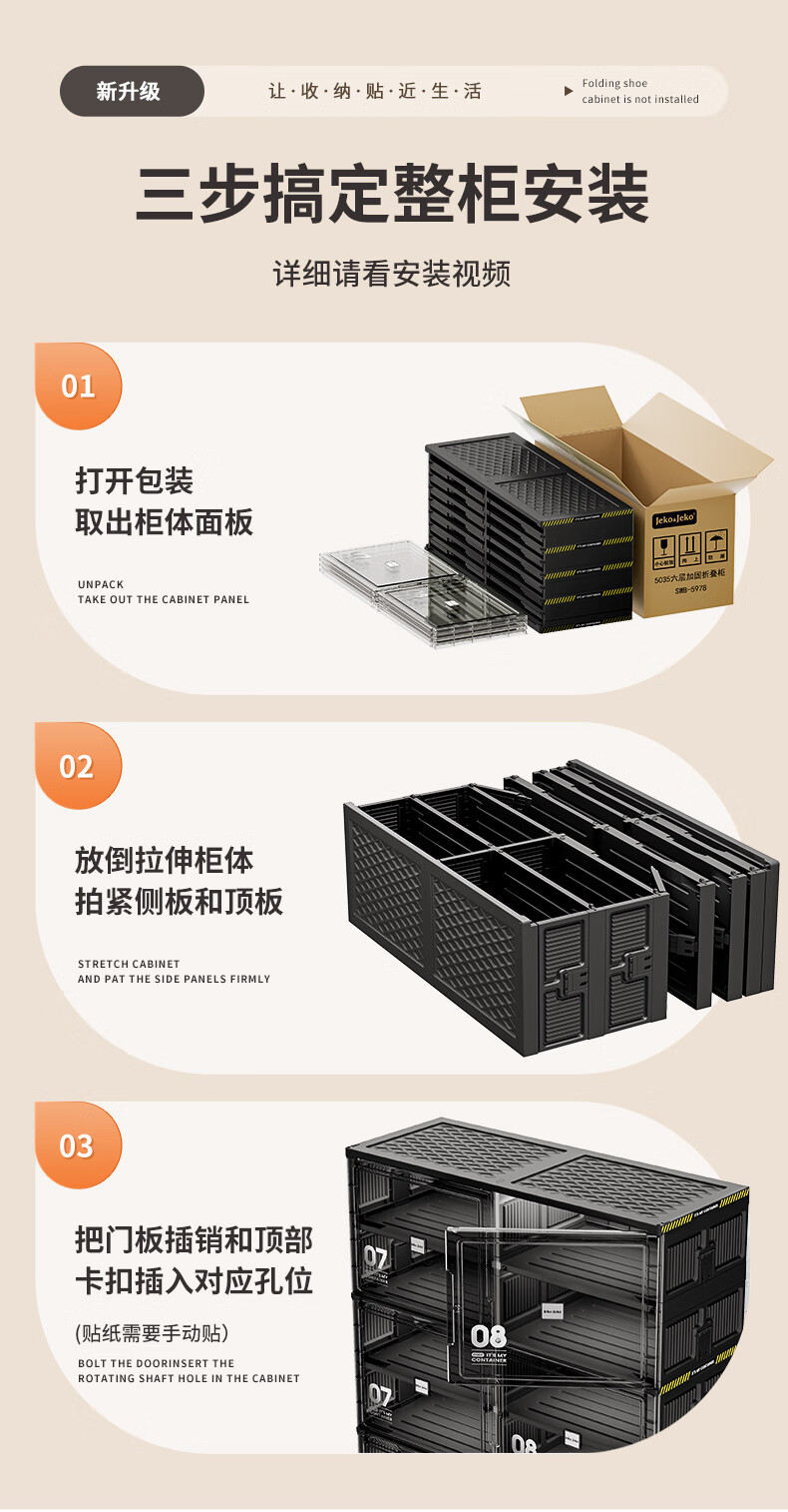JEKO&JEKO installation-free foldable shoe cabinet plastic transparent shoe storage box household large-capacity dust-proof shoe shelf at the door 3 layers 1 high 2 short can hold 24 shoes black no installation required