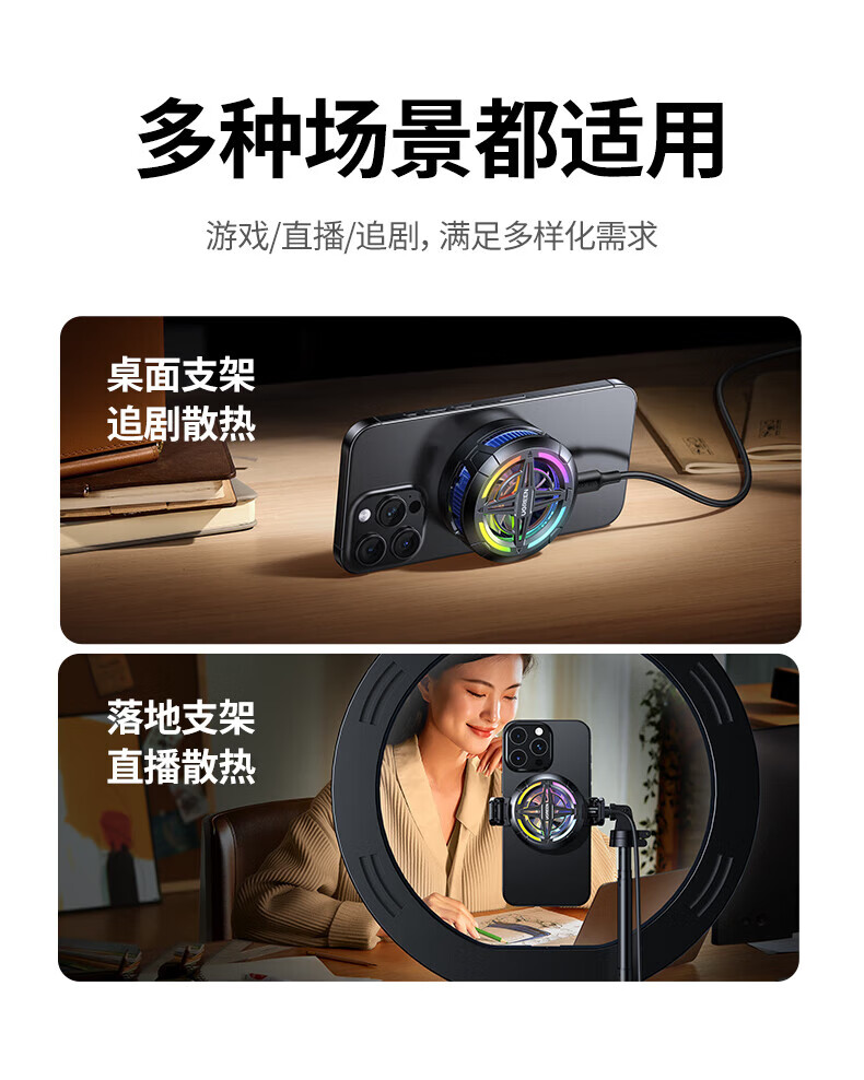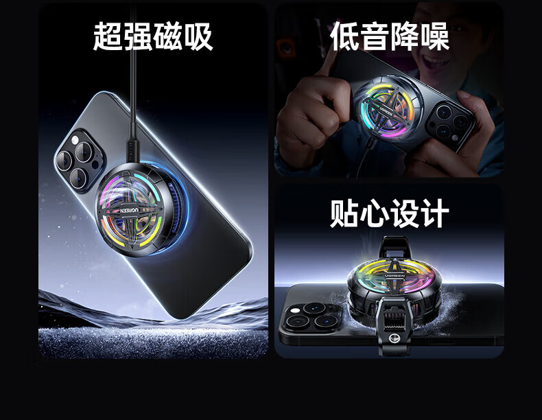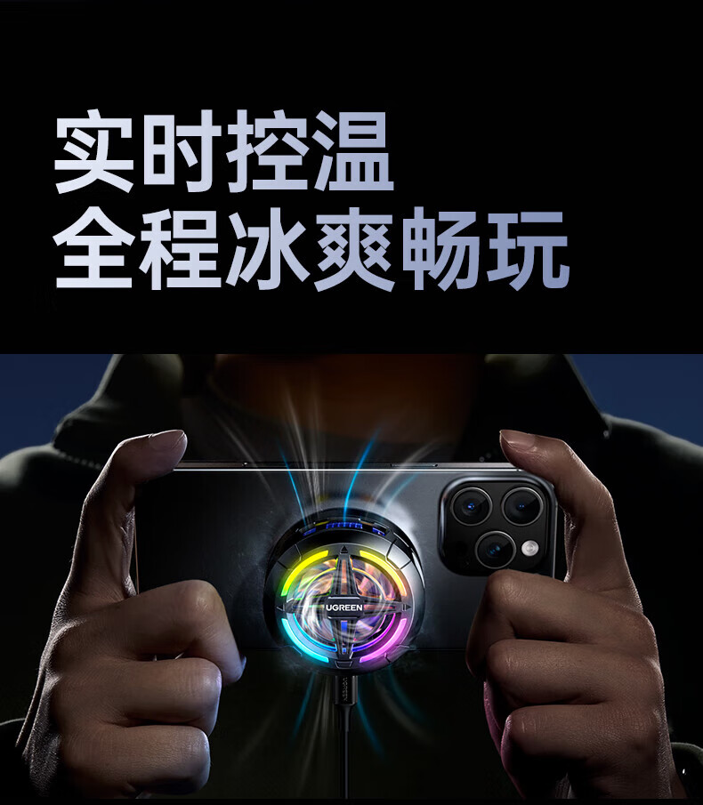 UGREEN mobile phone radiator, special magnetic semiconductor refrigeration, new noise reduction and temperature control, light sound back clip, e-sports live broadcast tablet, iPad, suitable for Android and Apple mobile phones, fast cooling, extremely strong heat dissipation, no lag in e-sports live broadcast