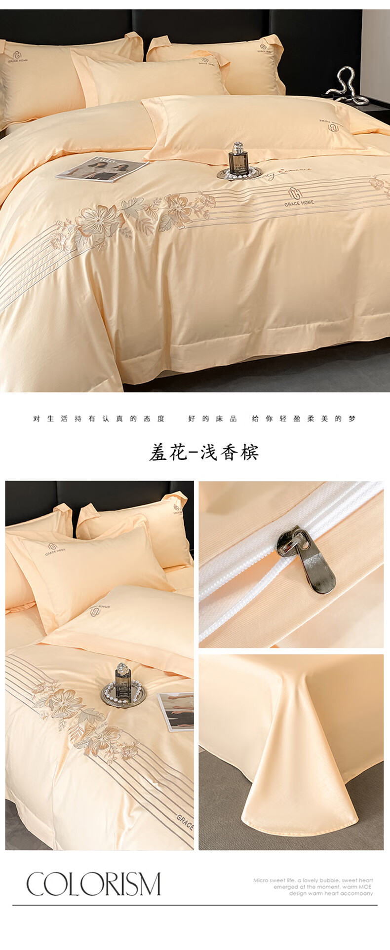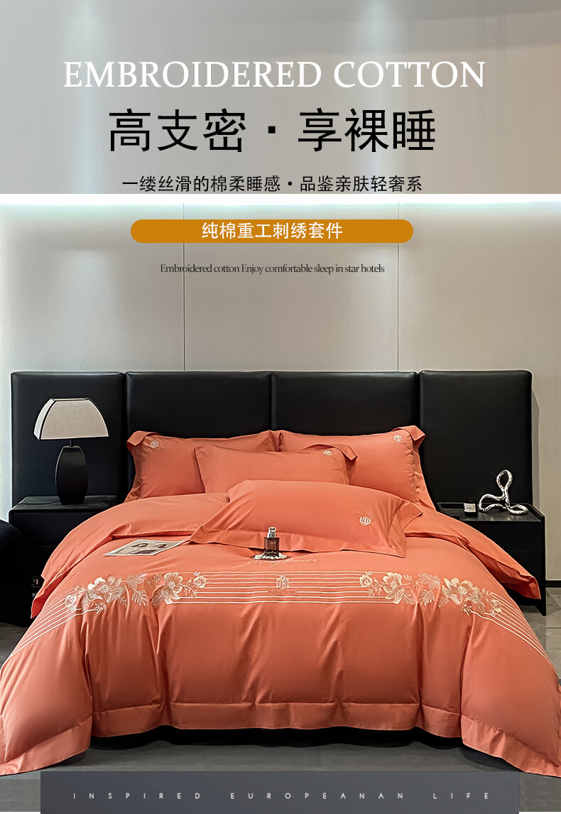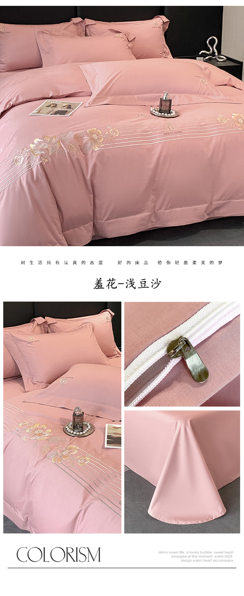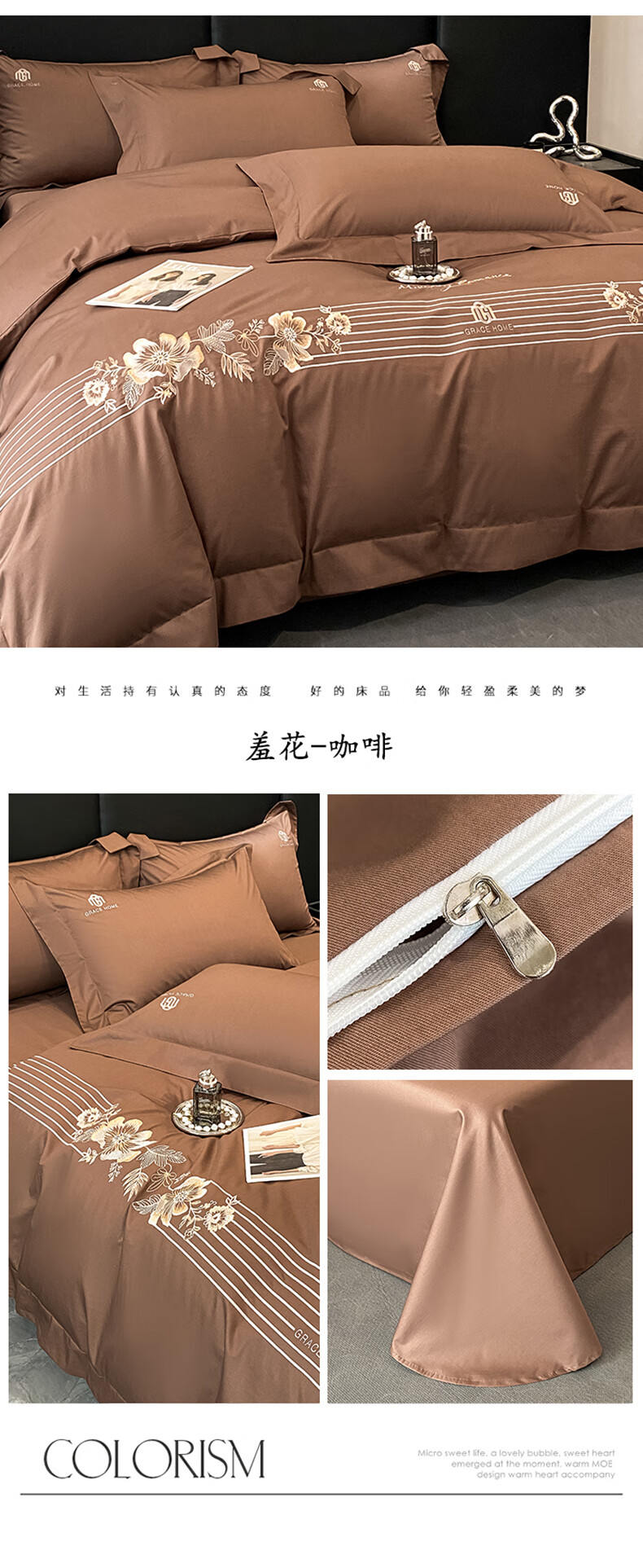 High-end 200 count cotton four-piece set, long-staple cotton pure cotton duvet cover and fitted sheet, skin-friendly, light luxury embroidered bedding for naked sleeping, Shame Flower-Aqua 1.8m duvet cover, extra large fitted sheet, four-piece set