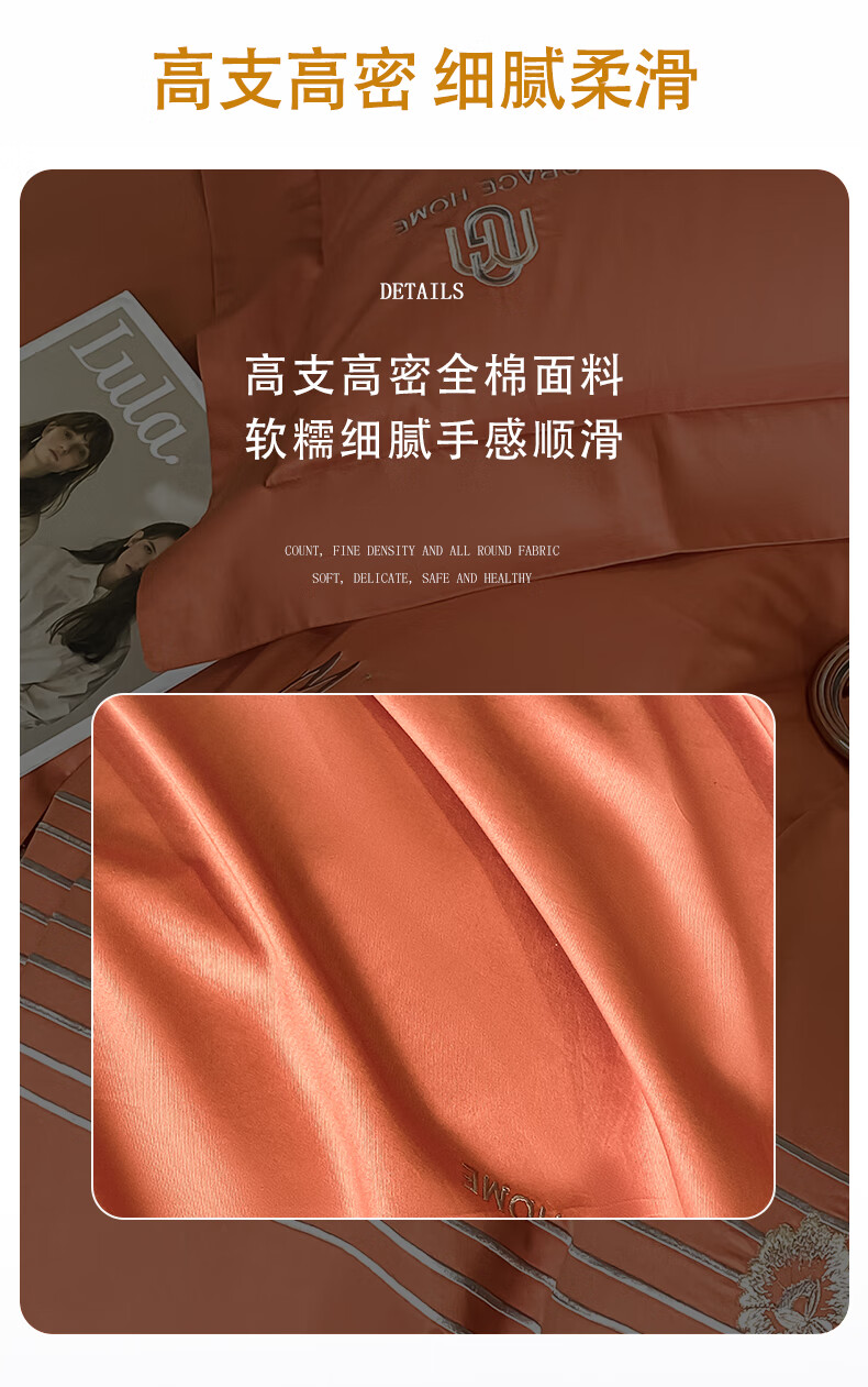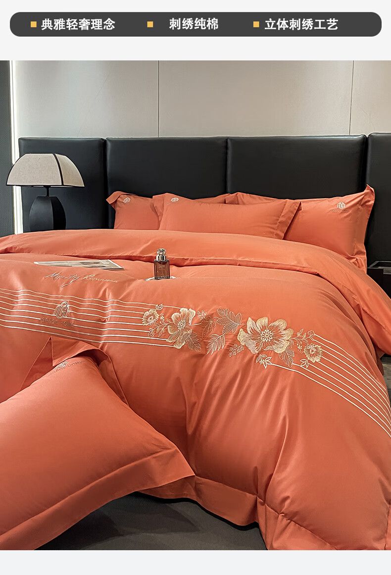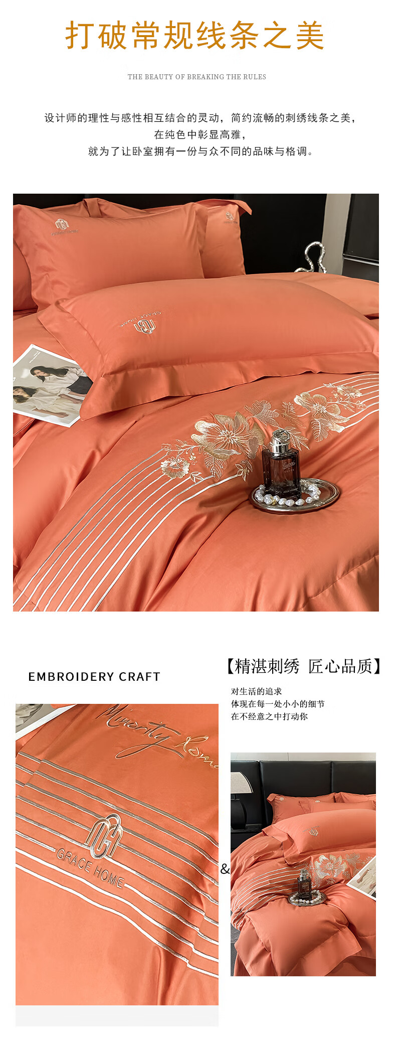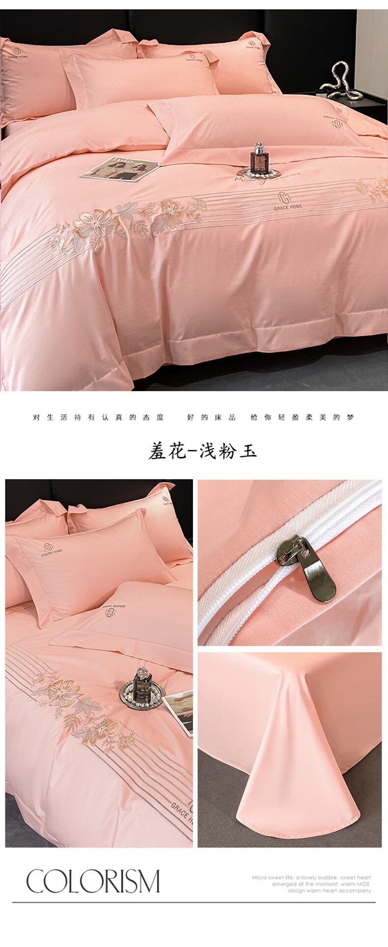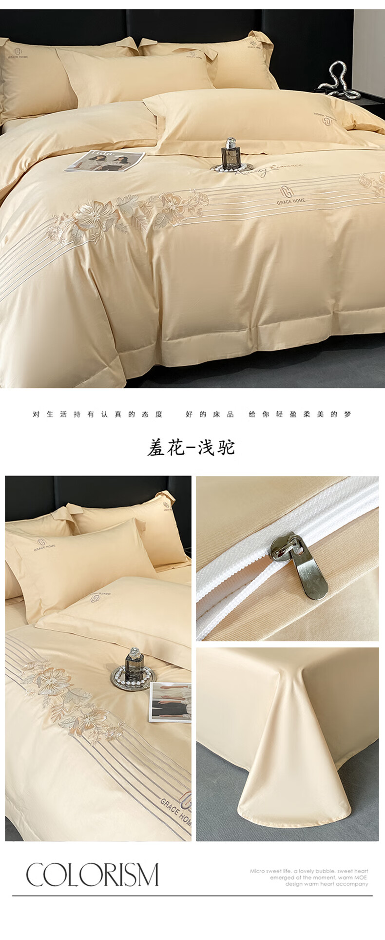 High-end 200 count cotton four-piece set, long-staple cotton pure cotton duvet cover and fitted sheet, skin-friendly, light luxury embroidered bedding for naked sleeping, Shame Flower-Aqua 1.8m duvet cover, extra large fitted sheet, four-piece set