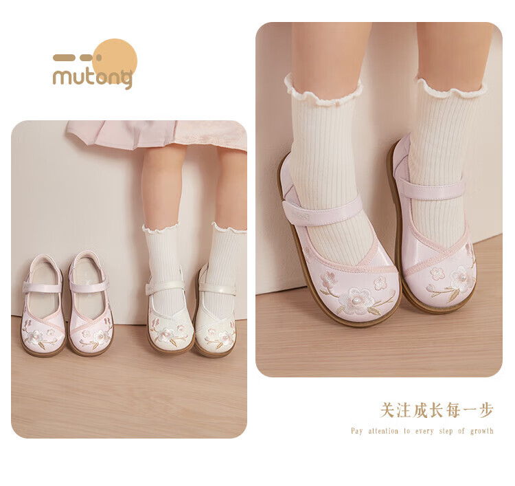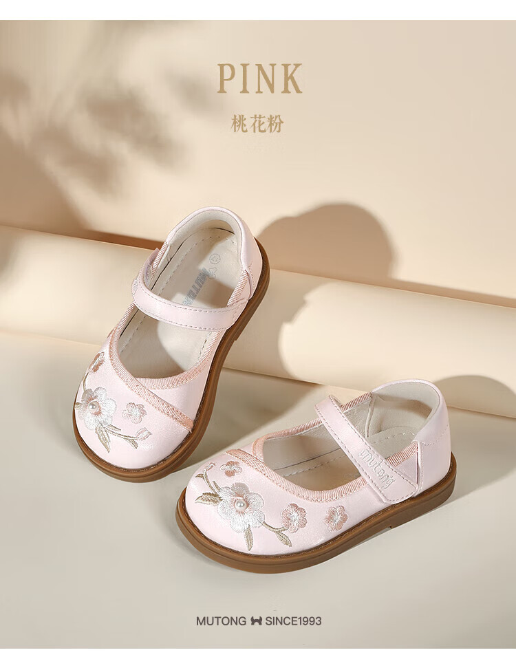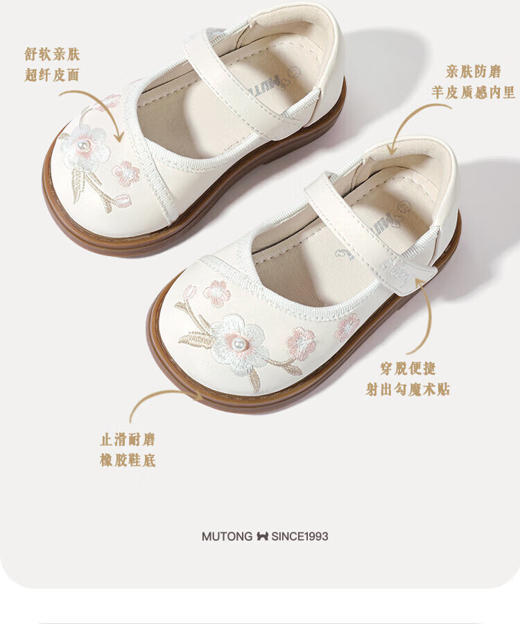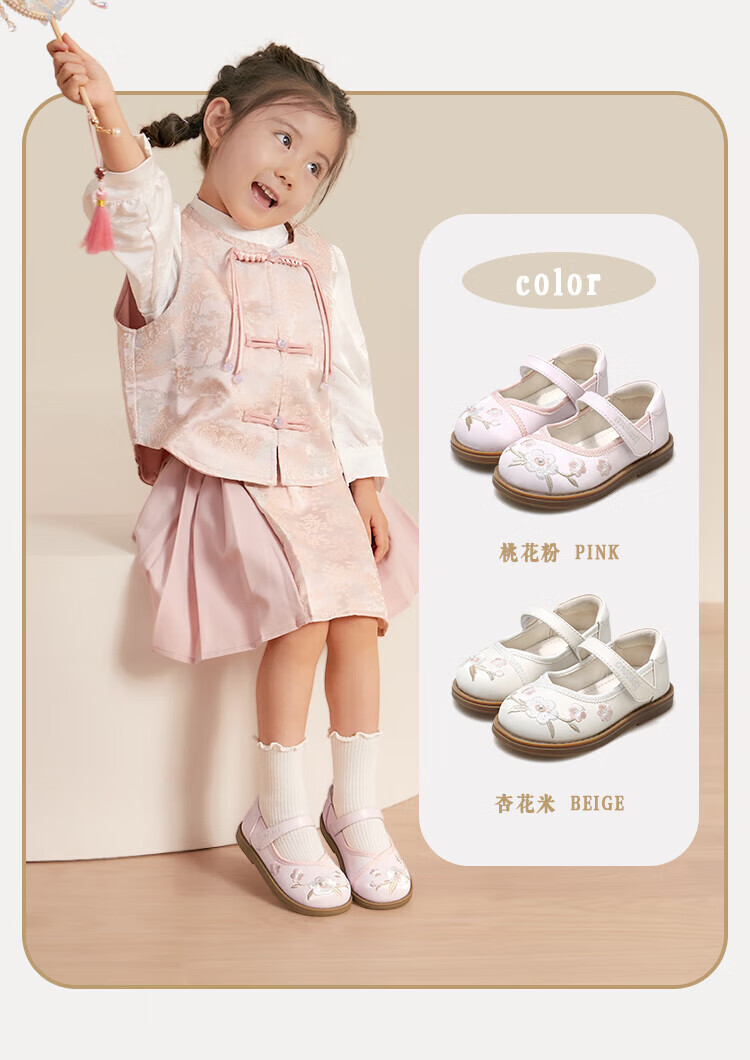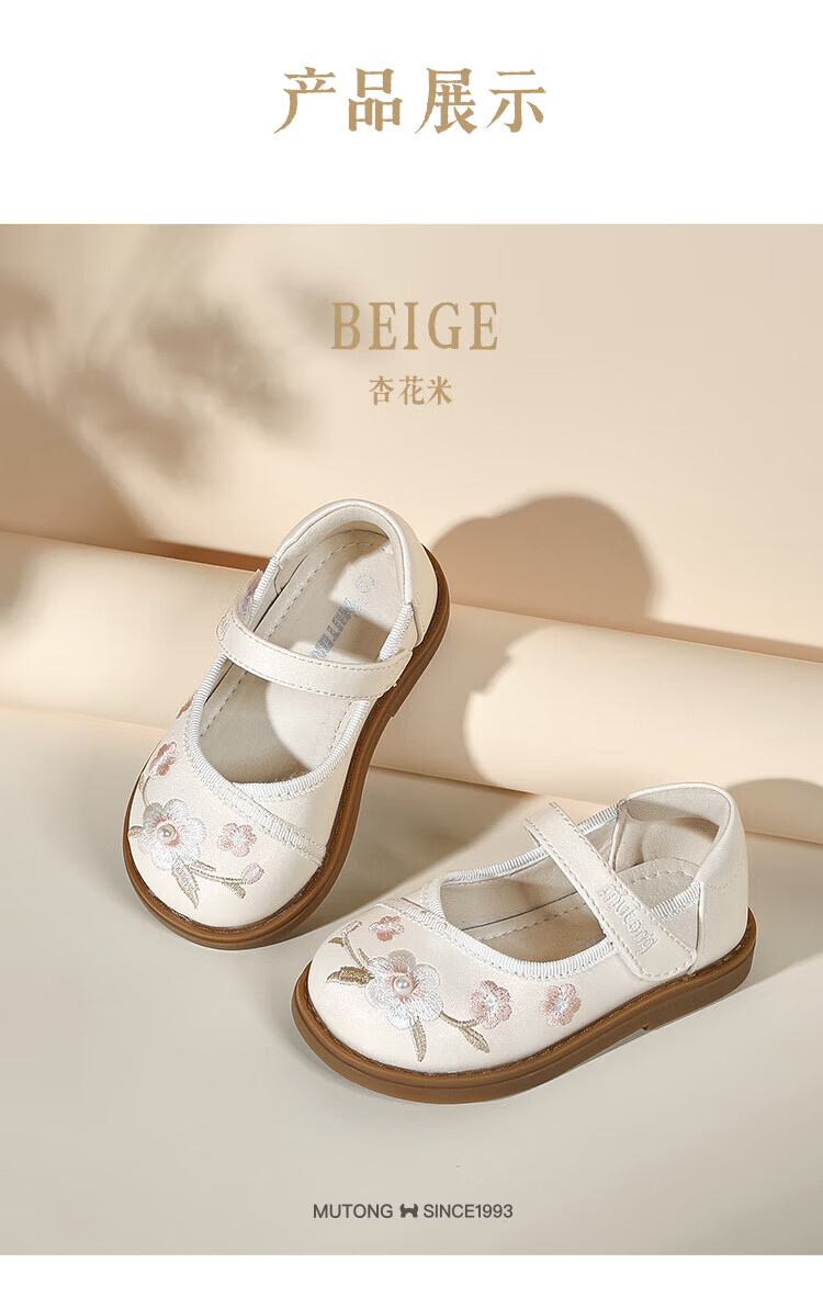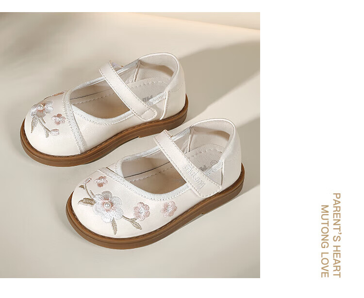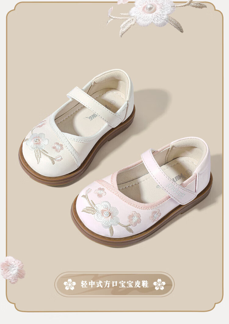 Shepherd boy off-code clearance toddler shoes for baby girl spring and autumn soft-soled sweet princess leather shoes new Chinese style embroidery national style apricot rice 30 shoe inner length 19.3cm