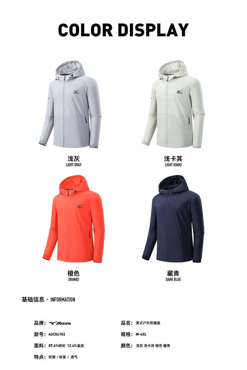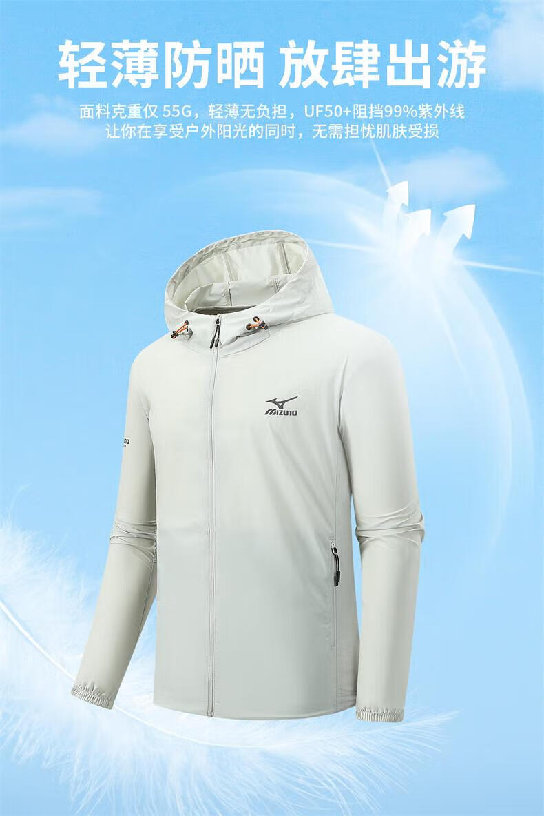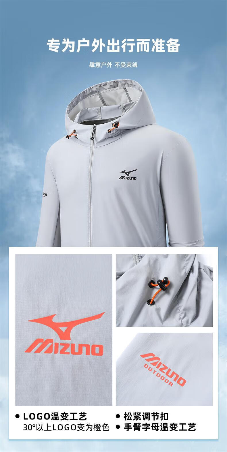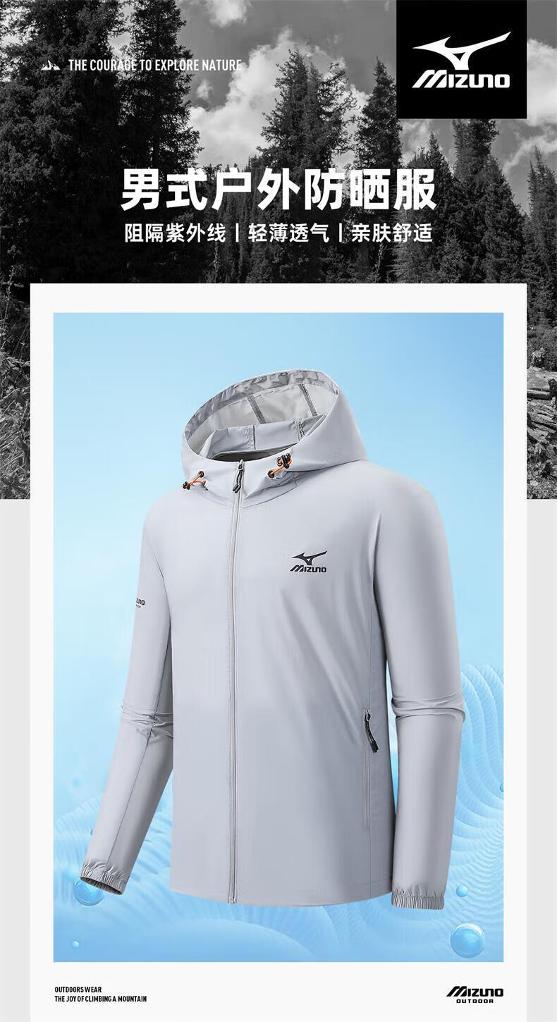 Mizuno Outdoor Skin Clothing Men's Summer Ice Silk Breathable Sun Protection Clothing Fishing Lightweight Casual Jacket Men Light Gray M