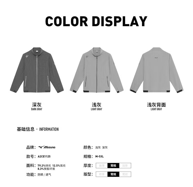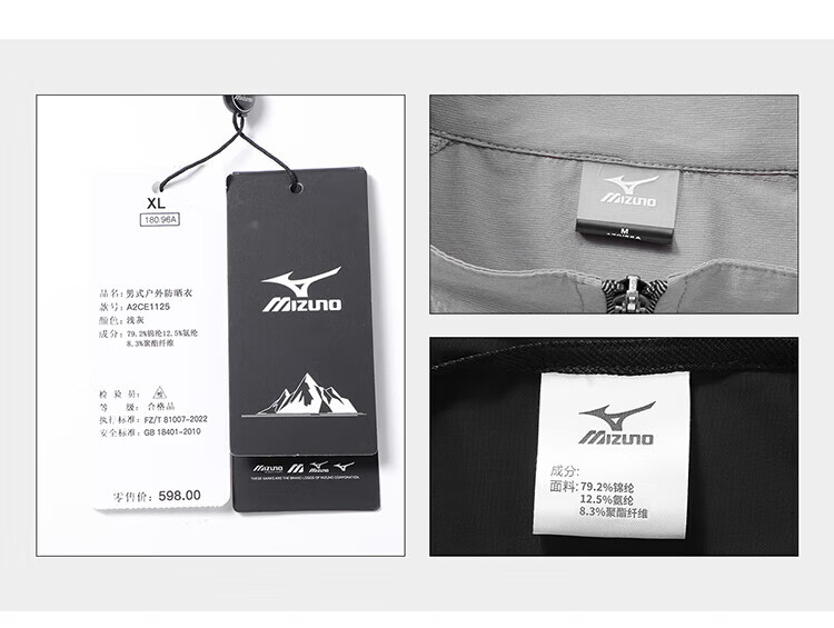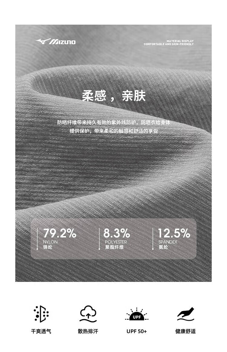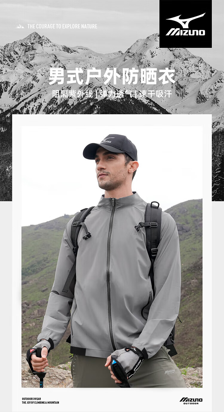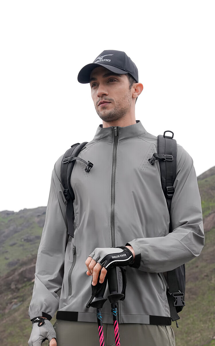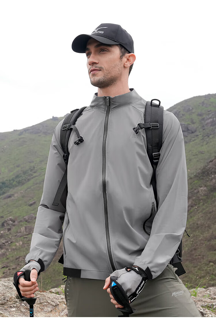 Mizuno outdoor skin clothing men's summer breathable lightweight hooded fishing clothing casual hiking long-sleeved jacket for men light gray 2XL