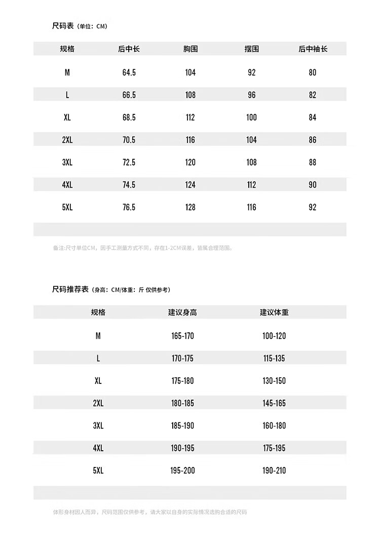 China (cm) 160-165/84-86 165-170 / 88-90 167-172 / 92-96 168-173 / 98-102 170-176 / 106-110