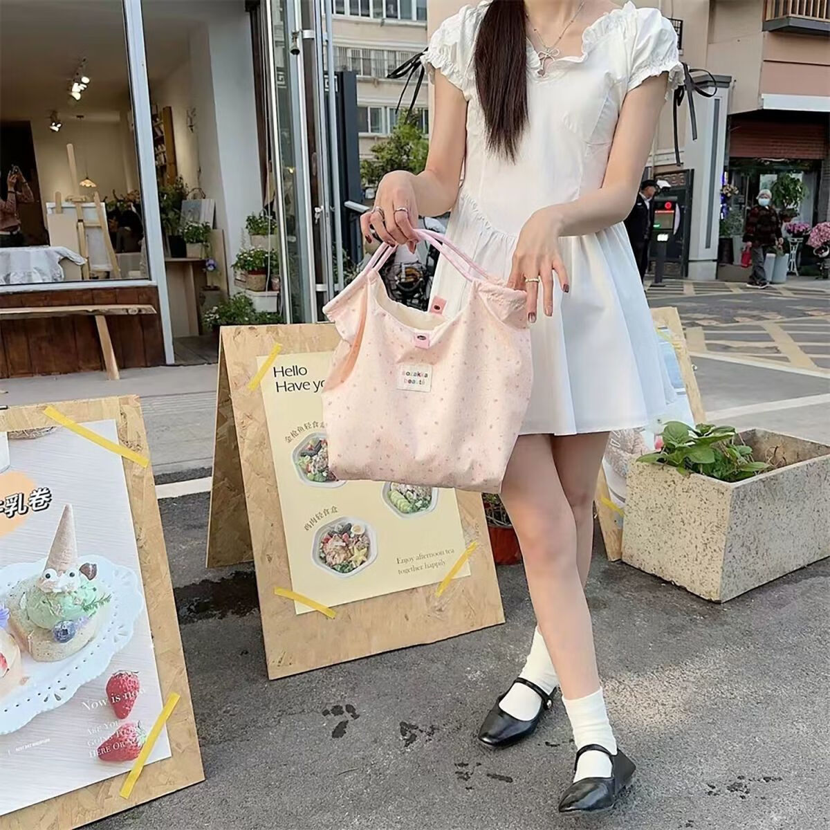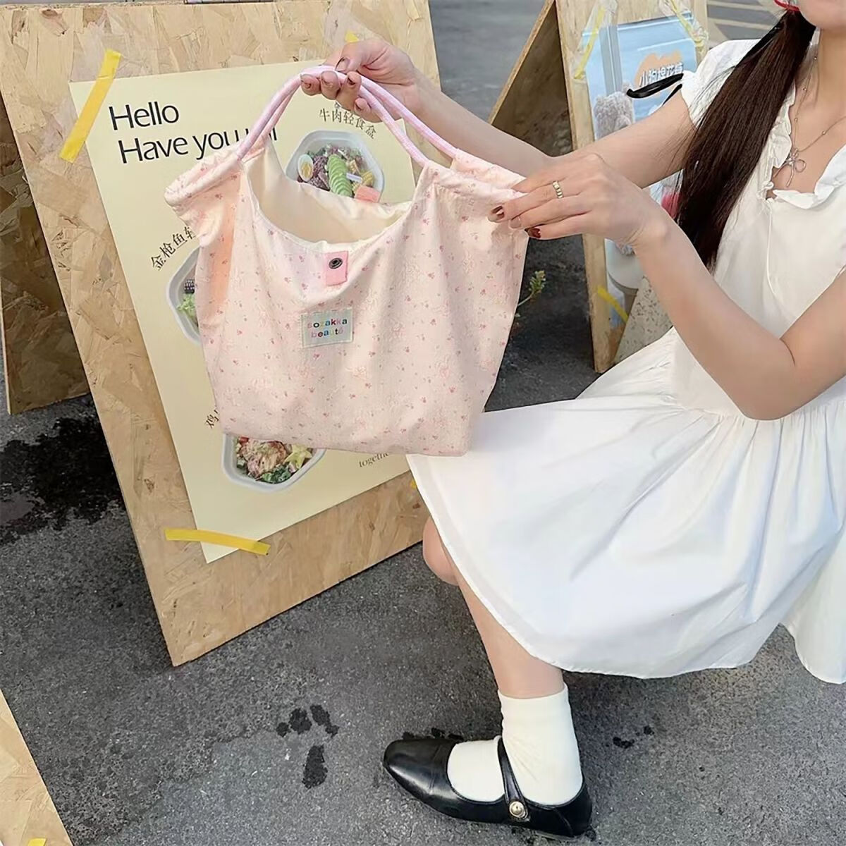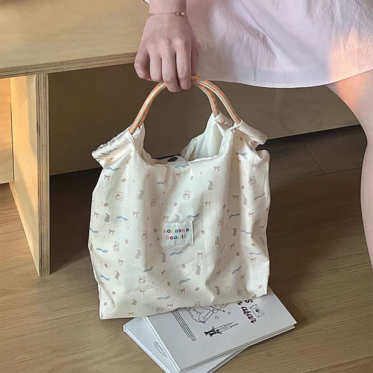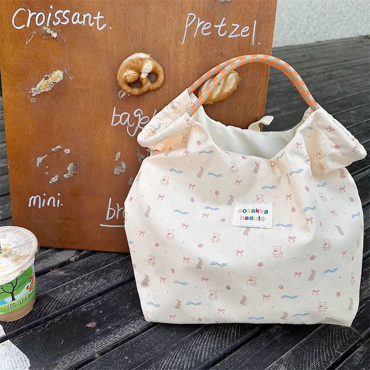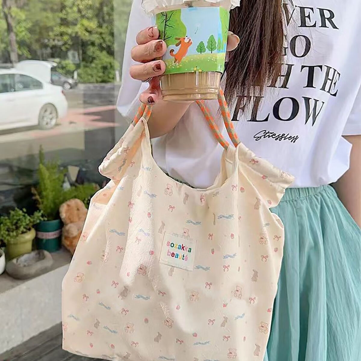 New Cute Floral White Rabbit Canvas Bag Women's Shoulder Bag Large Capacity Handbag Carrying Book Bag Tote Bag Pink Long-eared Rabbit High-Quality Version - No Ornaments
