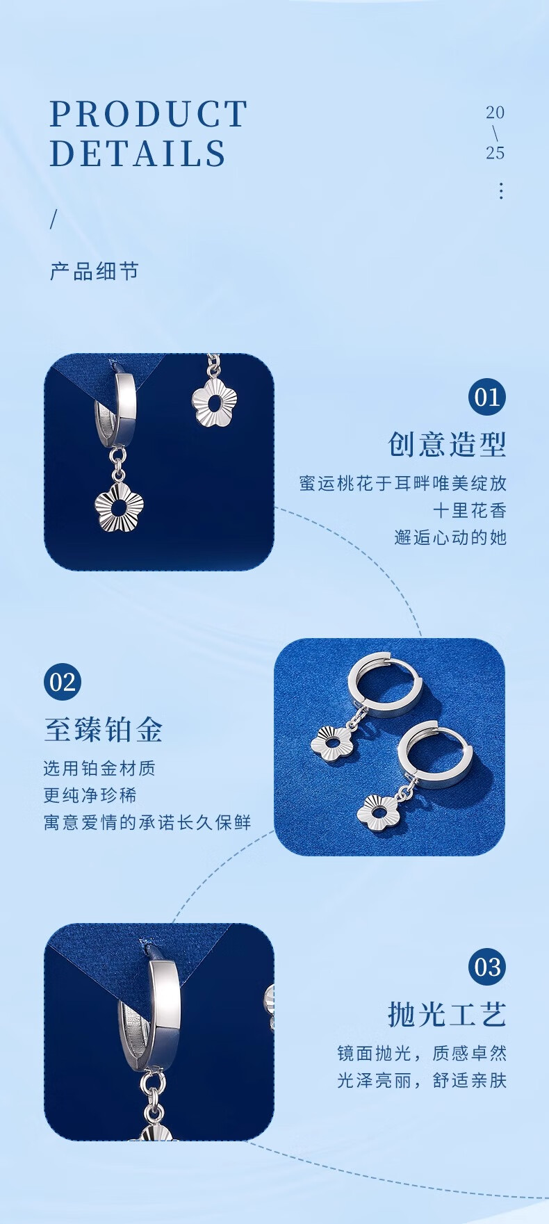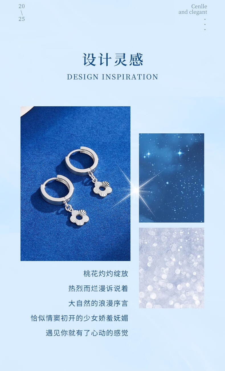 CHINA GOLD PT950 Platinum Peach Blossom Earrings for Women New Platinum Versatile Earrings Valentine's Day Practical Birthday Gifts for Girls PT950 Platinum Peach Blossom Earrings About 3.4g