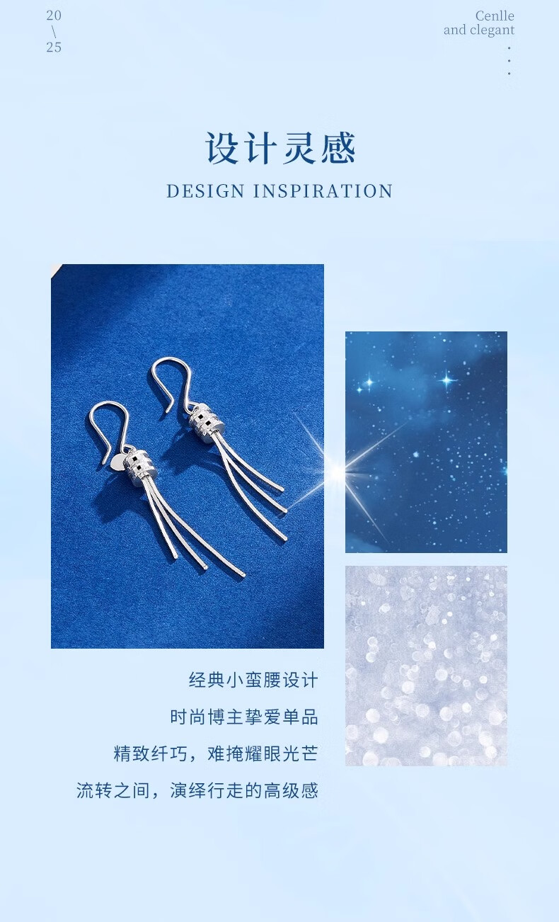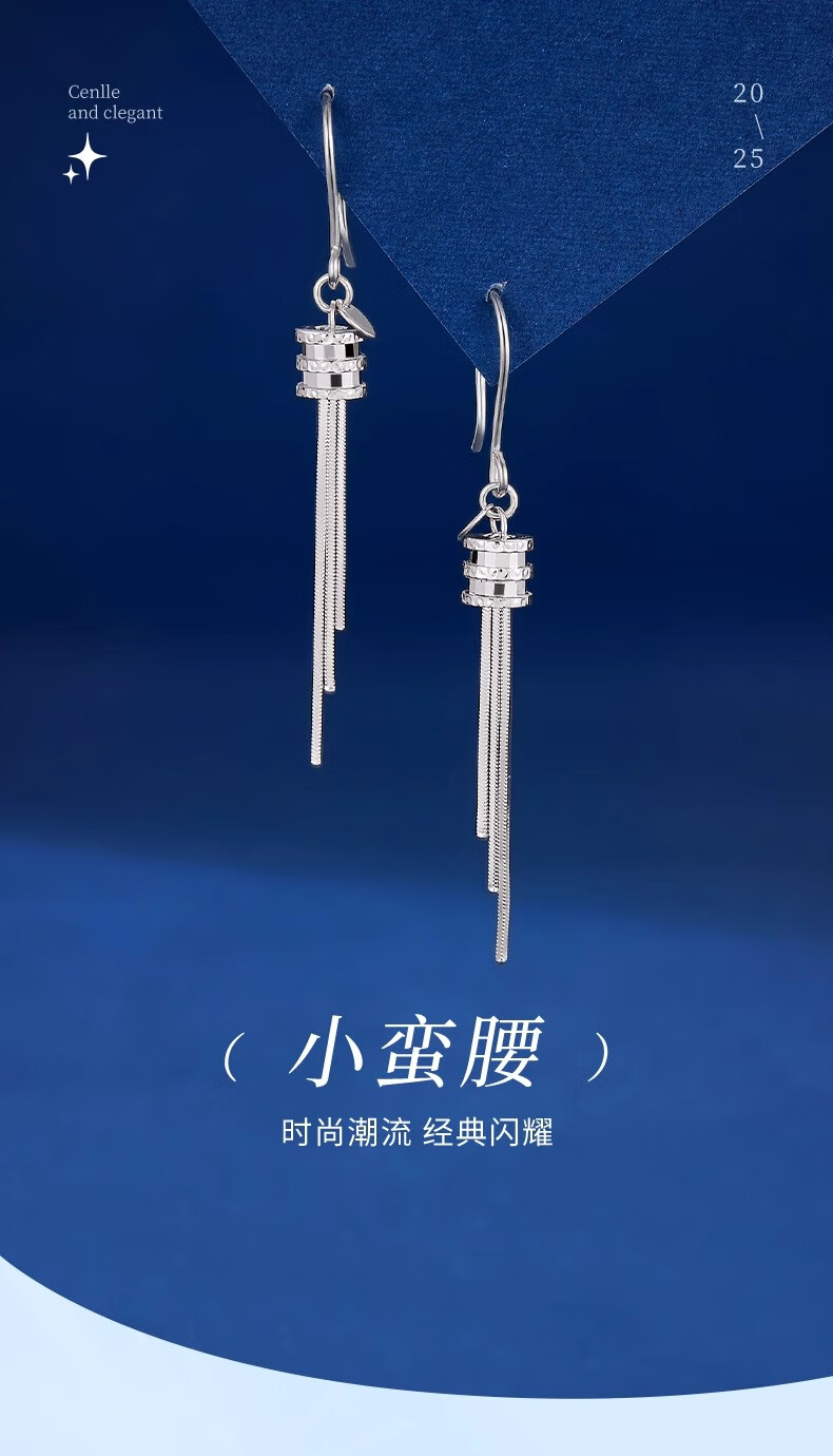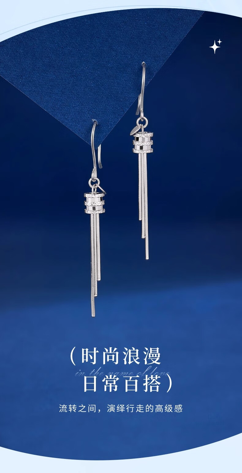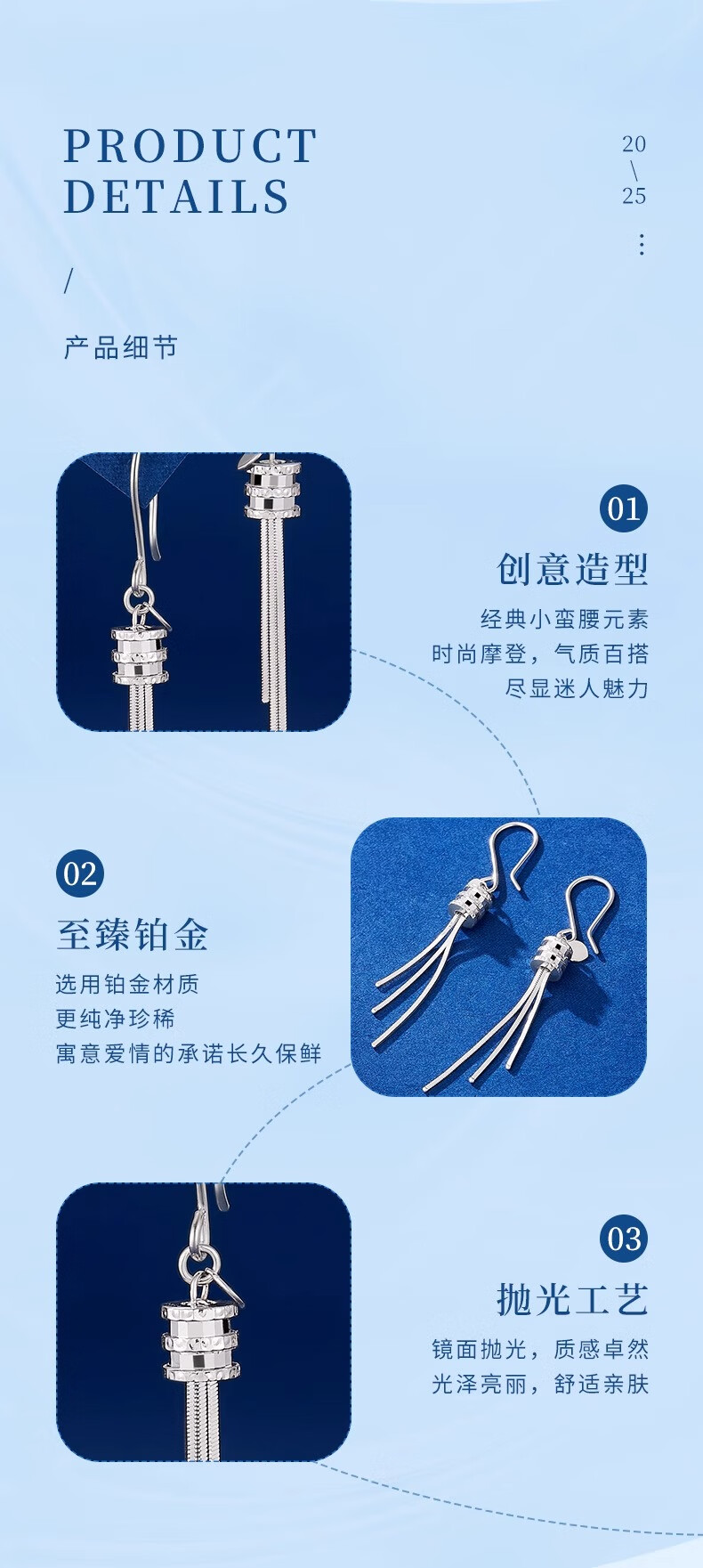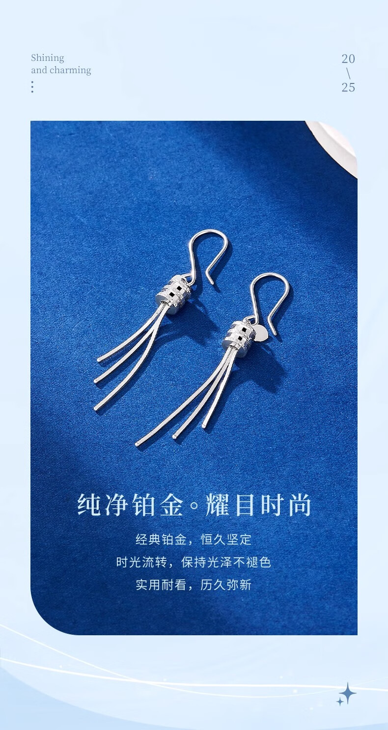 CHINA GOLD PT950 Platinum Small Waist Tassel Earrings Light Luxury Earrings Practical Valentine's Day Birthday Gifts for Girls to Wife PT950 Platinum Small Waist Tassel Earrings About 3.4g