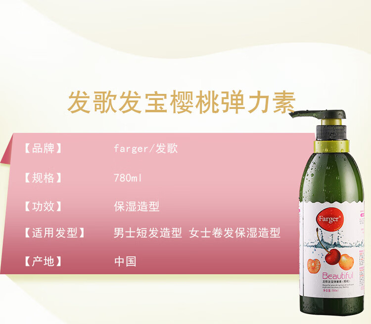 Fage spring element cherry elastin for fluffy and curly hair, moisturizing and anti-frizz hair care after perm, plumping curl protector cherry spring element 780ml (hot sale)
