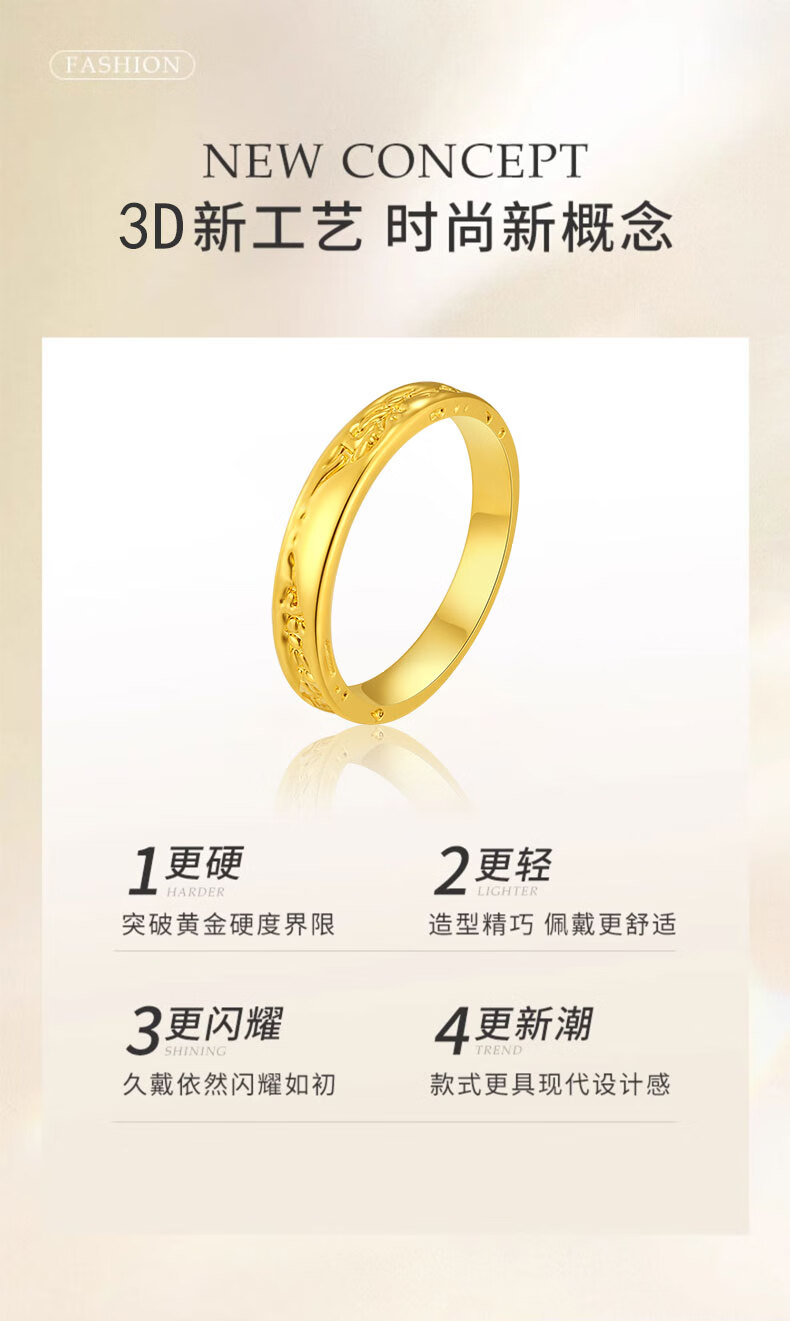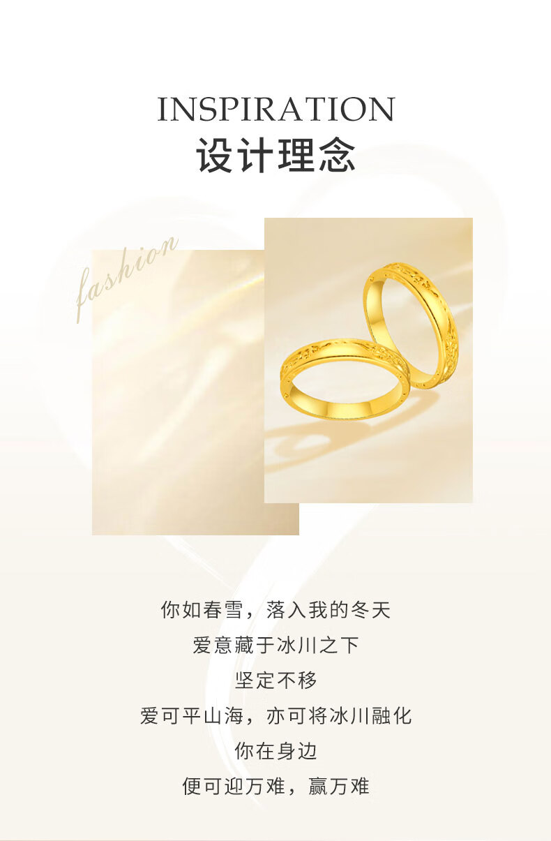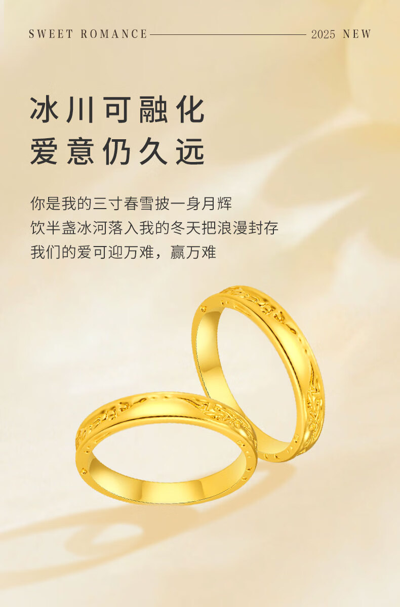 China Gold (CHINA GOLD) gold glacier ring for men and women, solid gold iceberg ring ring, couple ring, Valentine's Day gift for girlfriend, glacier ring, about 1.1g, circle number 14