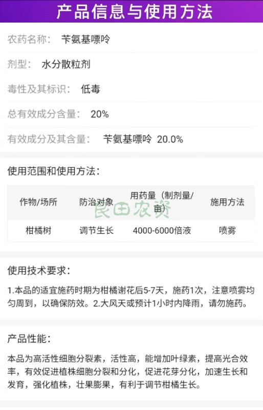 Thompson Red Angel 20% benzylaminopurine citrus tree promotes flower bud differentiation and strengthens plant fruit expansion regulator 100g