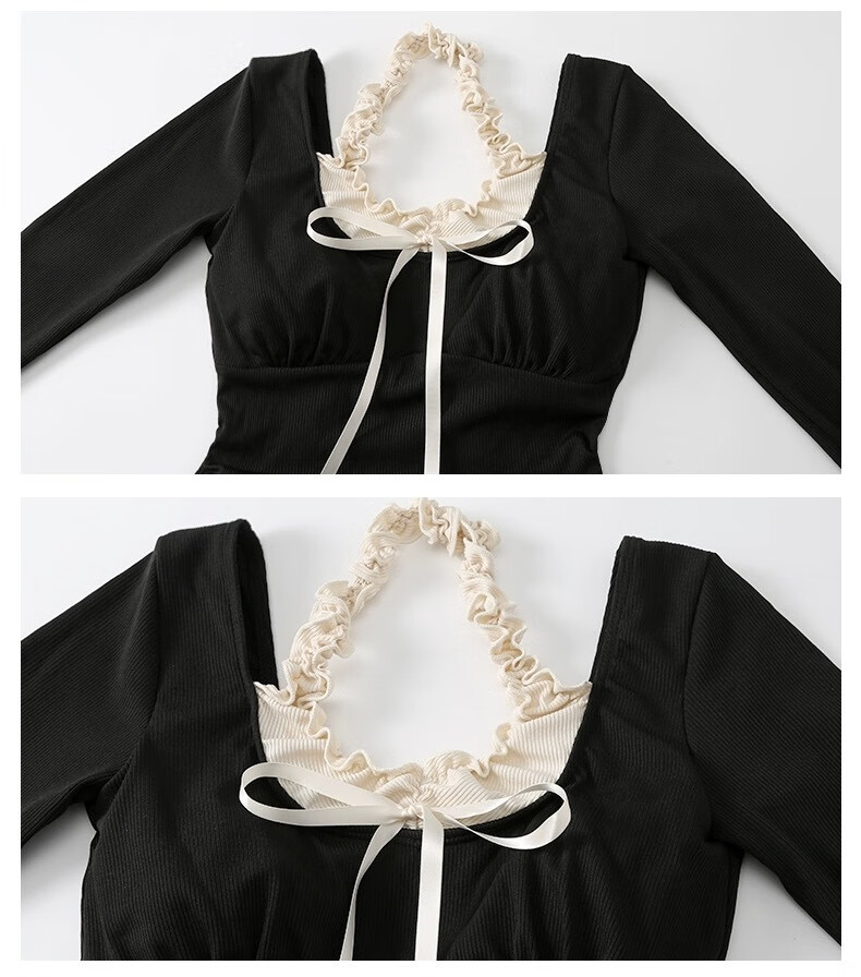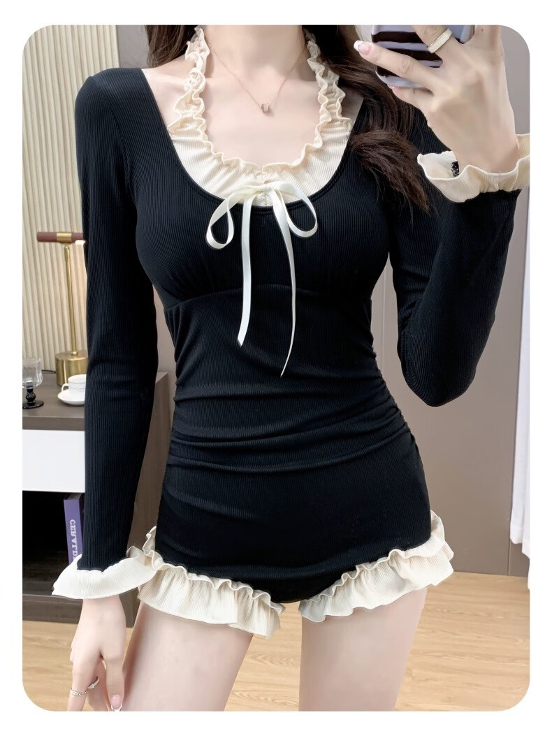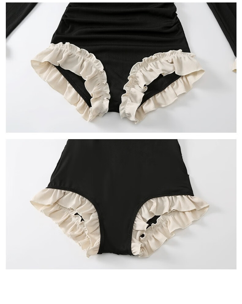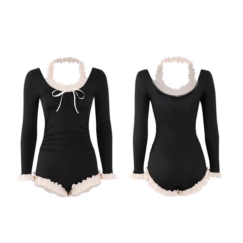Bai Qixin women's 2026 new one-piece long-sleeved slimming belly-covering conservative pure lust girl high-end hot spring swimsuit black lace (one size fits all recommended 70-120 Jin Jin equals 0.5 kg)