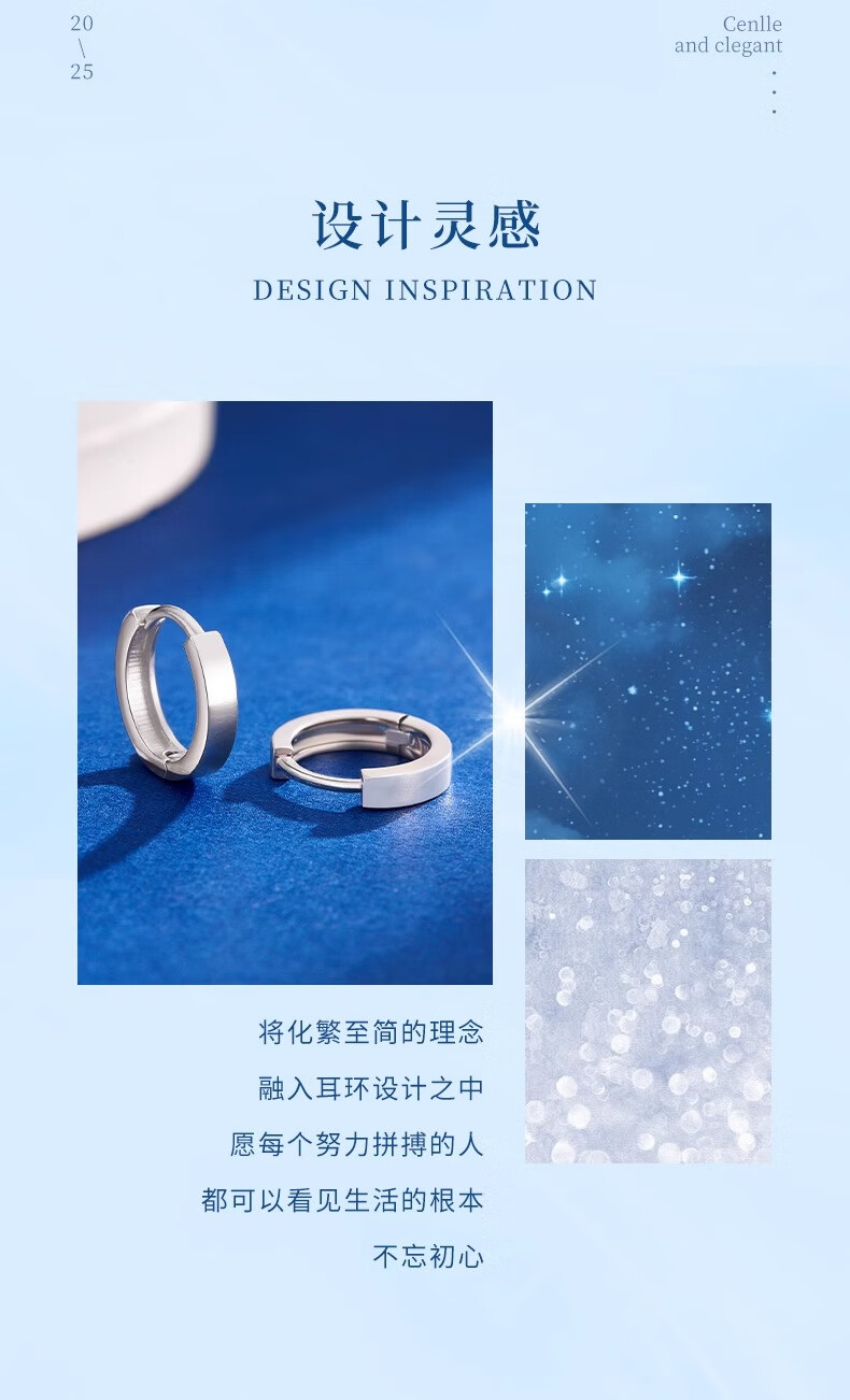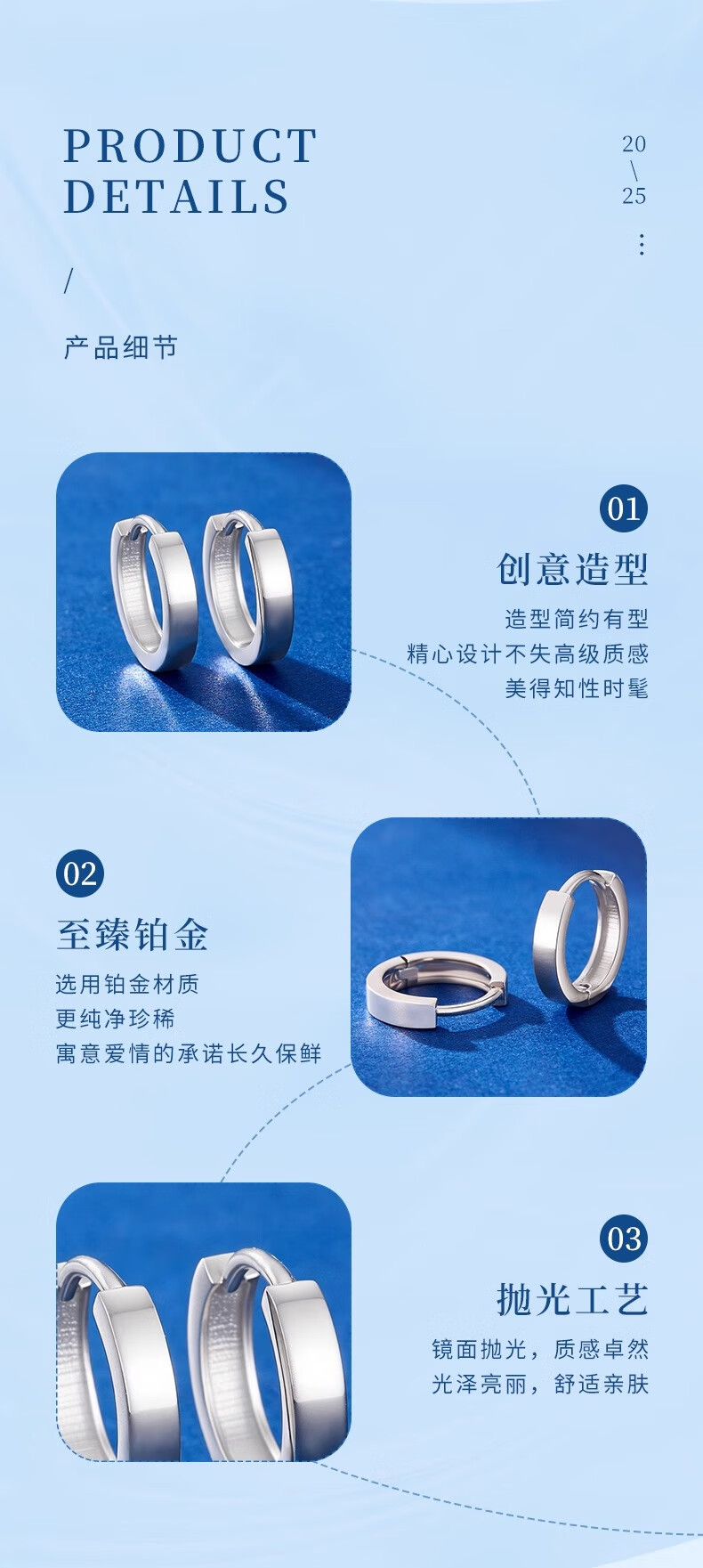 CHINA GOLD PT950 platinum plain hoop earrings for women, new style, simple and versatile, Valentine's Day birthday gift for girlfriend and wife, platinum plain hoop earrings, about 2.5g