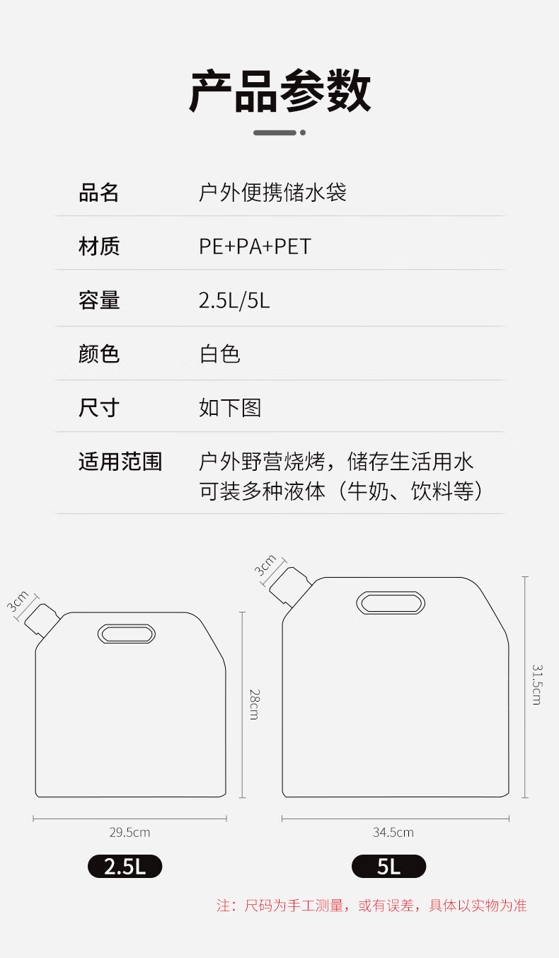 Portable water storage bag 5 liters, outdoor self-driving travel camping folding water storage tank water storage bag water storage bag RV supplies 1 pack
