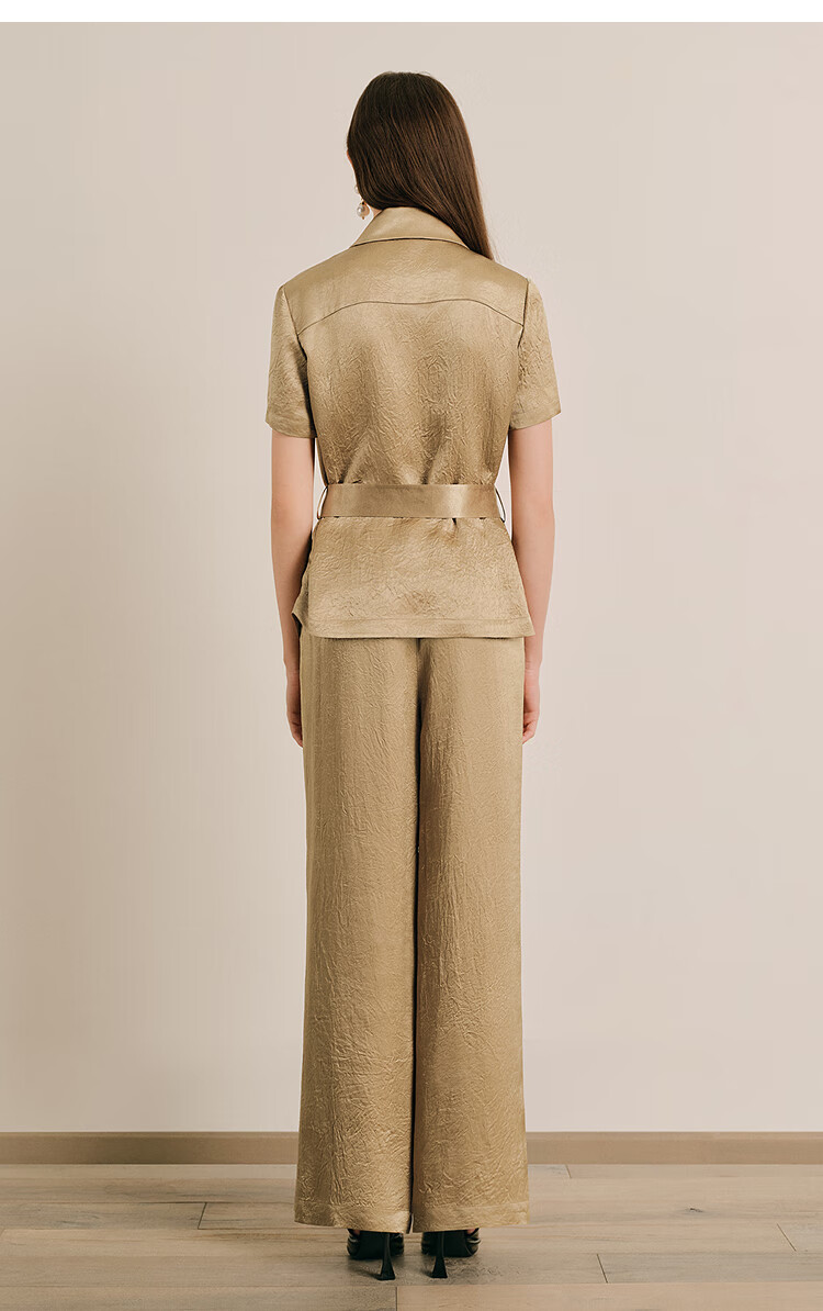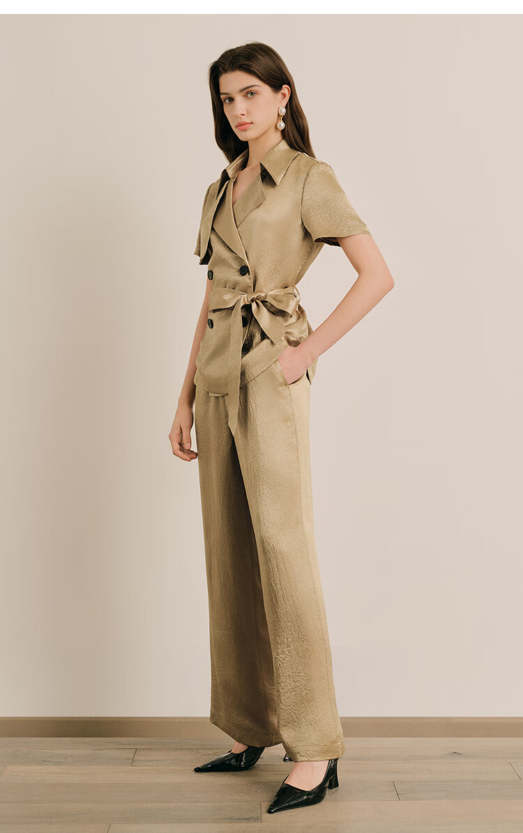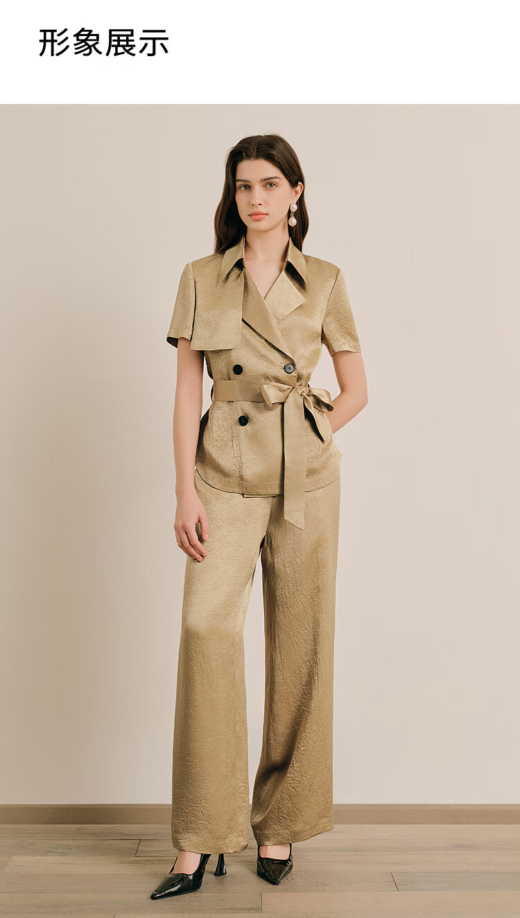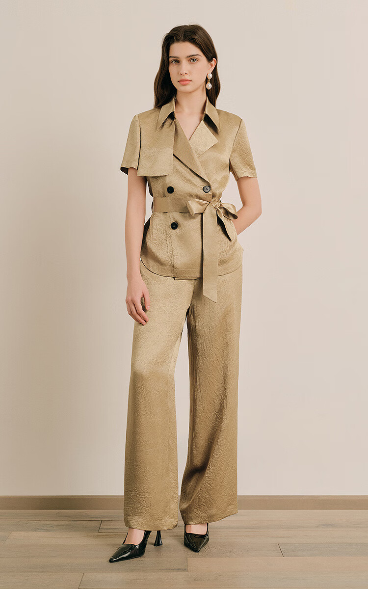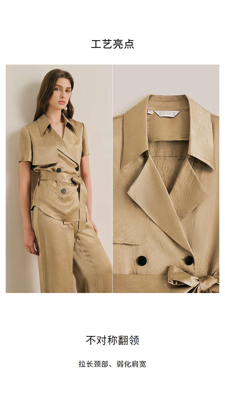 OBBLIGATO Oligato 2025 autumn and winter special selection of textured double-breasted coat style top and antique gold women's pants S