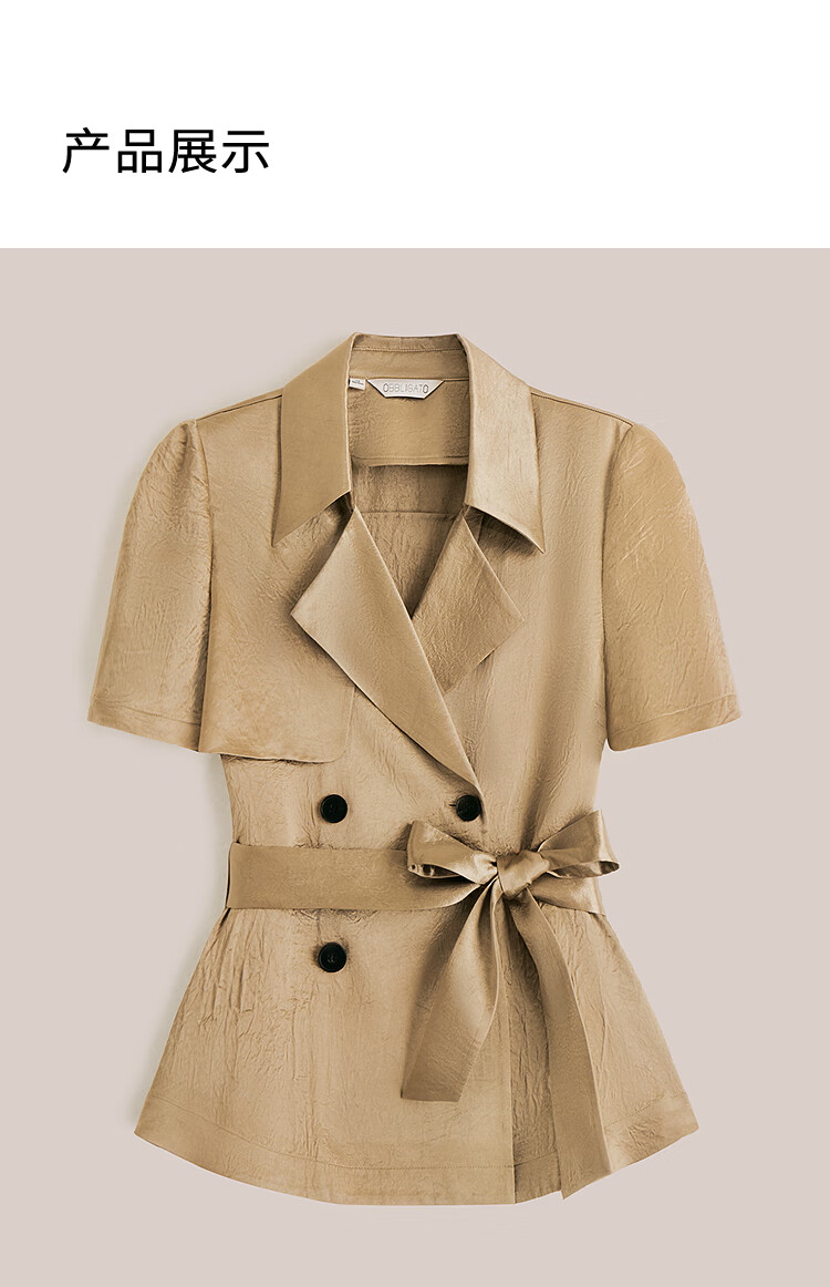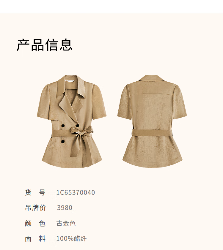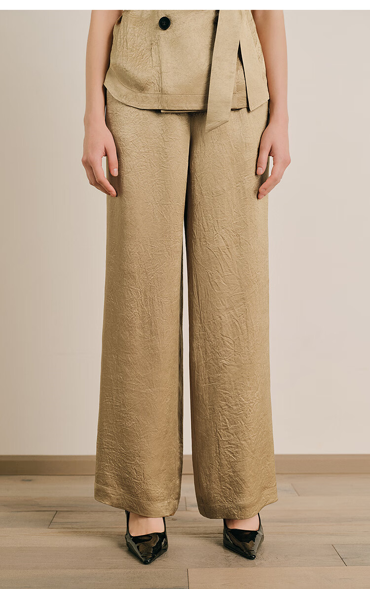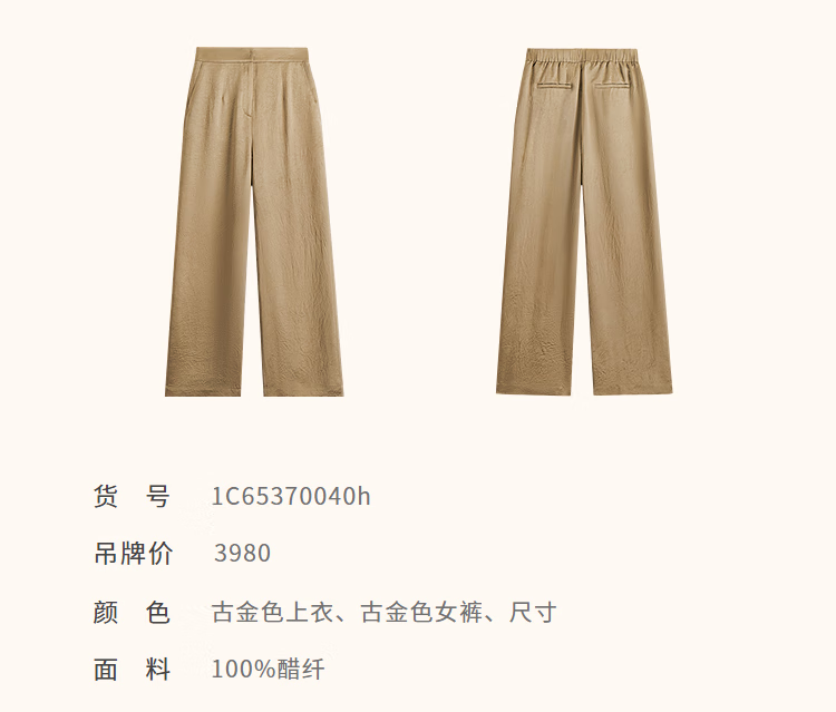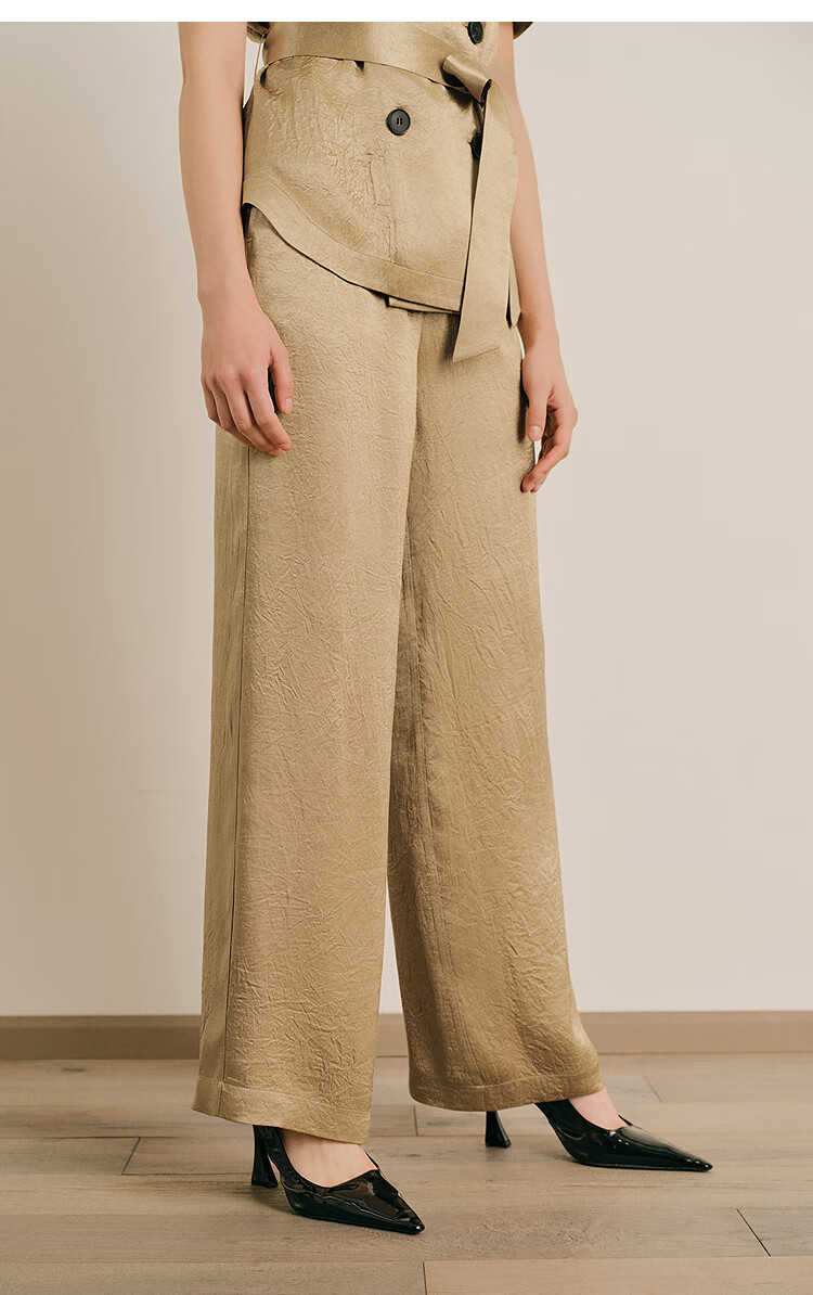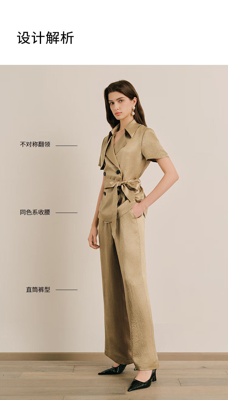 OBBLIGATO Oligato 2025 autumn and winter special selection of textured double-breasted coat style top and antique gold women's pants S