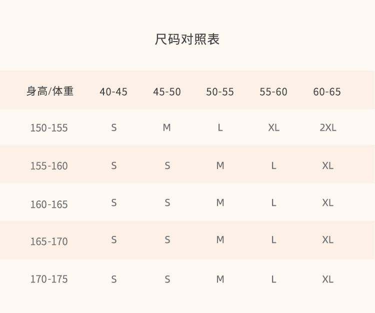 China (cm) 160-165/84-86 165-170 / 88-90 167-172 / 92-96 168-173 / 98-102 170-176 / 106-110