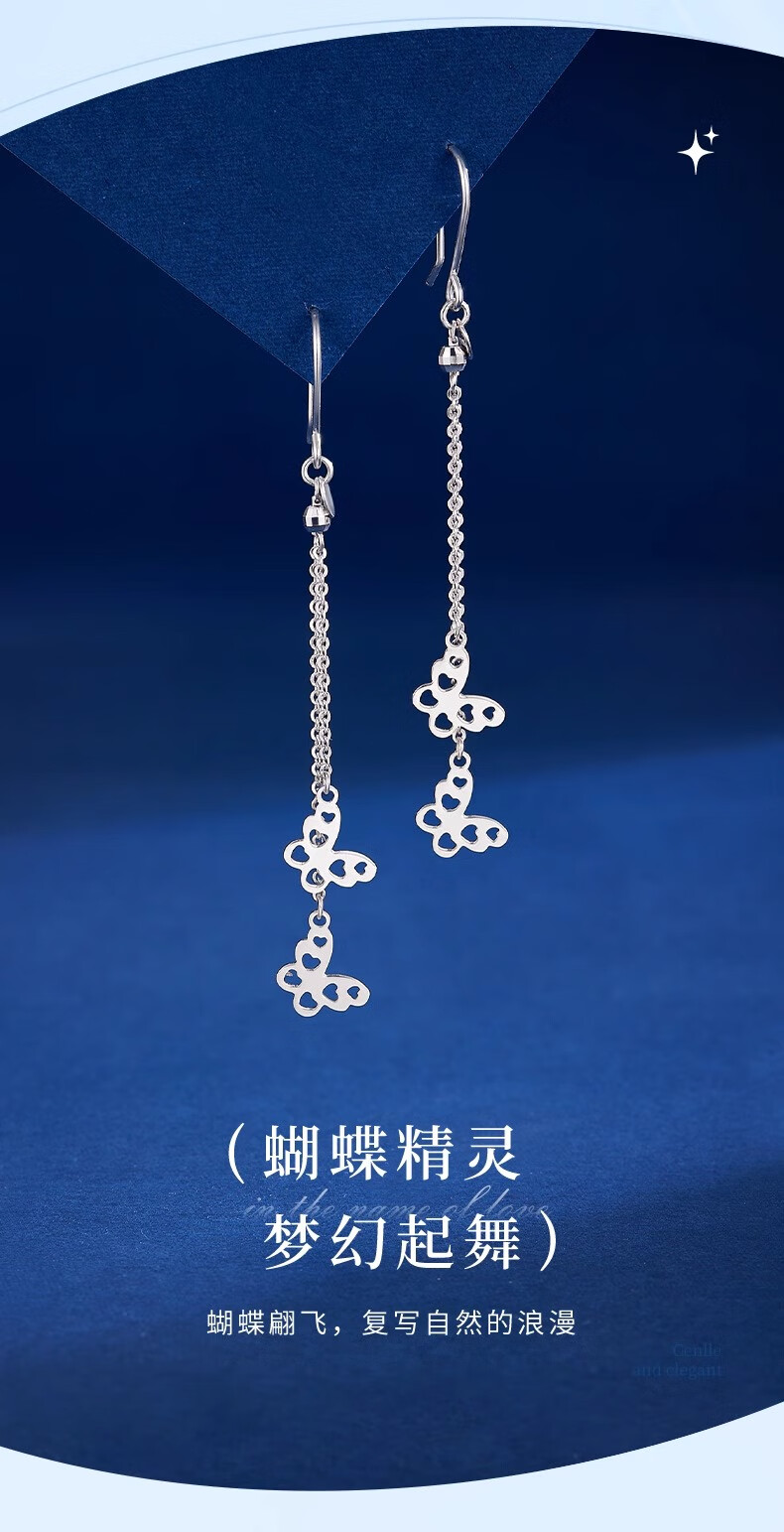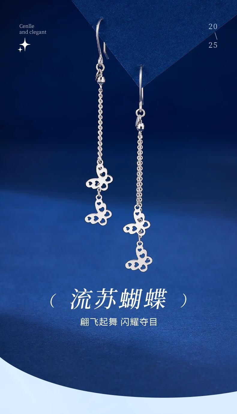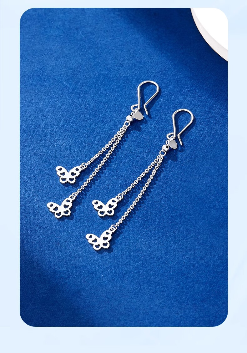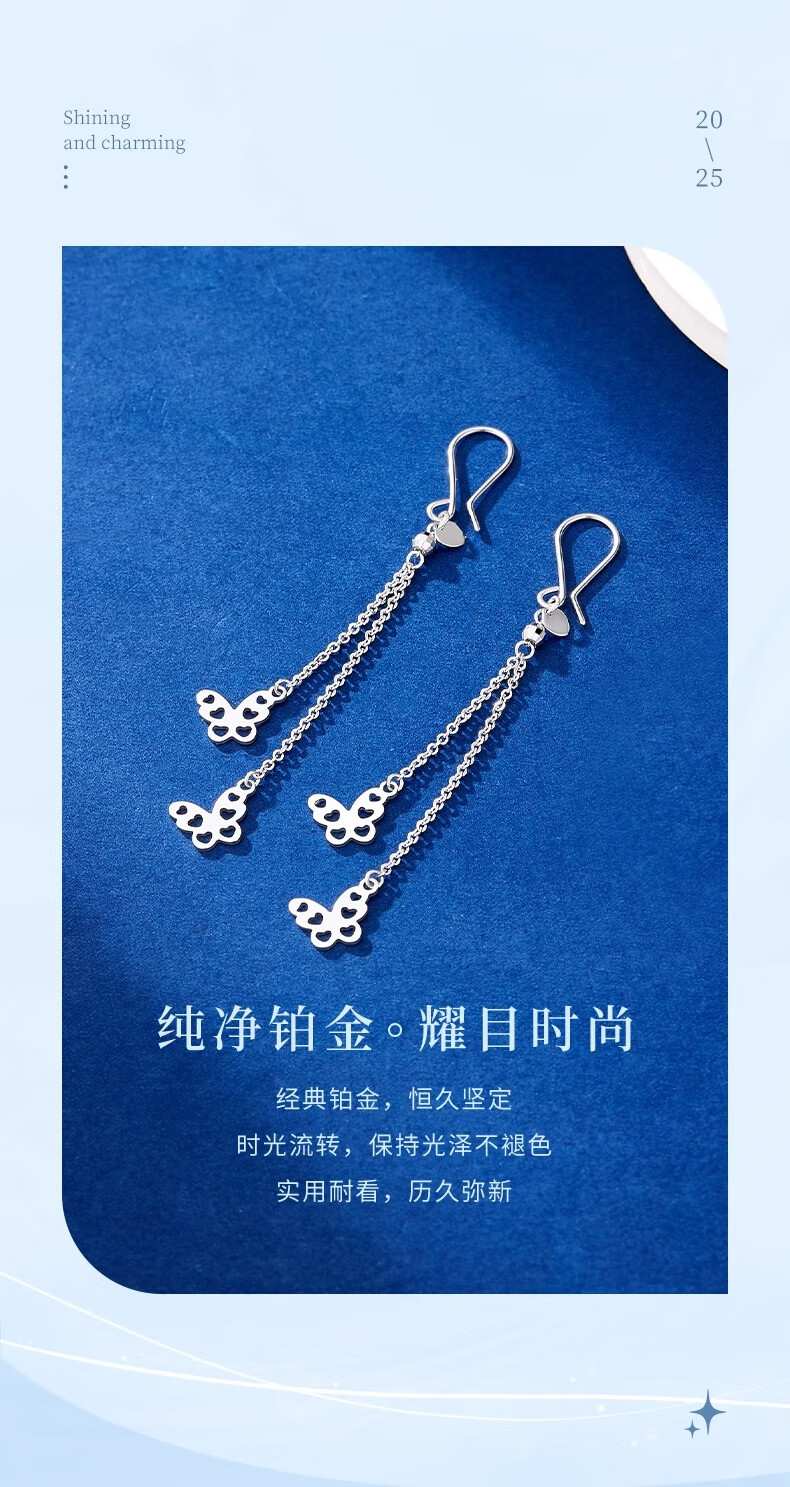 CHINA GOLD PT950 Platinum Butterfly Tassel Earrings Women's Platinum Light Luxury Lover's Birthday Gift Year of the Horse Animal Year Gift PT950 Platinum Butterfly Tassel Earrings About 3g