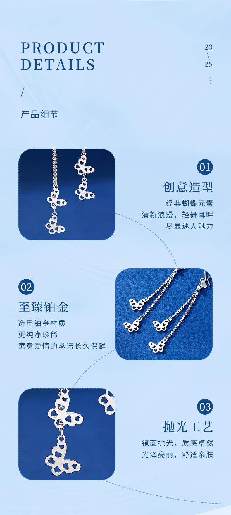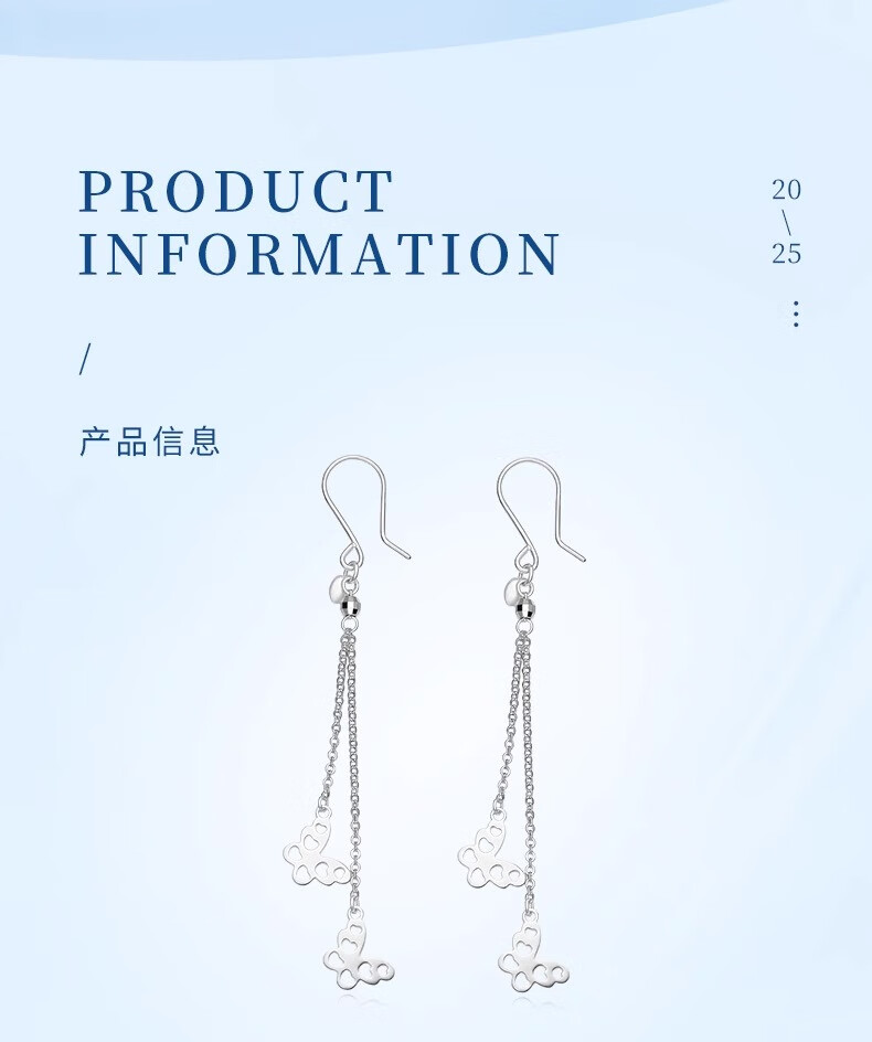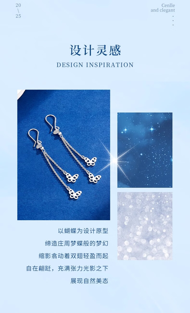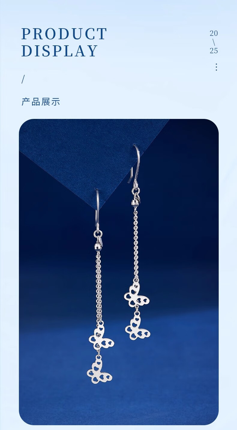 CHINA GOLD PT950 Platinum Butterfly Tassel Earrings Women's Platinum Light Luxury Lover's Birthday Gift Year of the Horse Animal Year Gift PT950 Platinum Butterfly Tassel Earrings About 3g