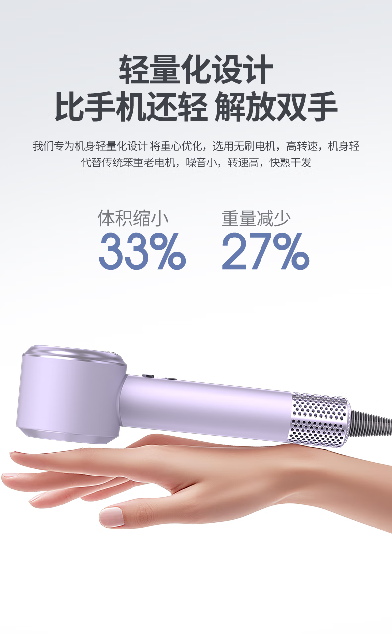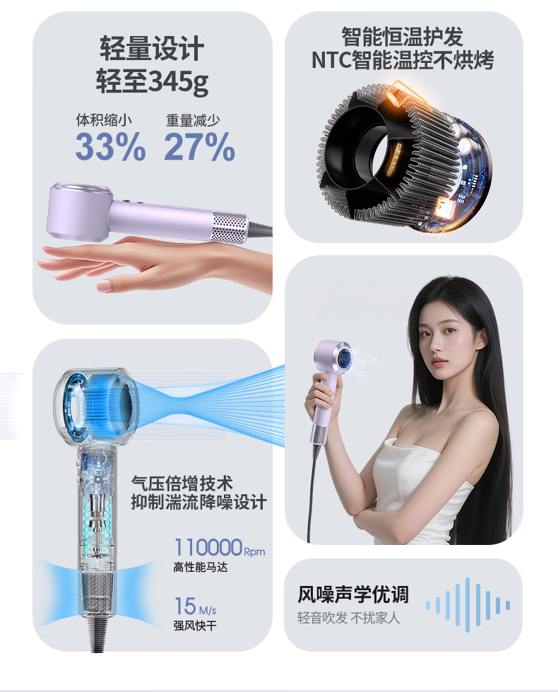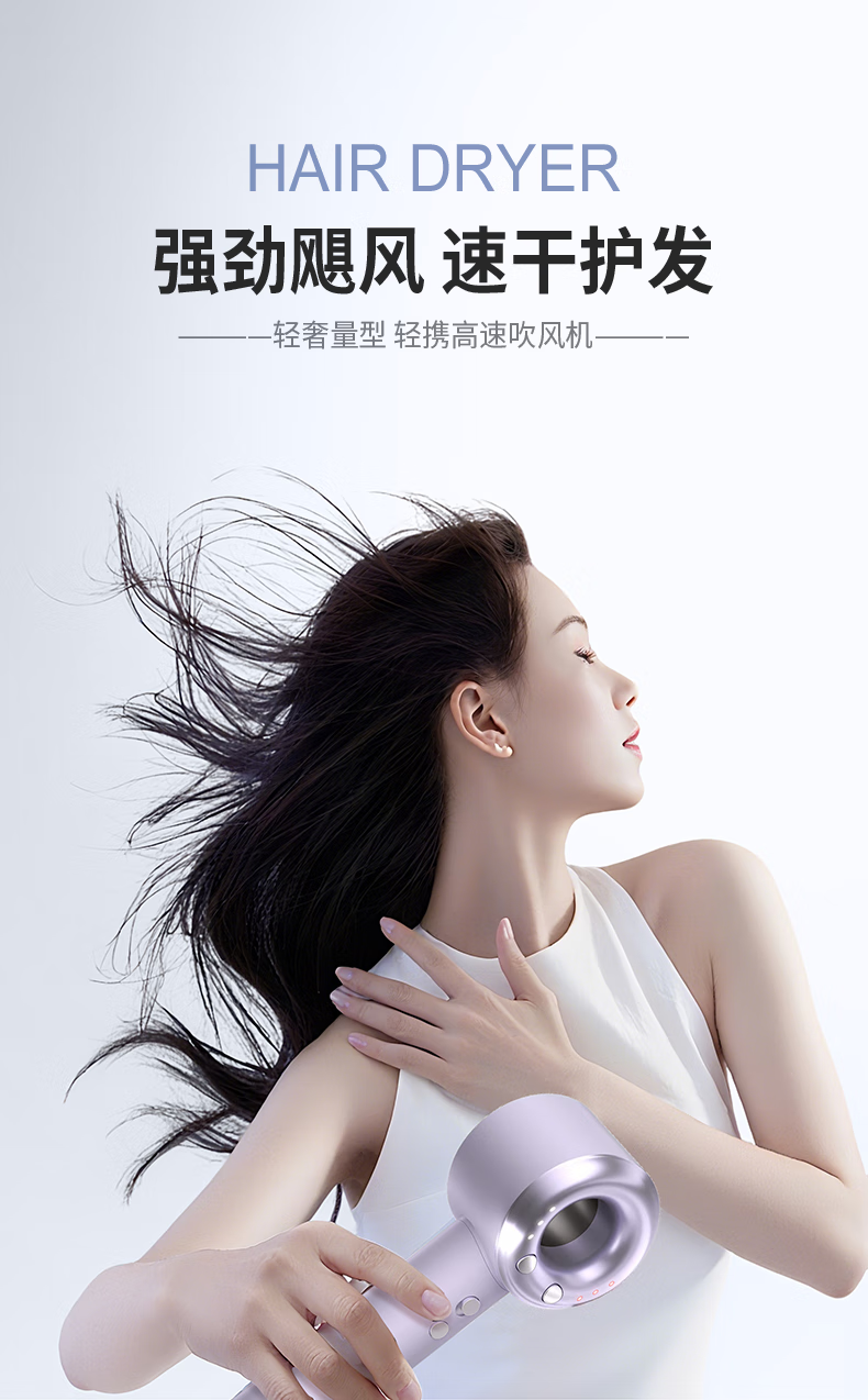 Padertonson series powerful high-speed hair dryer Huaqiang North Top equipped with home silent high-power non-harmful hair strong wind dryer hotel quick-drying portable hair care and hair care new model Magic Purple Champion recommended brand + million insurance