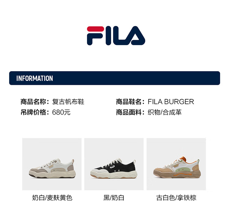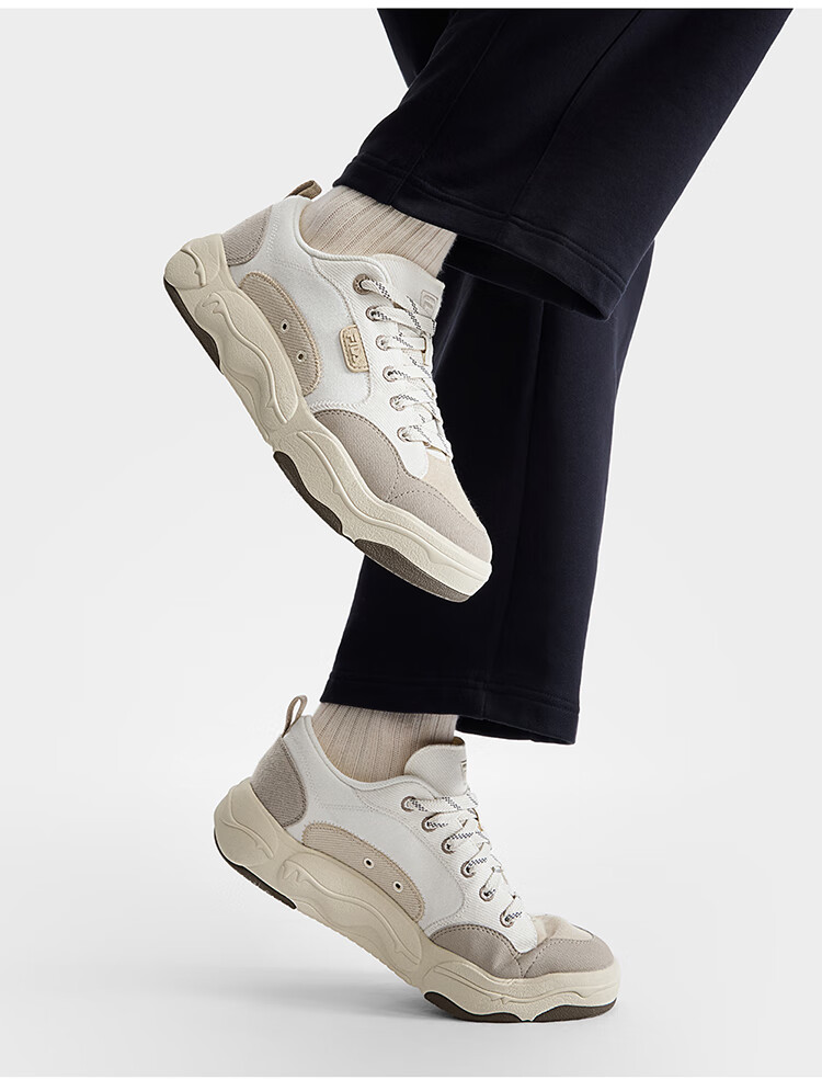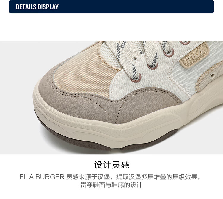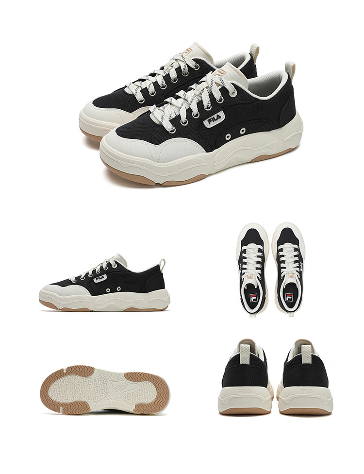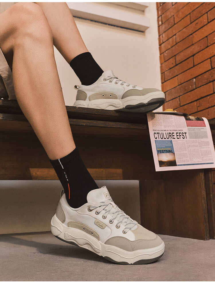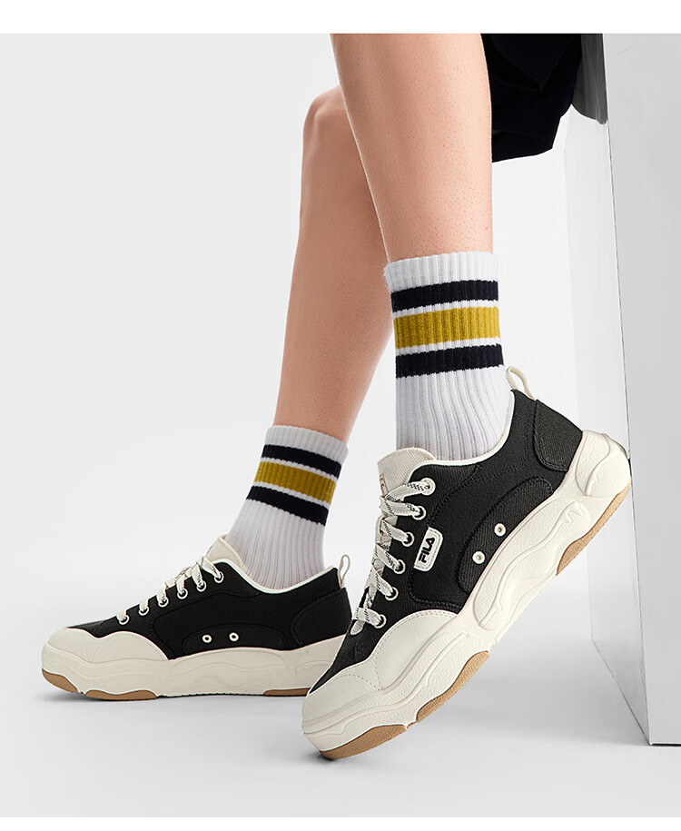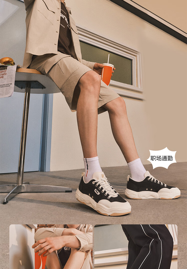 FILA official men's canvas shoes 2025 autumn new hamburger shoes breathable casual shoes sports shoes black/milk white-BG 42.5