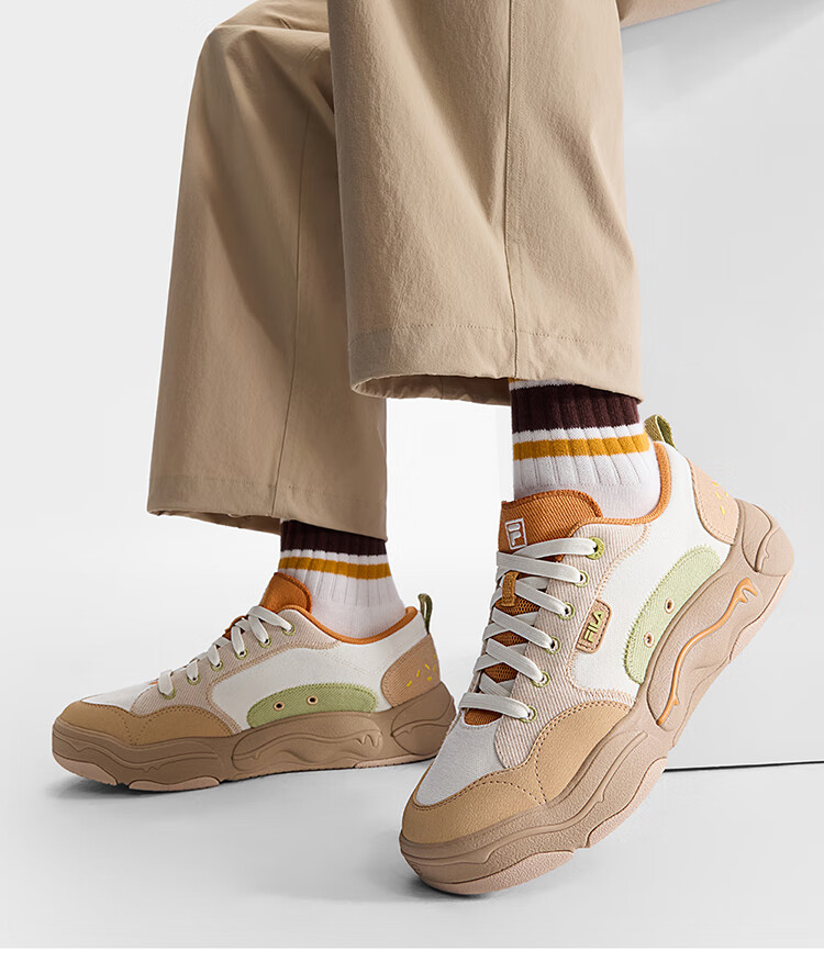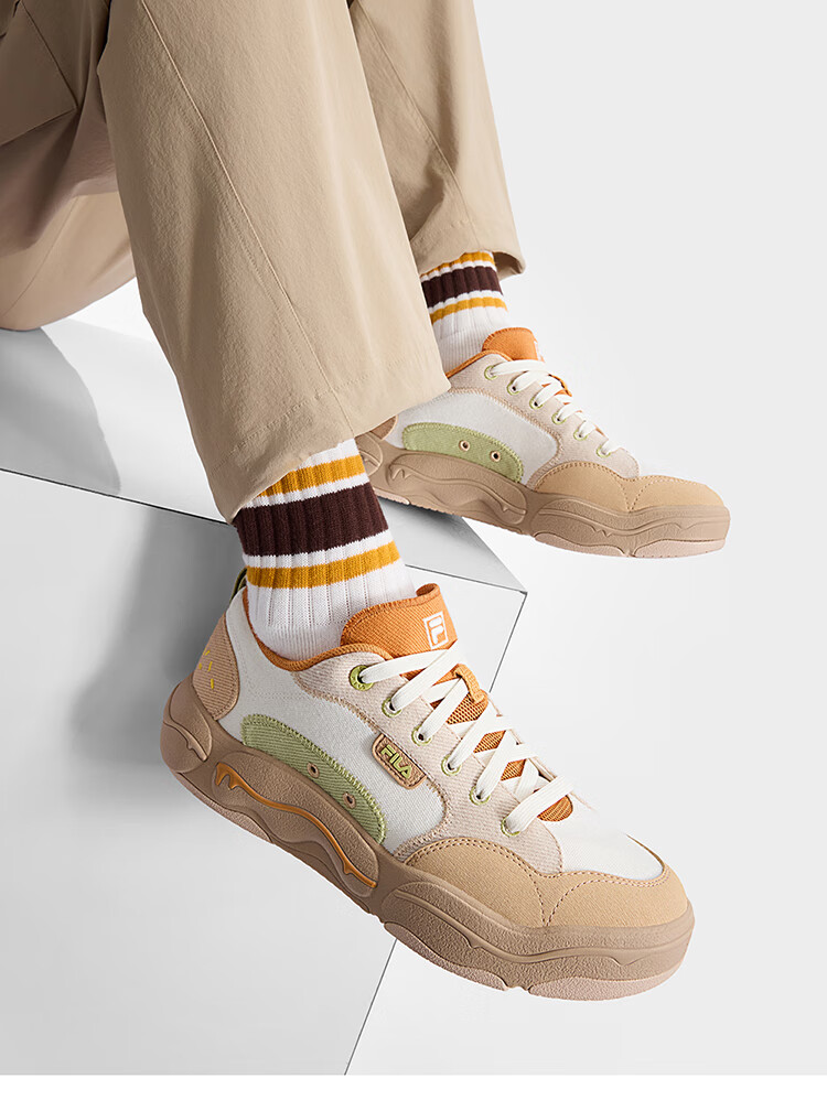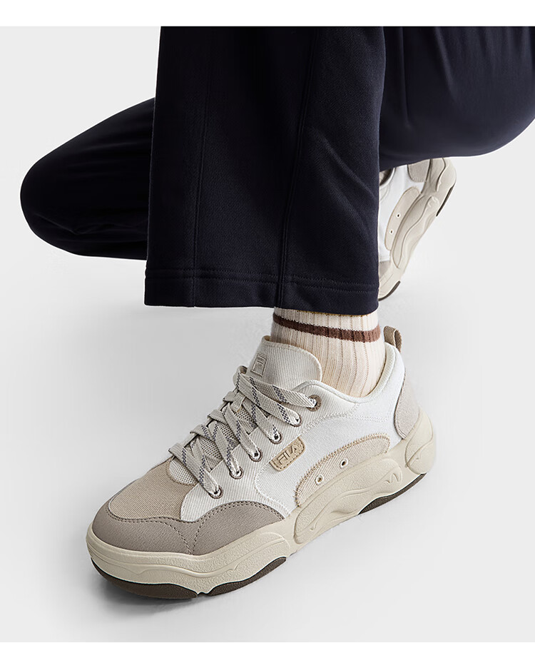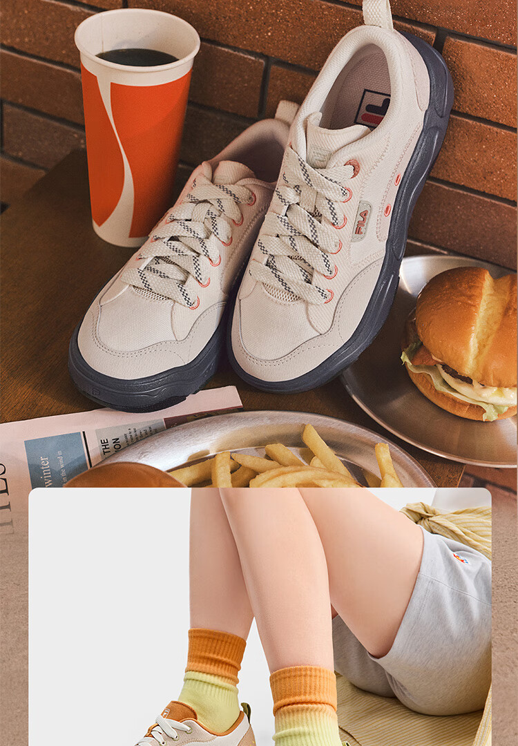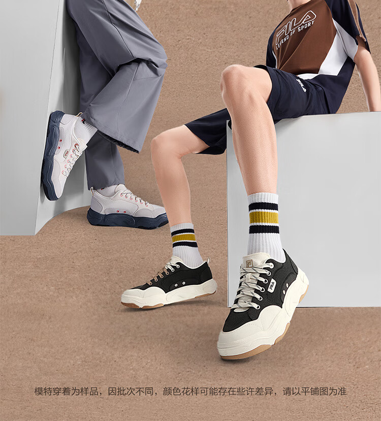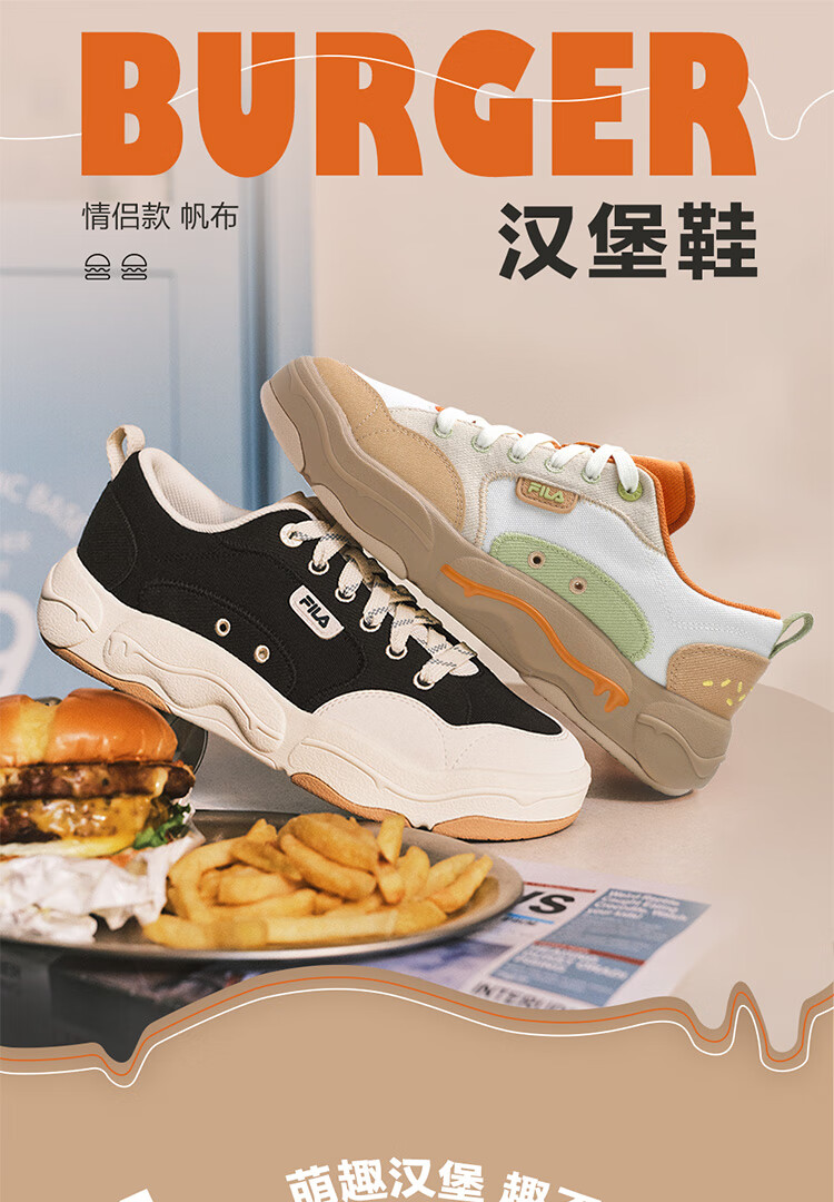 FILA official men's canvas shoes 2025 autumn new hamburger shoes breathable casual shoes sports shoes black/milk white-BG 42.5