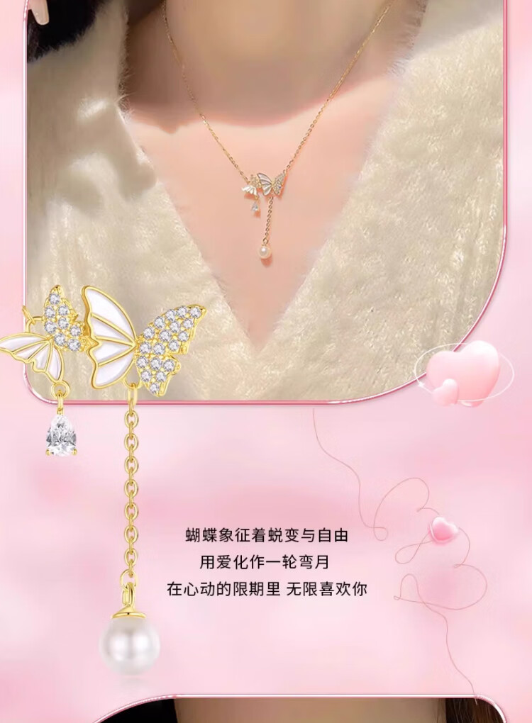 Xinshe S925 sterling silver butterfly tassel necklace for women, small clavicle chain to commemorate Valentine's Day, birthday gift for girlfriend, bow gift box, light and shadow butterfly necklace