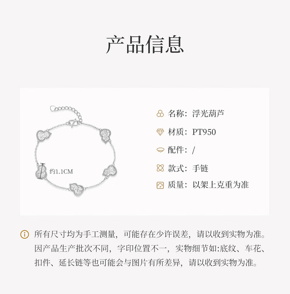 Ming brand jewelry platinum Pt950 white gold floating gourd bracelet gift for girlfriend BFK0058 chain length about 16+3 cm about 7.24 grams