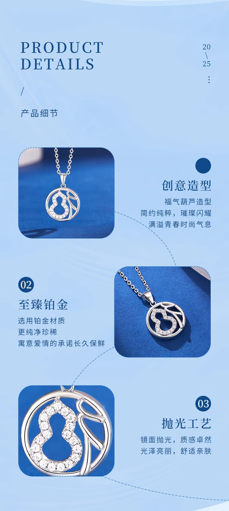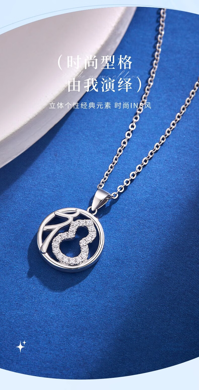 China Gold (CHINA GOLD) PT950 Platinum Gourd and Fortune Pendant Necklace Clavicle Chain Valentine's Day Practical Birthday Gift for Girls PT950 Platinum Gourd and Fortune Pendant Free Pure Silver Chain Approximately 3.5g