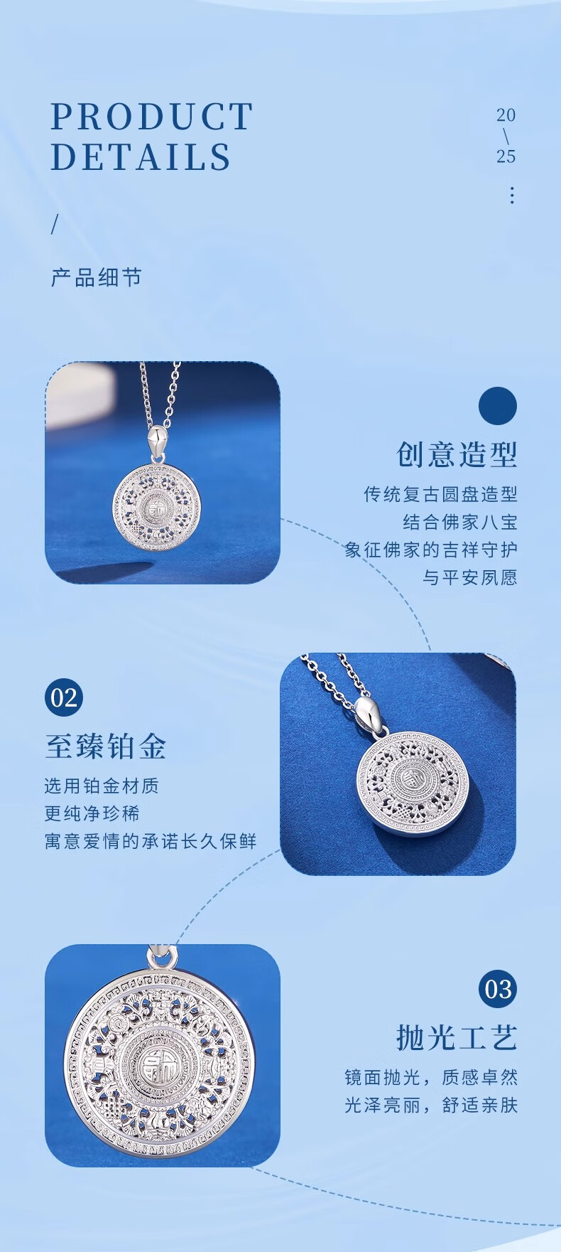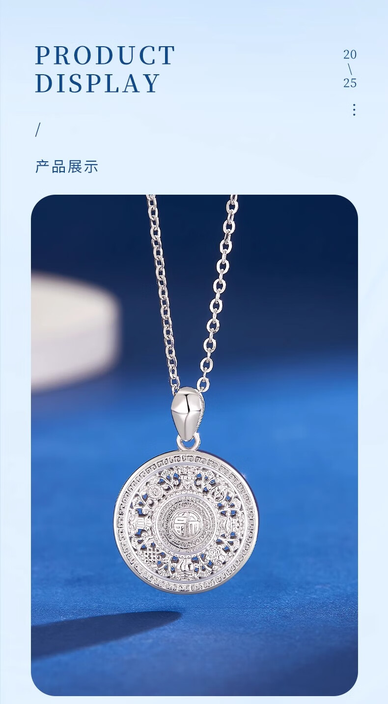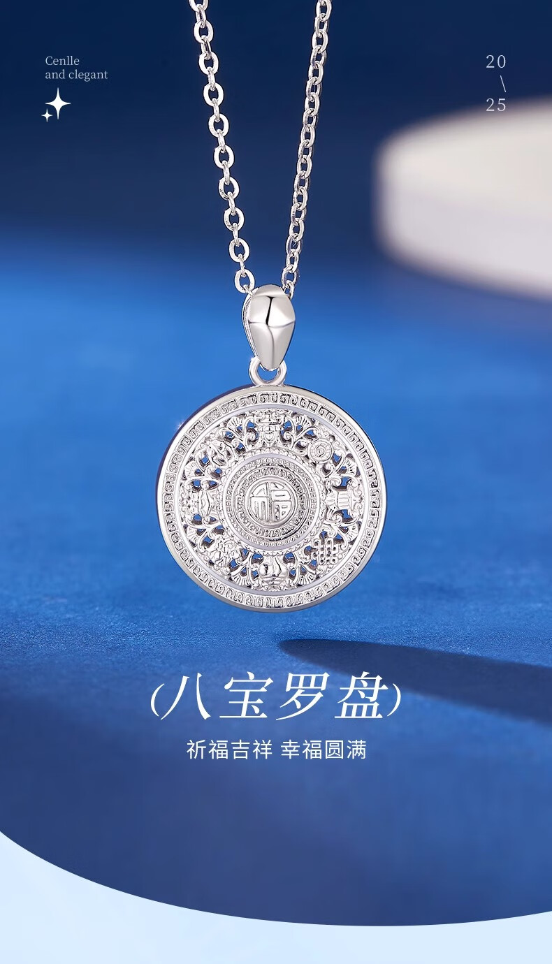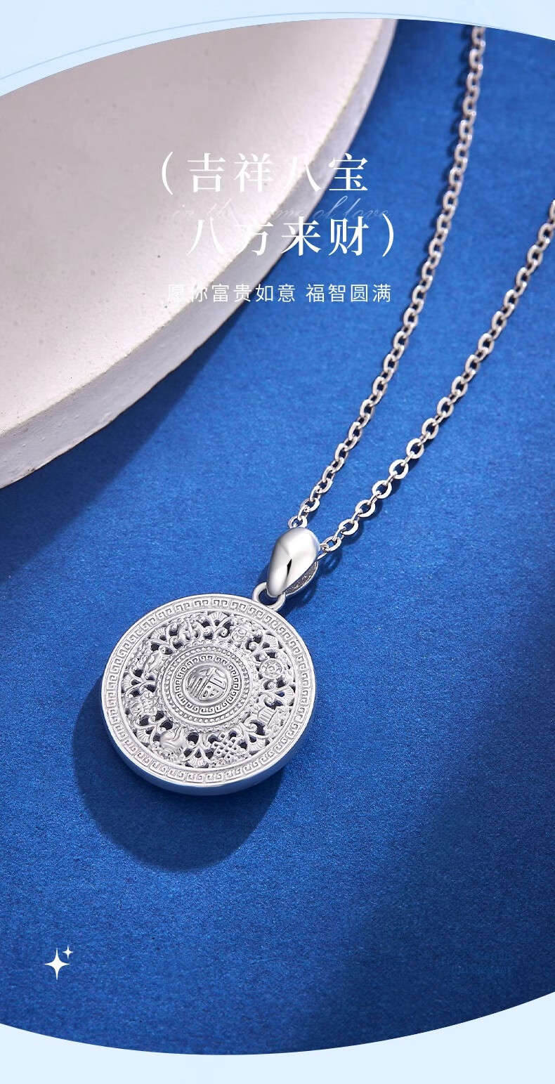 CHINA GOLD PT950 Platinum Eight Treasures Compass Pendant Necklace Clavicle Chain Valentine's Day Practical Birthday Gift for Girls to Give to Wife PT950 Platinum Eight Treasures Compass Pendant About 4.7g Free Silver Chain
