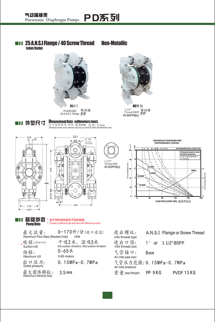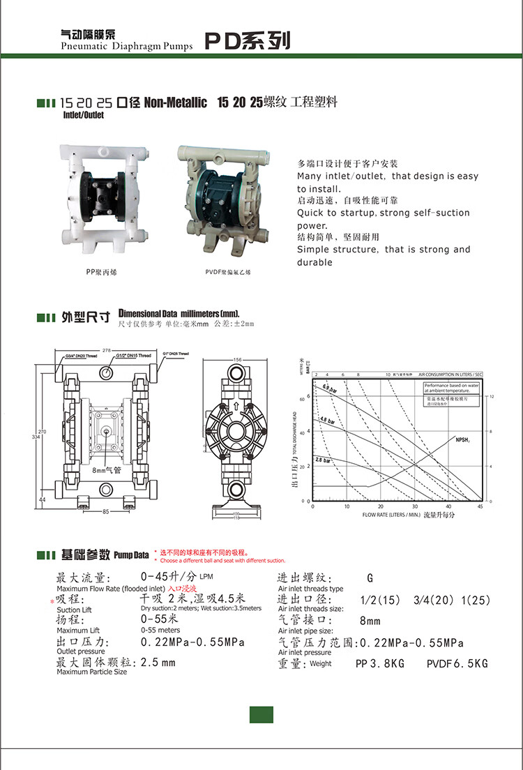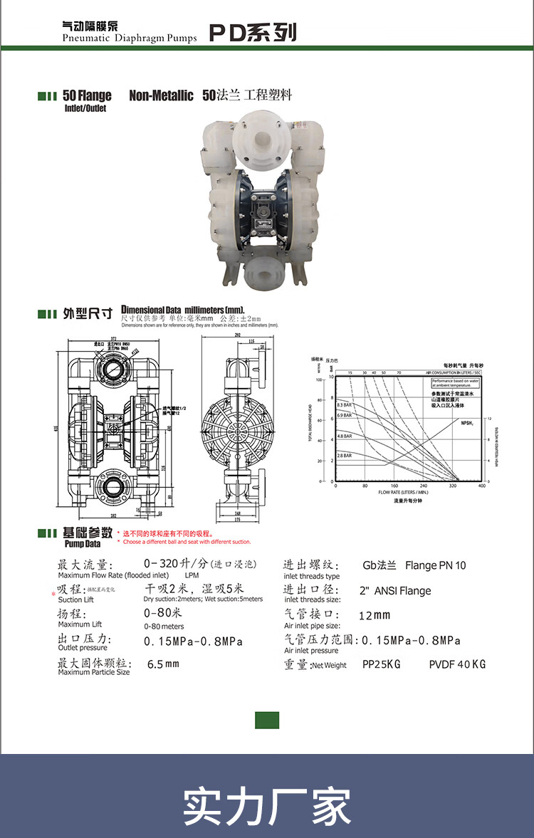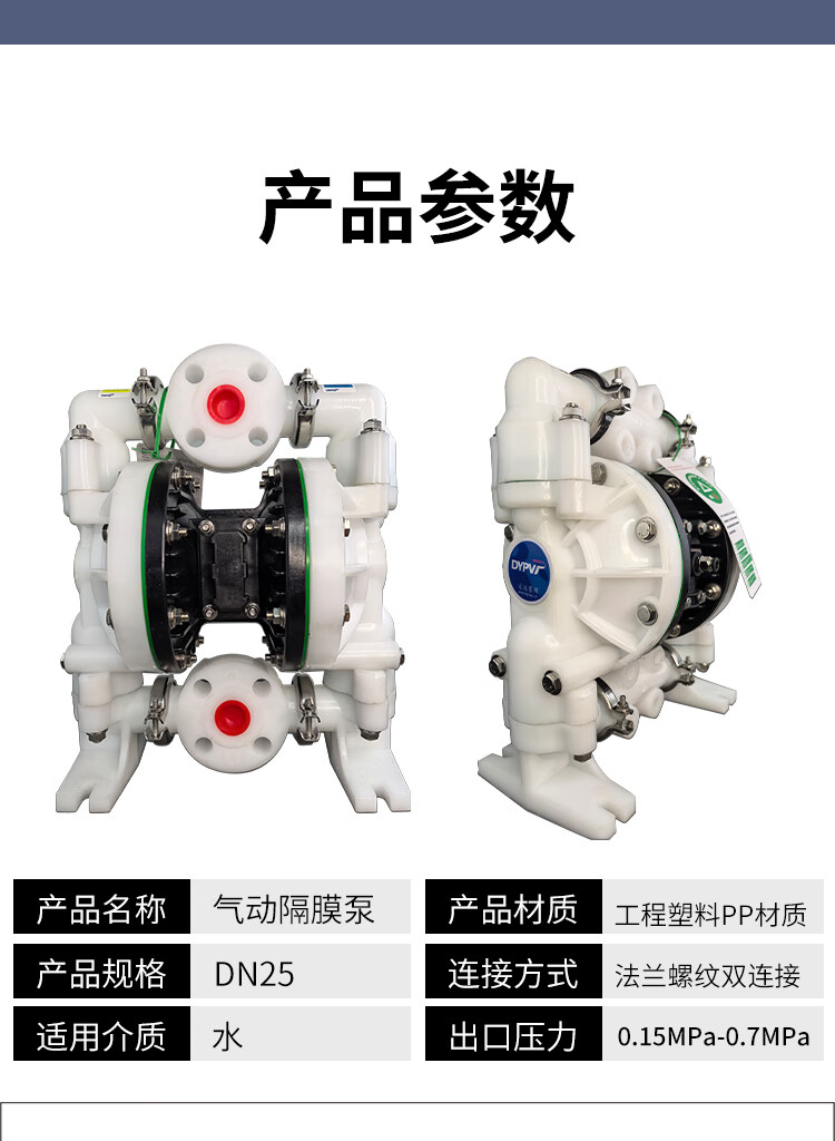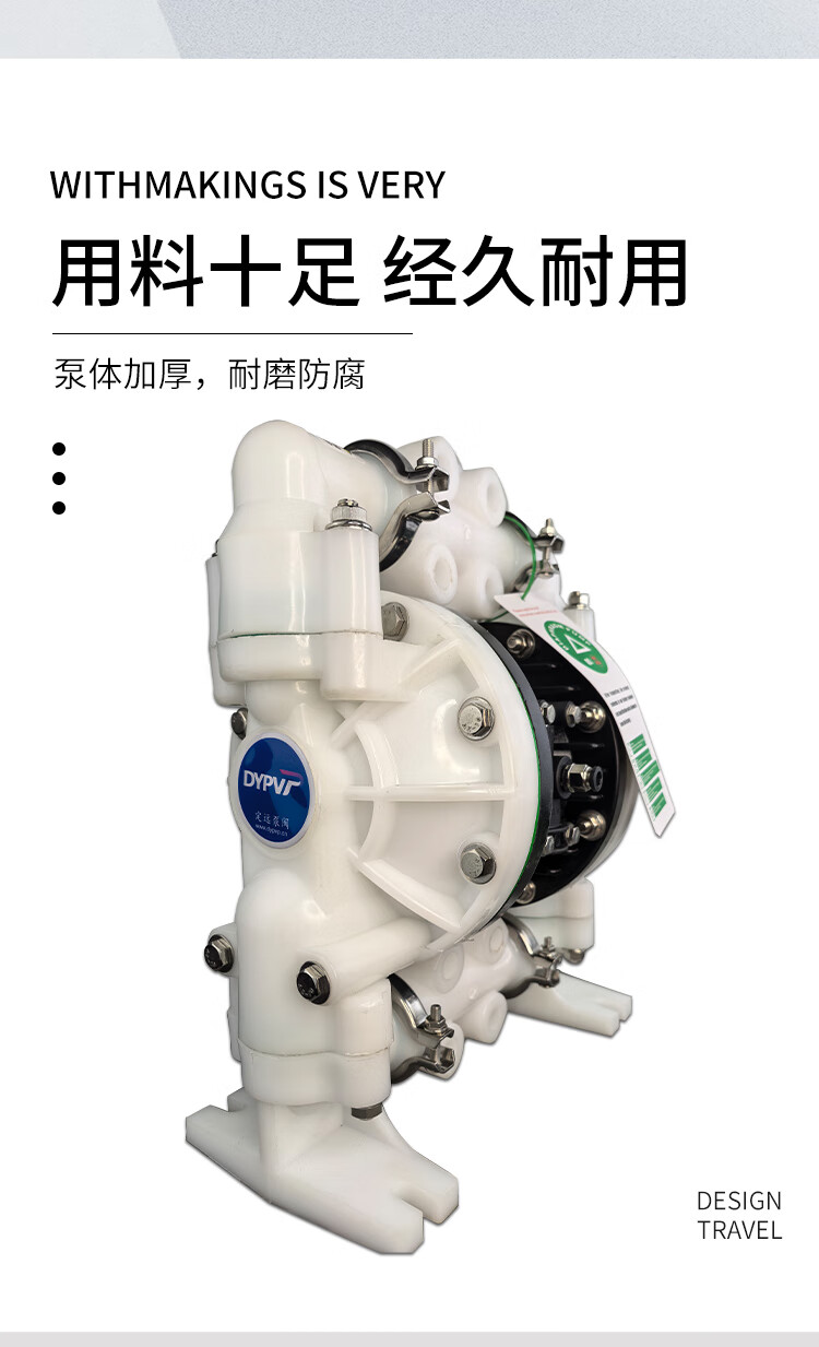 DYPV pneumatic diaphragm pump PVDF/PP perfluorinated corrosion-resistant acid and alkali resistant glue extraction wastewater Teflon PTFE self-priming pump HMQBY-25APP plastic + Teflon diaphragm