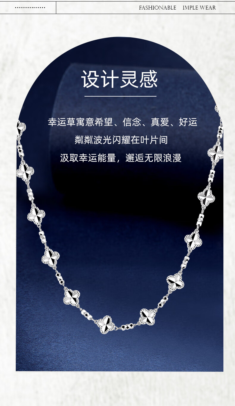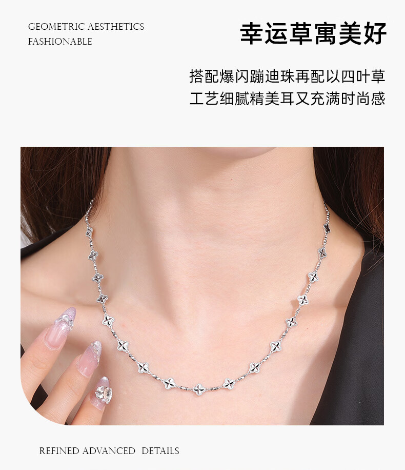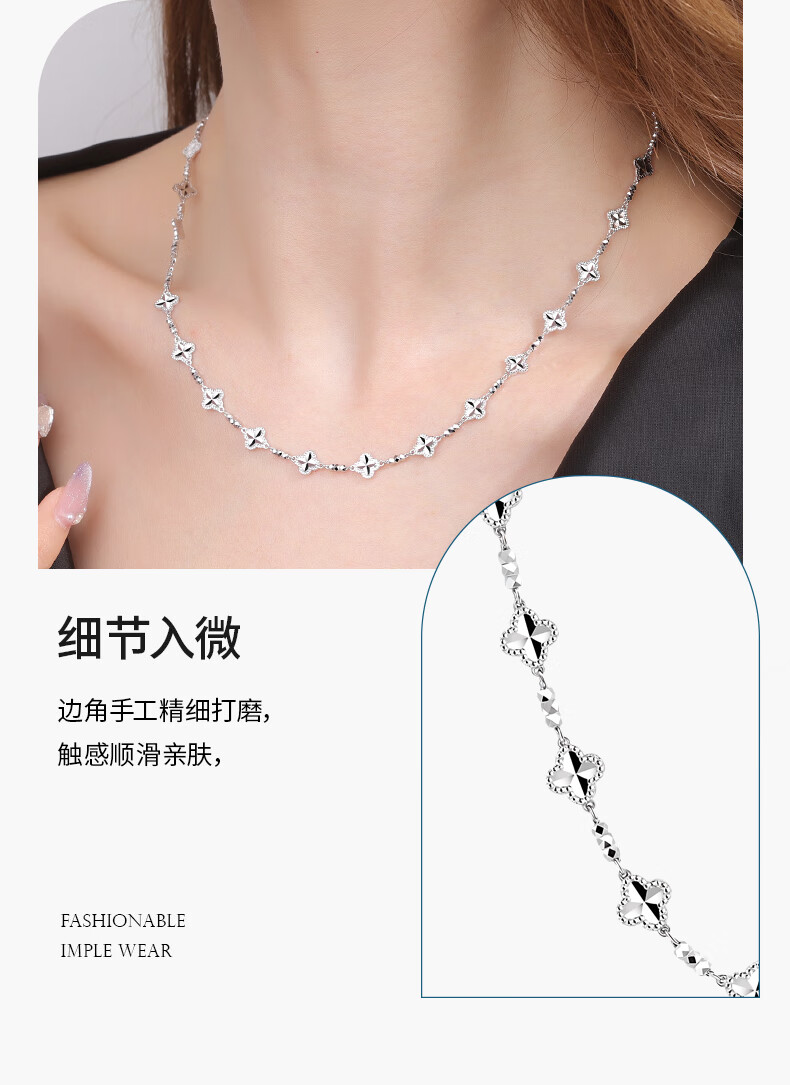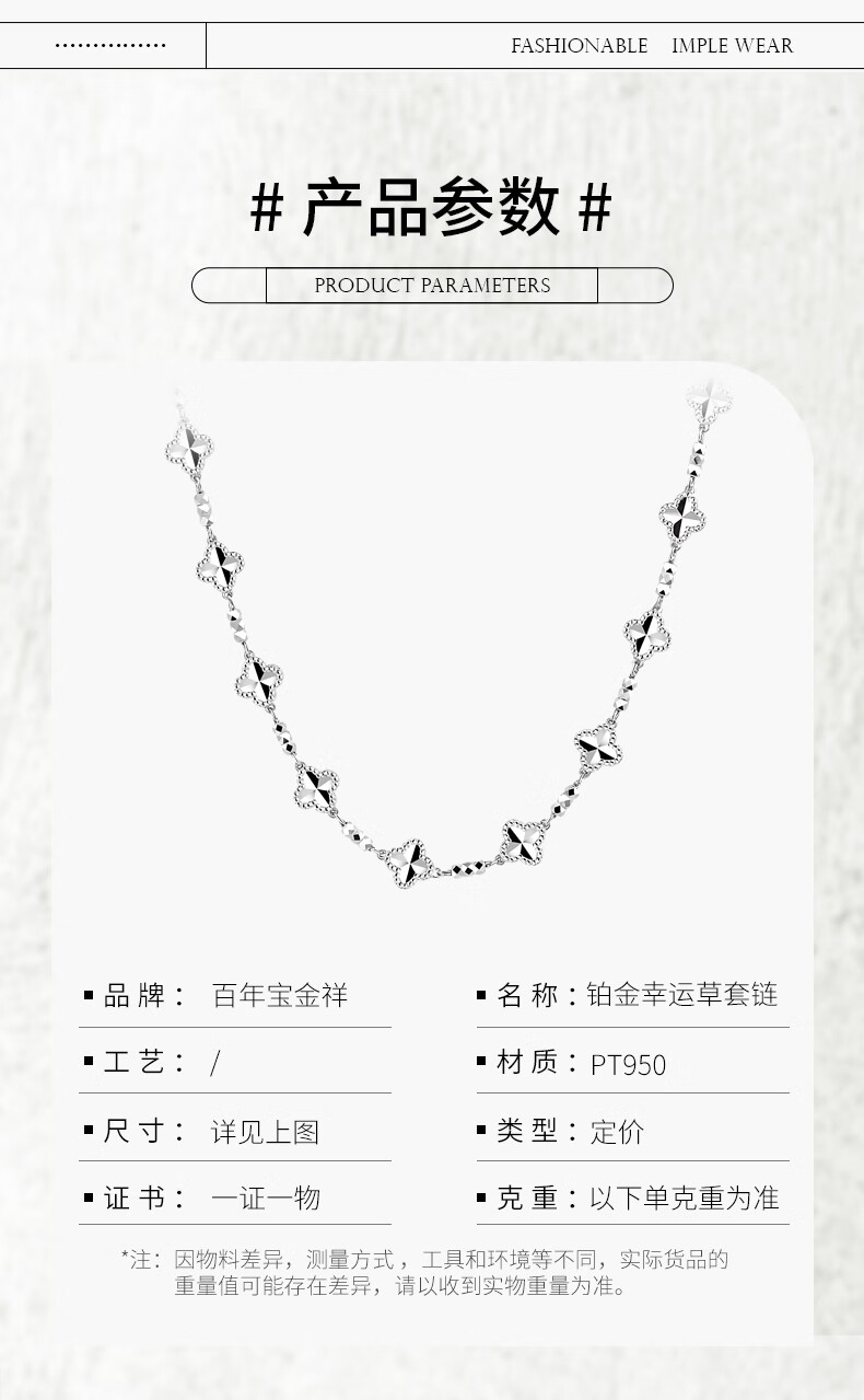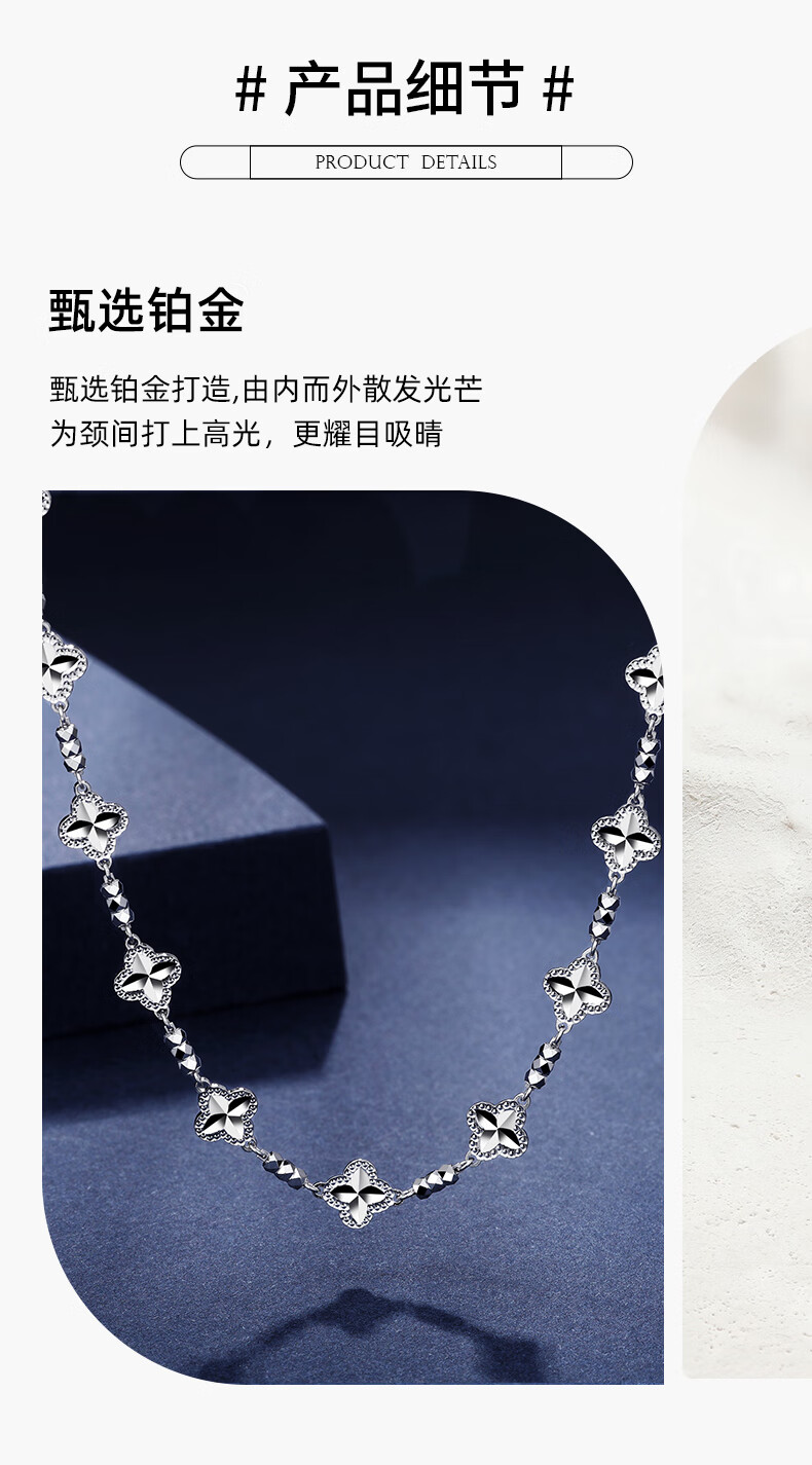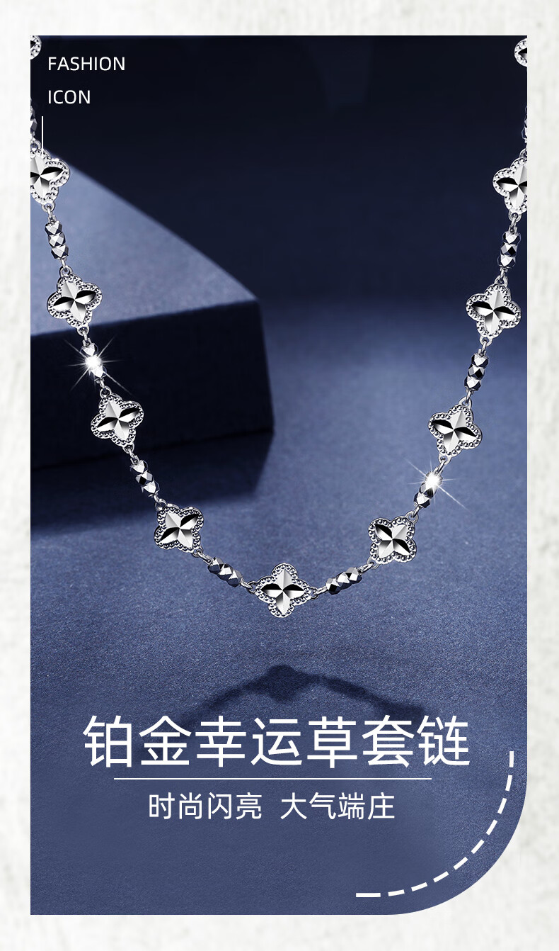 Centenary Baojinxiang platinum necklace for women pt950 genuine platinum set chain for women sparkling clover necklace birthday gift for girlfriend, about 42+3cm, weight about 13.1-13.3 grams