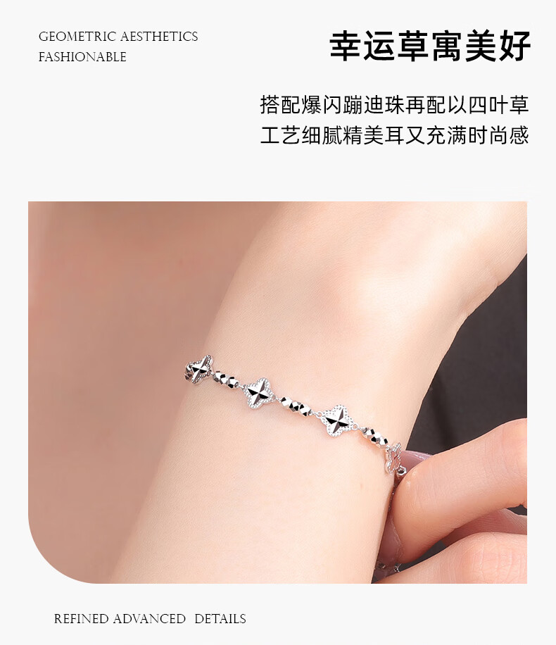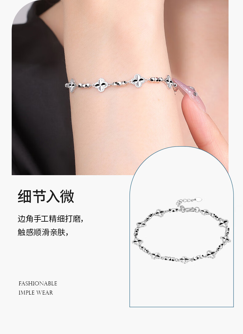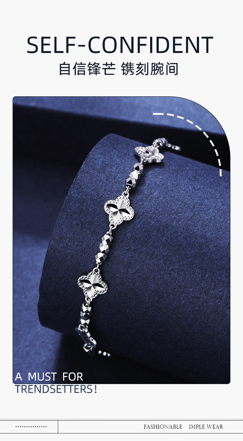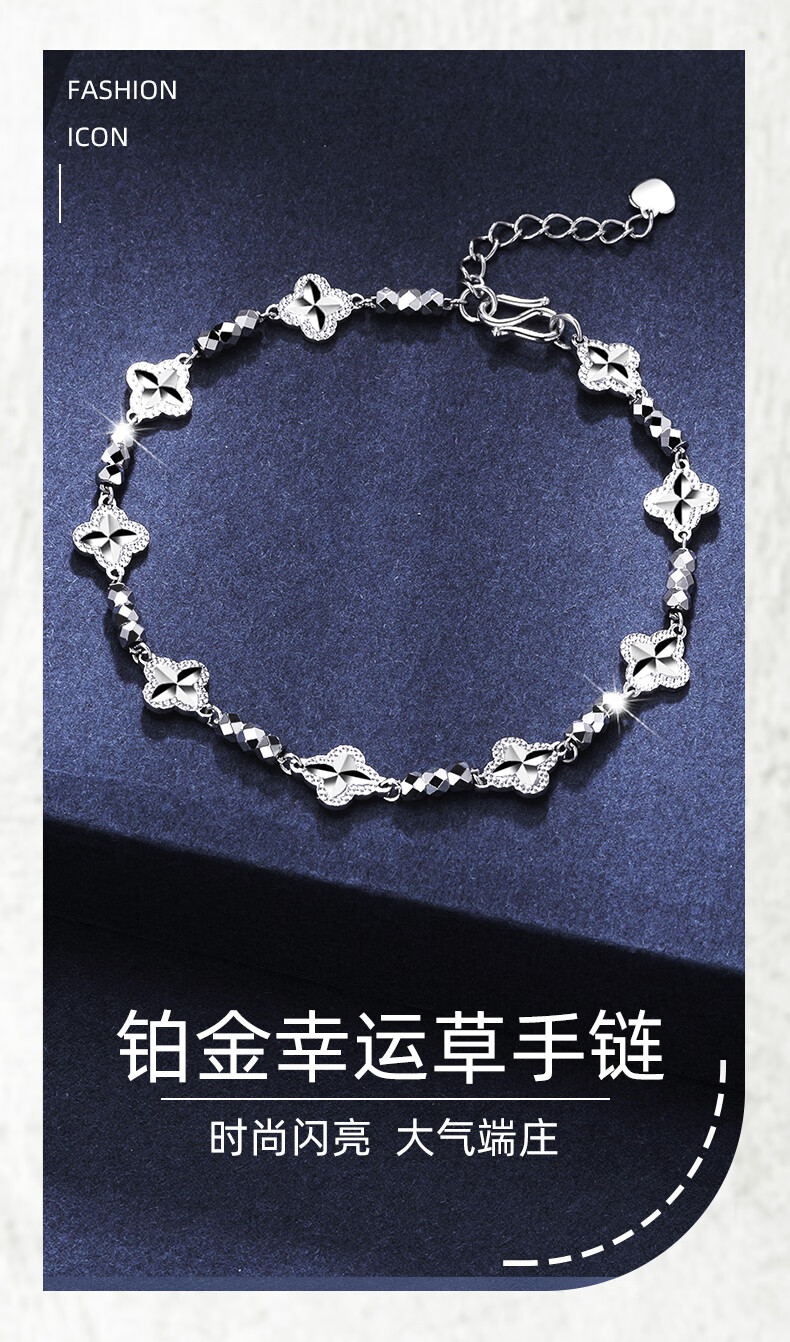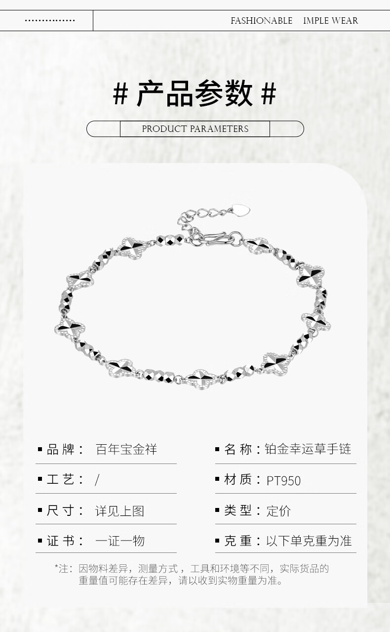 Centenary Baojinxiang new platinum bracelet for women pt950 genuine platinum bracelet for women sparkling clover bracelet birthday gift gift about 16+2.5cm weight 4.86-5.06 grams