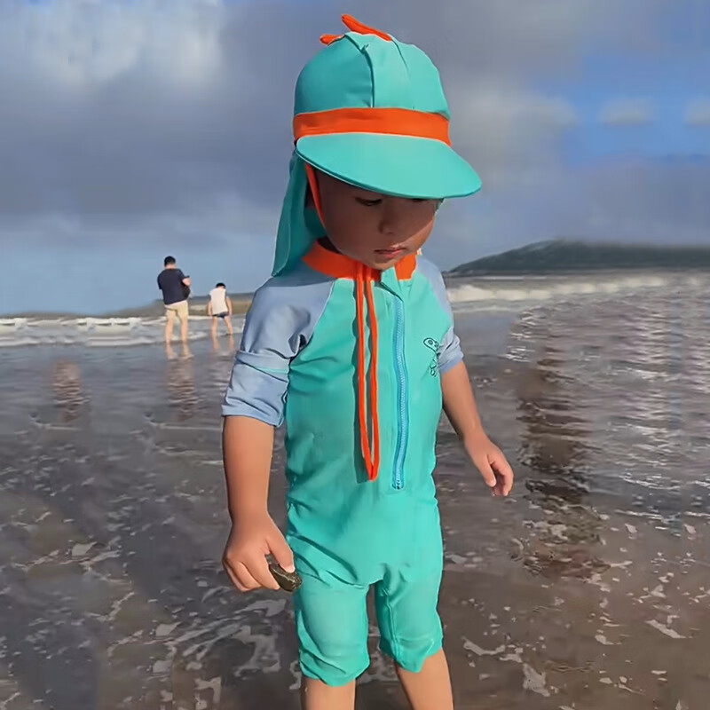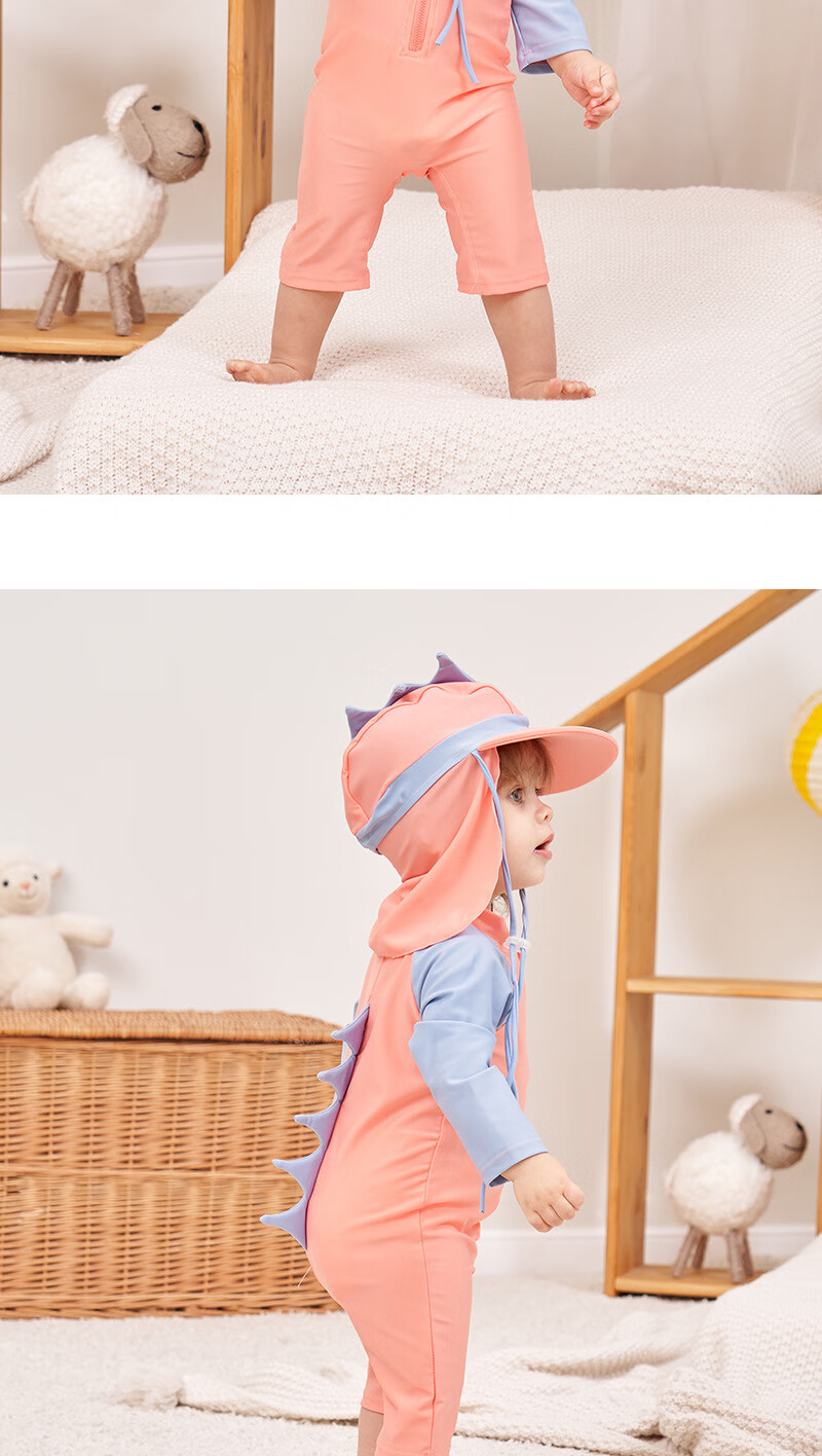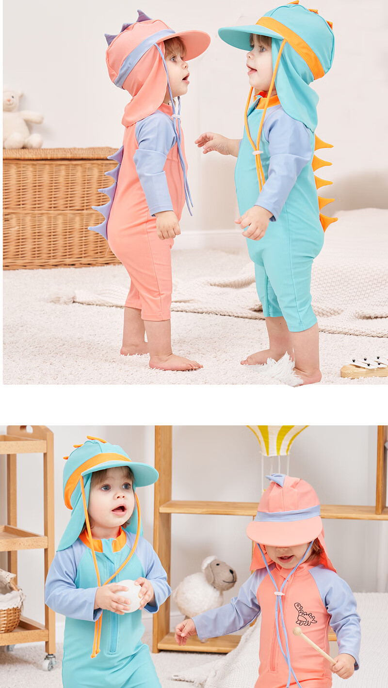Yun dye children's swimsuit 2025 new one-piece dinosaur horn sunscreen surf suit for boys and girls, infant and toddler quick-drying swimsuit 251 lake blue + sun protection hat 80 cm