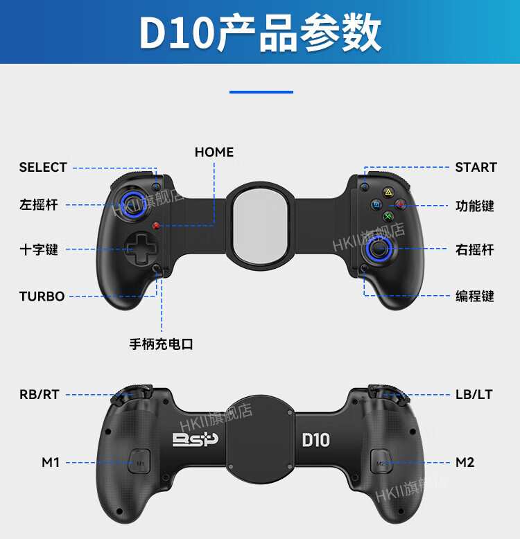 HKII mobile phone stretch handle Bluetooth wireless mobile game dedicated Android iOS dual-use King of Peace Elite portable game handle adjustable Android Apple portable Genshin Impact Honkai Impact D11s stretch handle - white