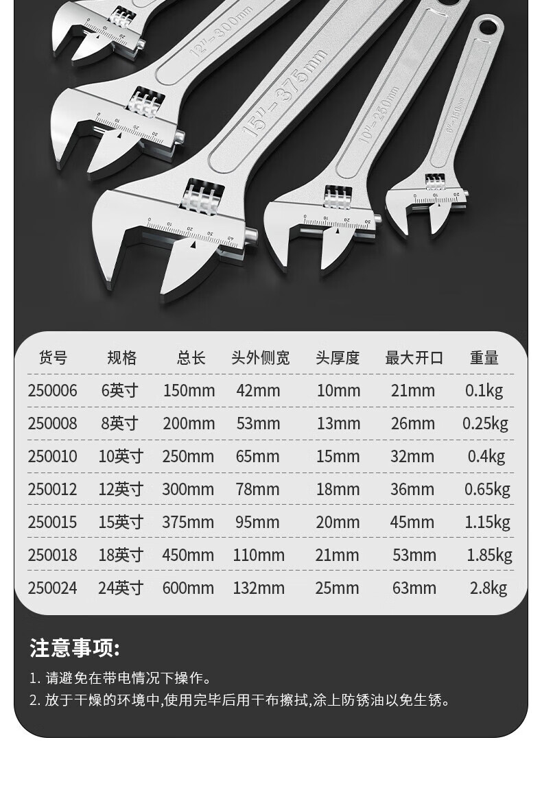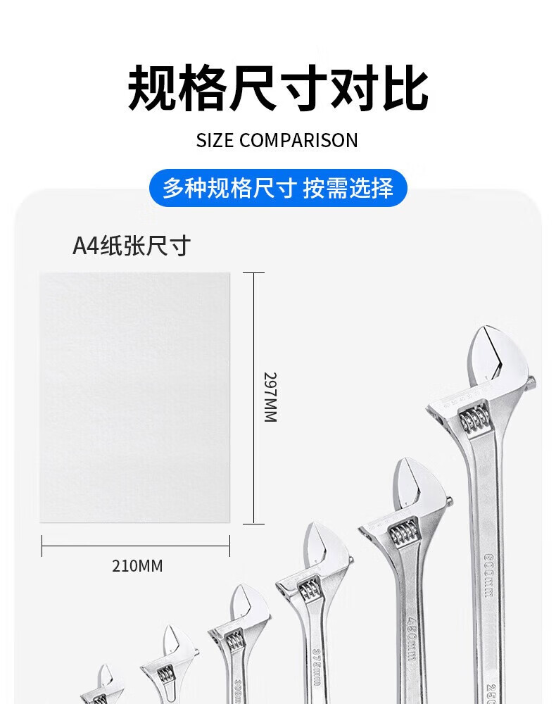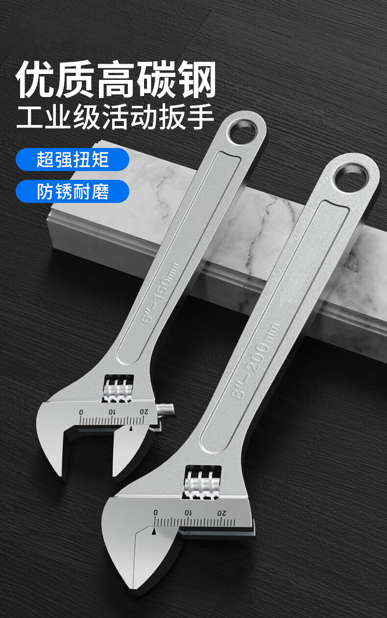 Jingxi Selection Adjustable Wrench Set Tools Adjustable Wrench Large Opening Multi-Function Bathroom Adjustable Wrench 6-inch Adjustable Wrench Industrial Grade Chrome-plated Polished Handle