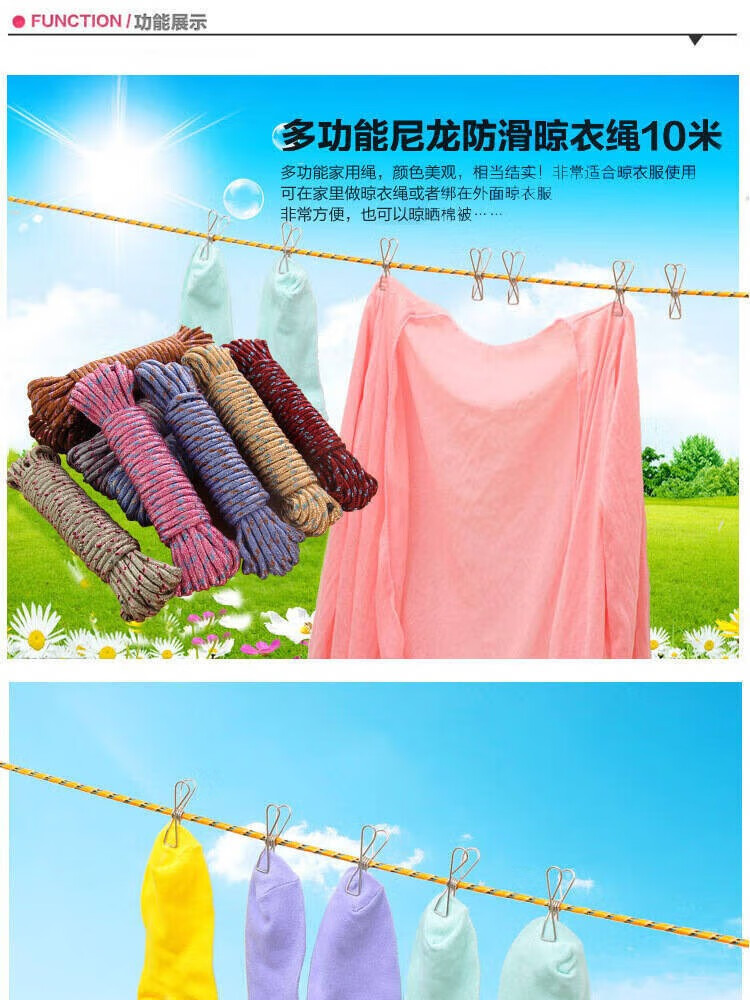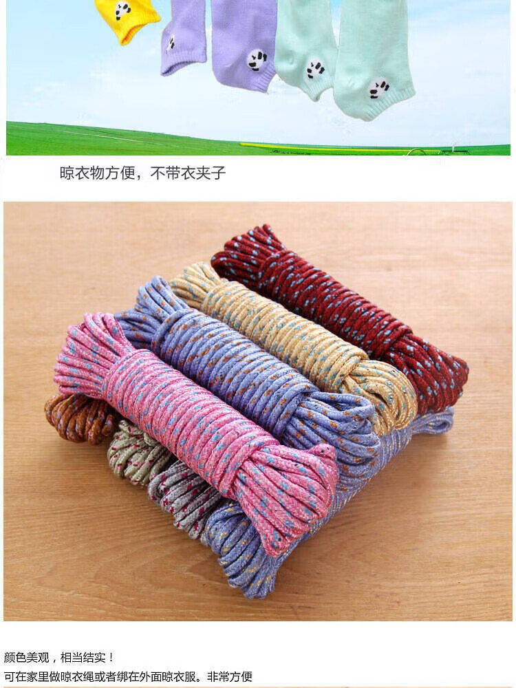 Outdoor motorcycle electric vehicle packing rope binding rope drying quilt wear-resistant woven nylon rope clothes drying artifact bold clothesline 1 pack (color random)
