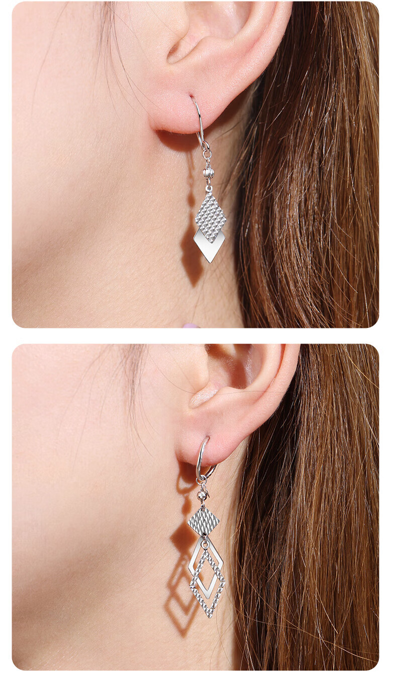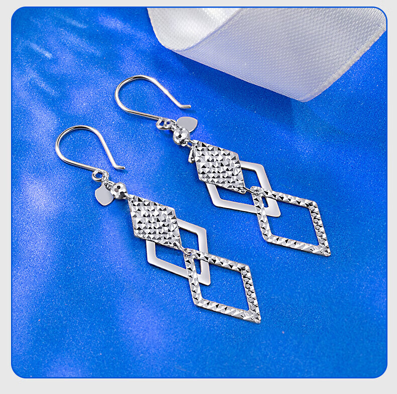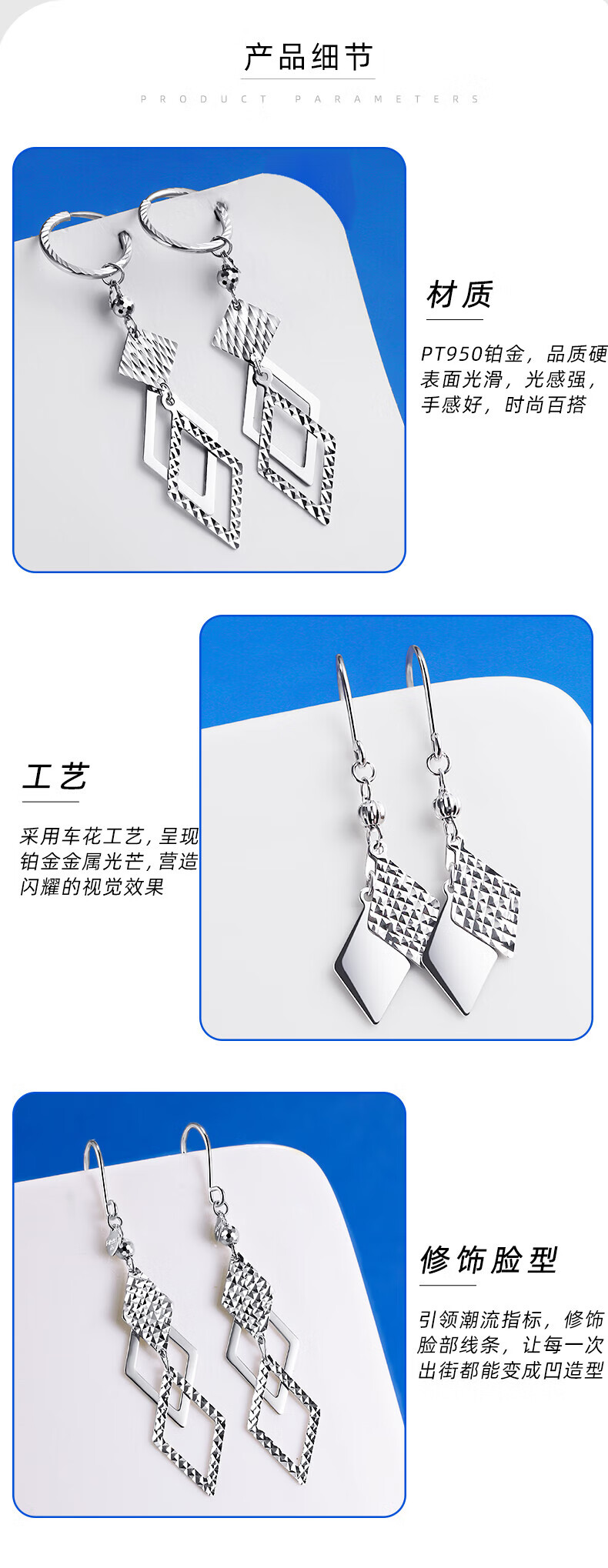 Bovia Pt950 platinum earrings for women, long platinum earrings, diamond-shaped ear hooks, geometric earrings, ear wires for girlfriend, diamond-shaped ear hooks (two pieces), about 2.4-2.6 grams