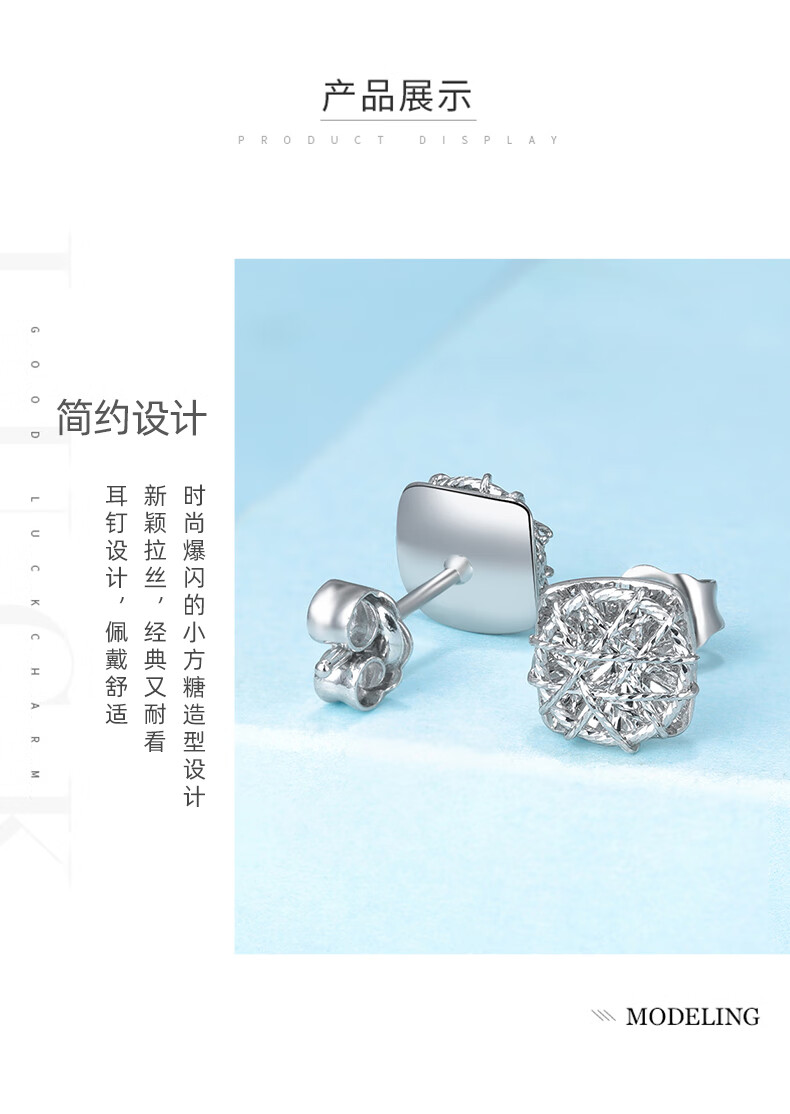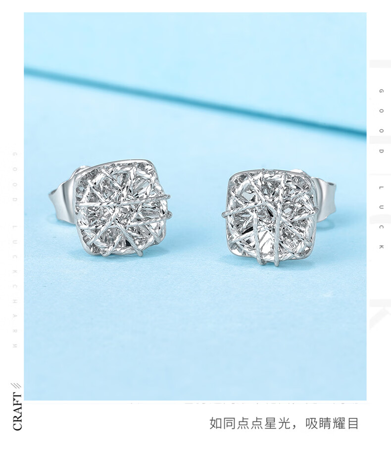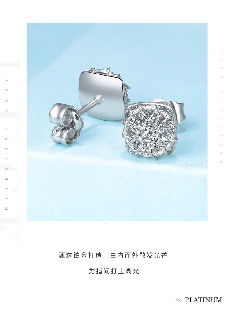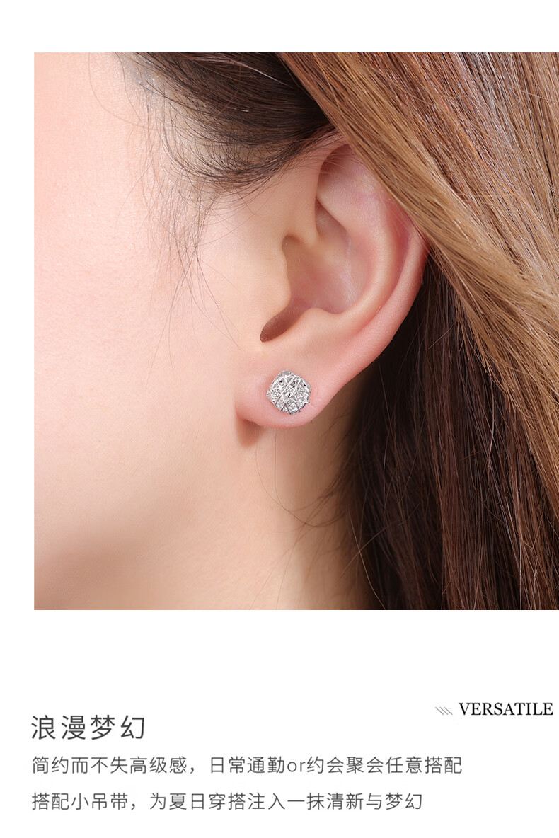 Centennial Baojinxiang Pt950 platinum women's imitation diamond earrings, earrings and earrings, genuine 950 platinum sparkling small sugar cube earrings as a gift, weighing about 3.4-3.6 grams, platinum large sugar cube earrings