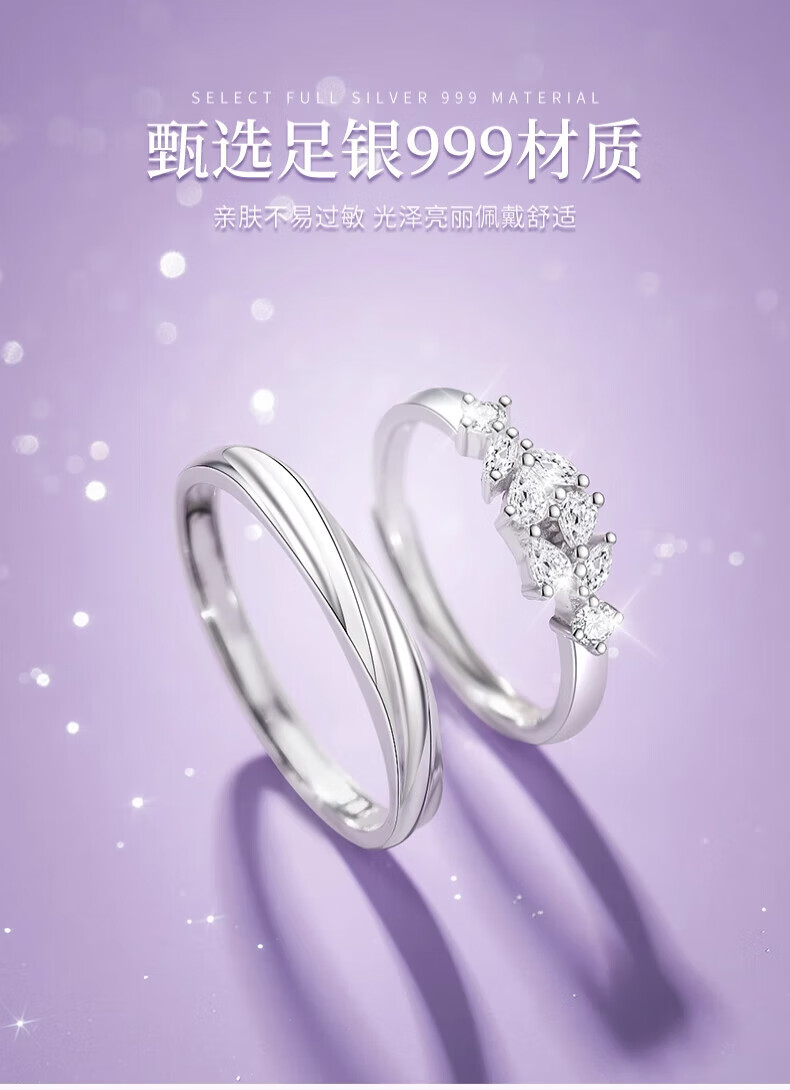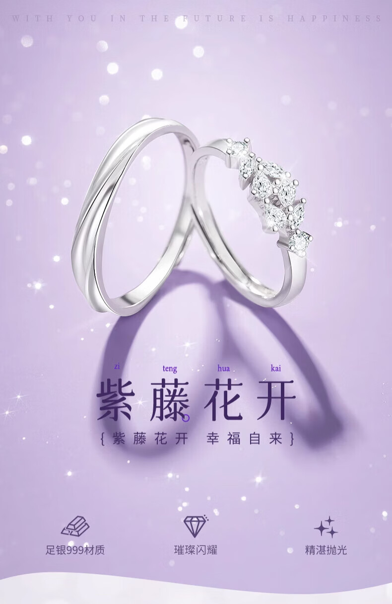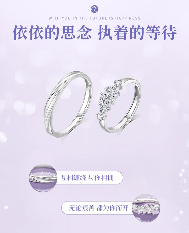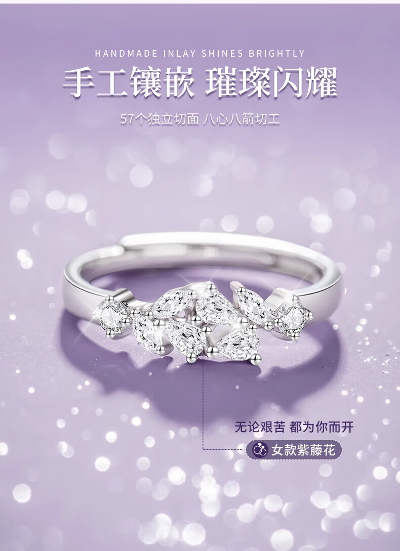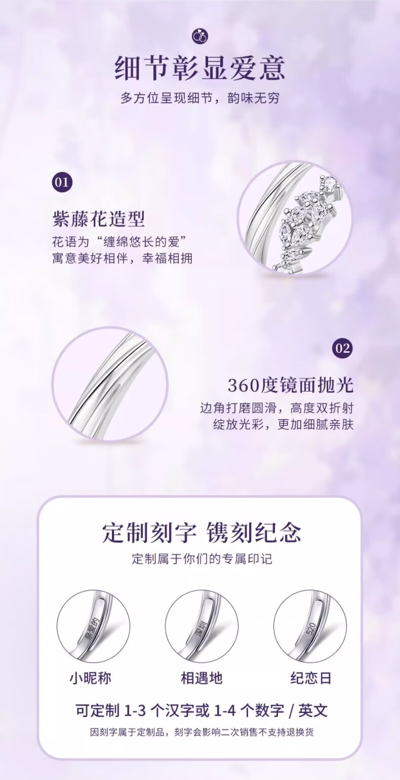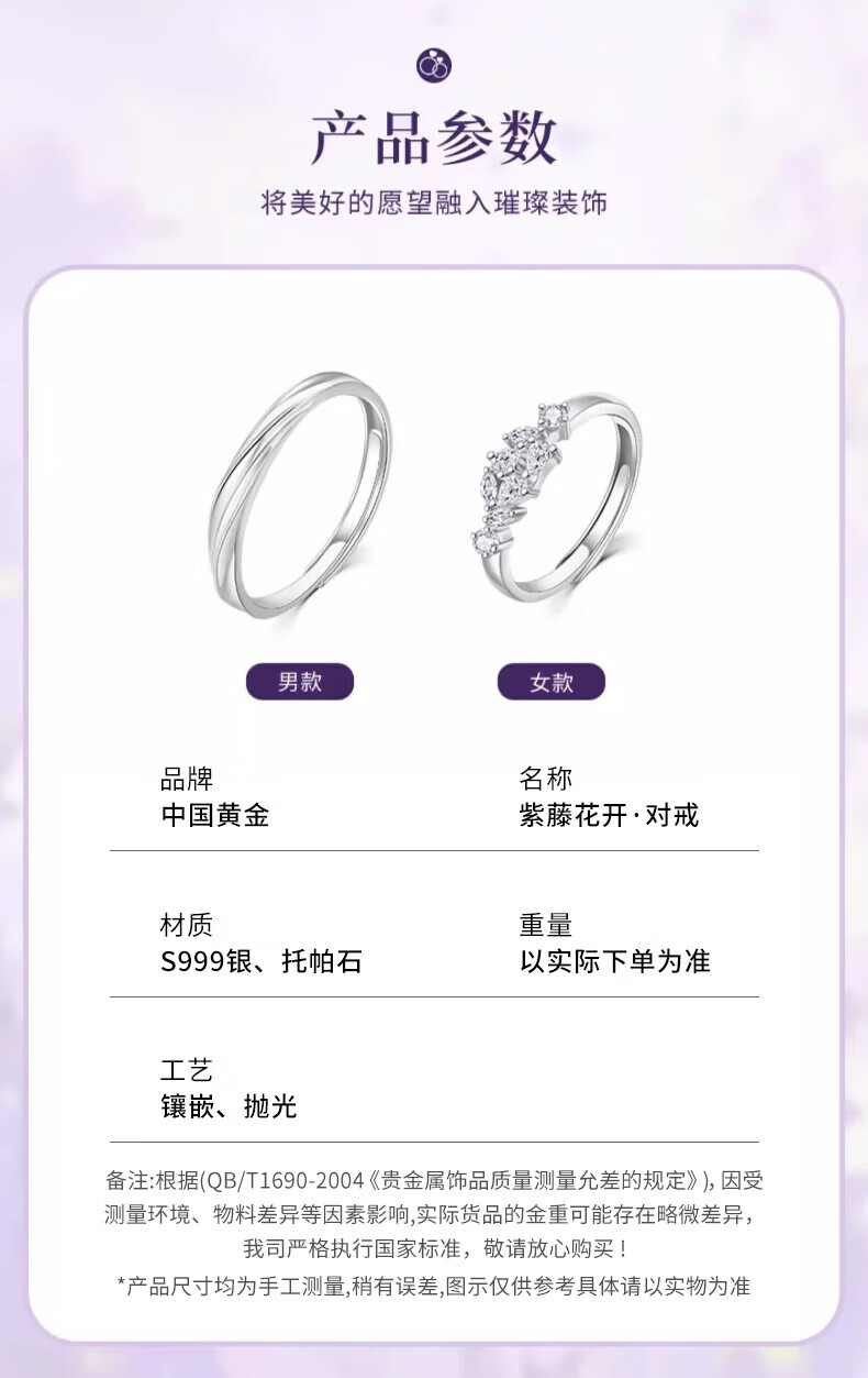 CHINA GOLD Pure Silver Wisteria Flower Couple Ring Women's Sterling Silver Ring for Men and Women Valentine's Day Birthday Gift for Girlfriend and Wife Wisteria Flower Couple Ring-999 Silver Brand Gift Box