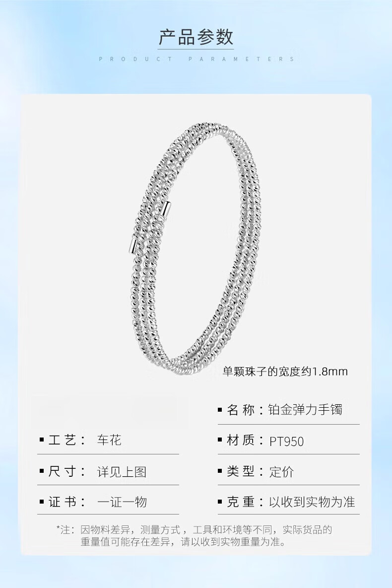 Pavilion pt950 platinum bracelet for women, elastic laser bouncy bead bracelet, sparkling round bead platinum bracelet bracelet gift, gold weight 2.9-3.1 grams, single circle elastic bracelet