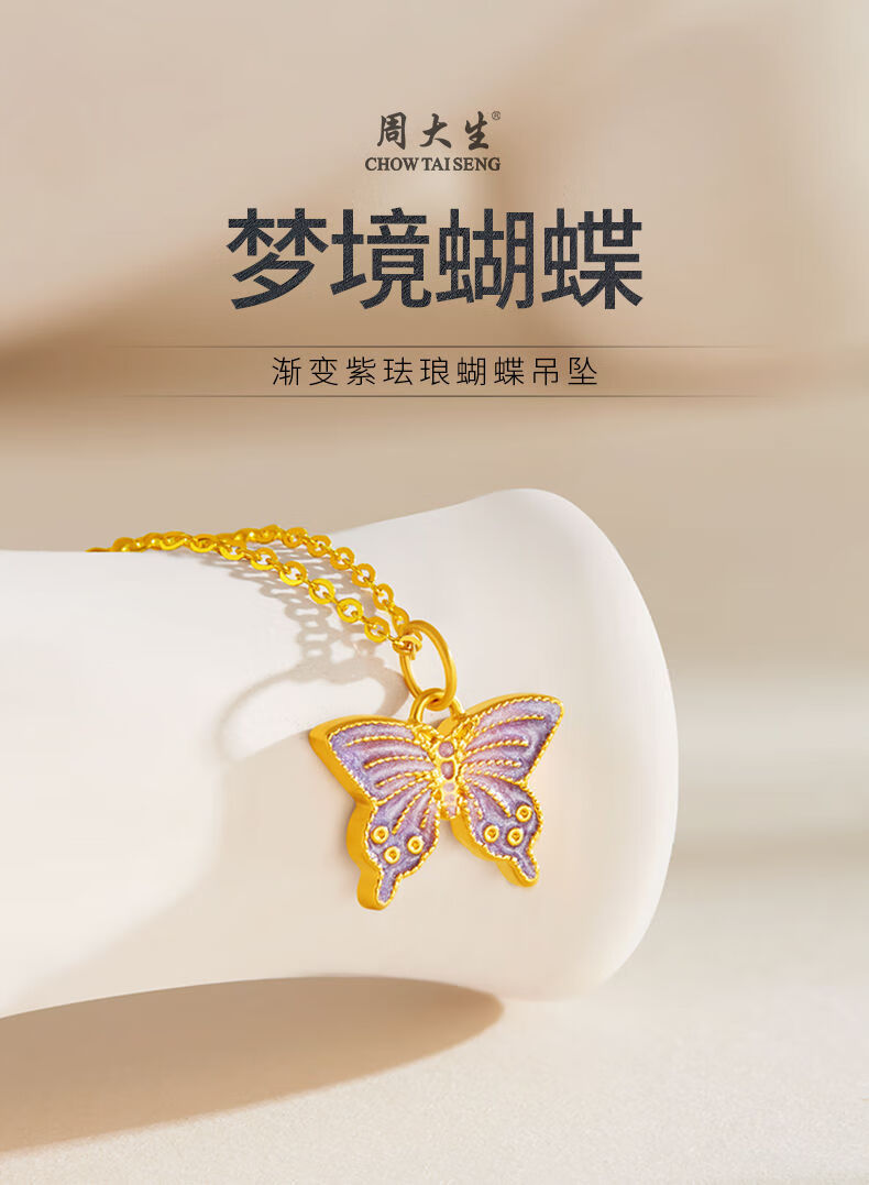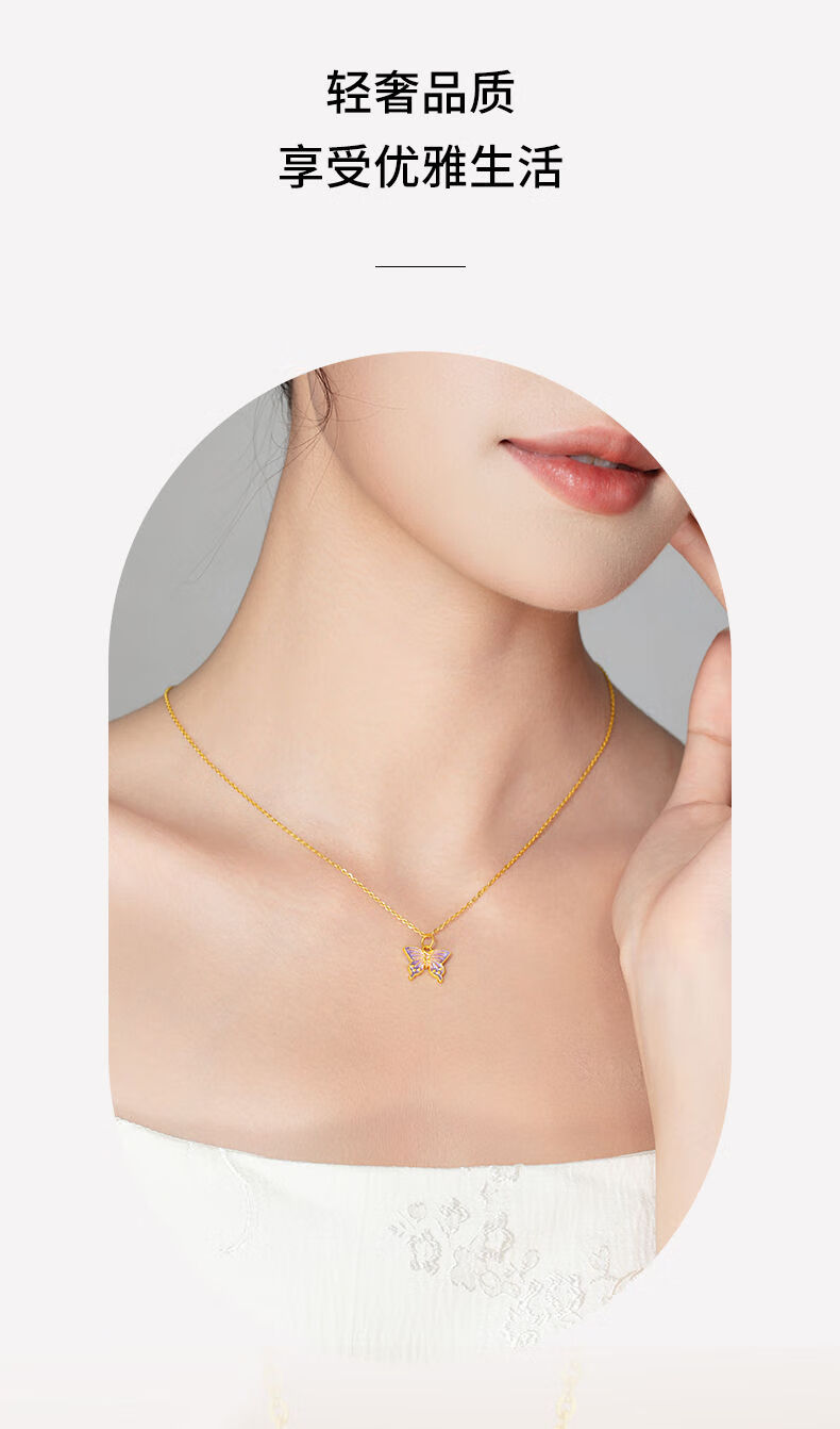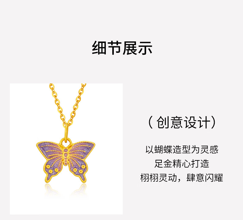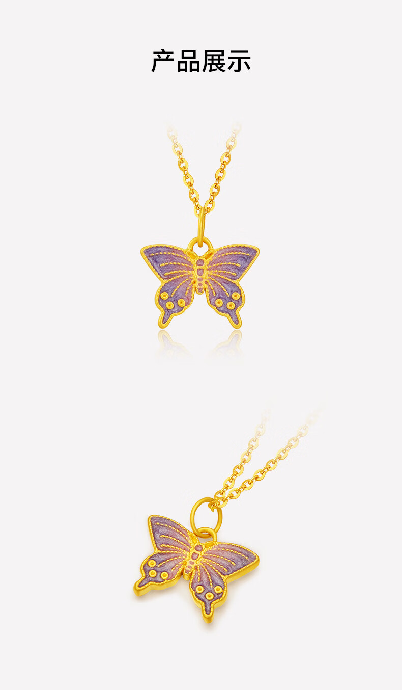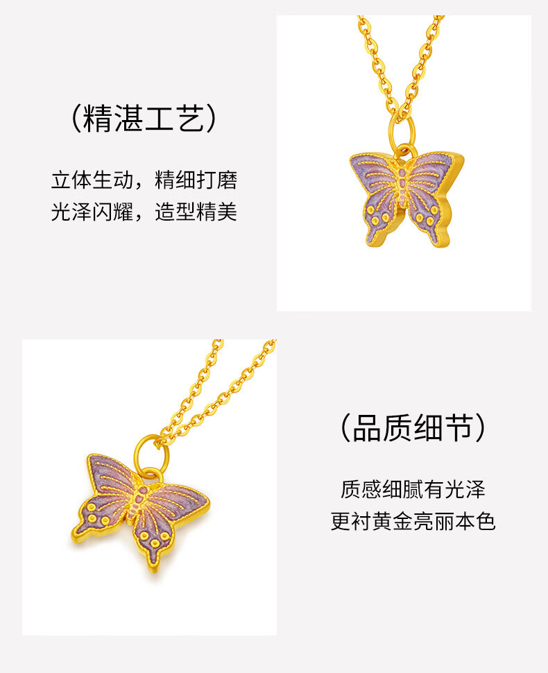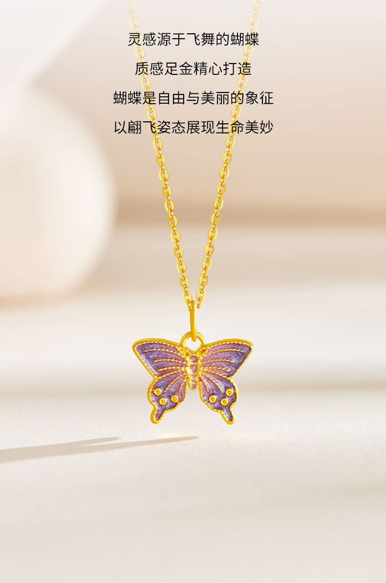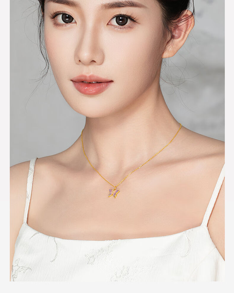 Shien Gold Pendant Pure Gold Purple Enamel Butterfly Pendant for Girlfriend, Wife and Mom Holiday Gift Pendant Pure Gold Gradient Purple Enamel Butterfly Pendant Free 925 0.6g