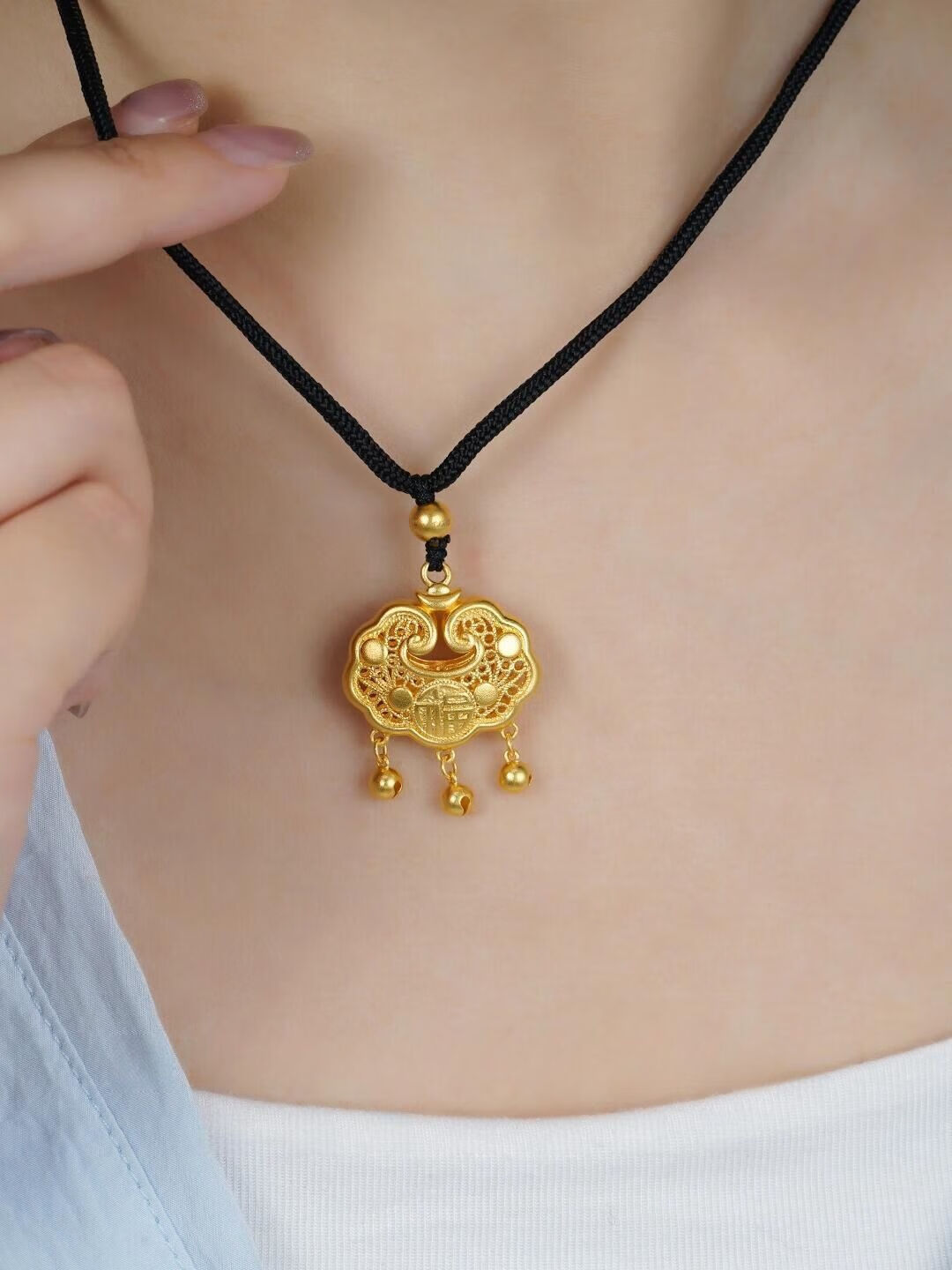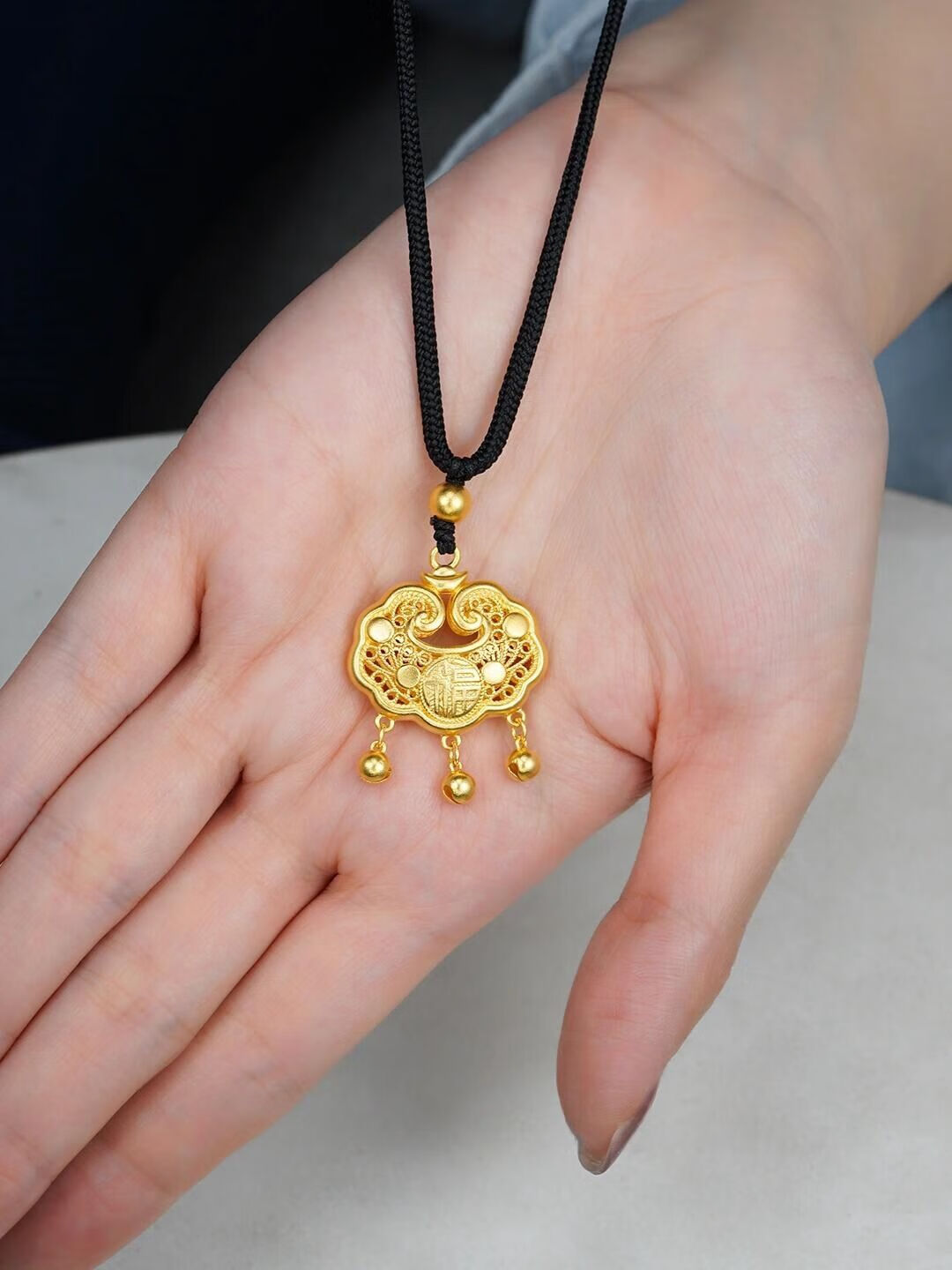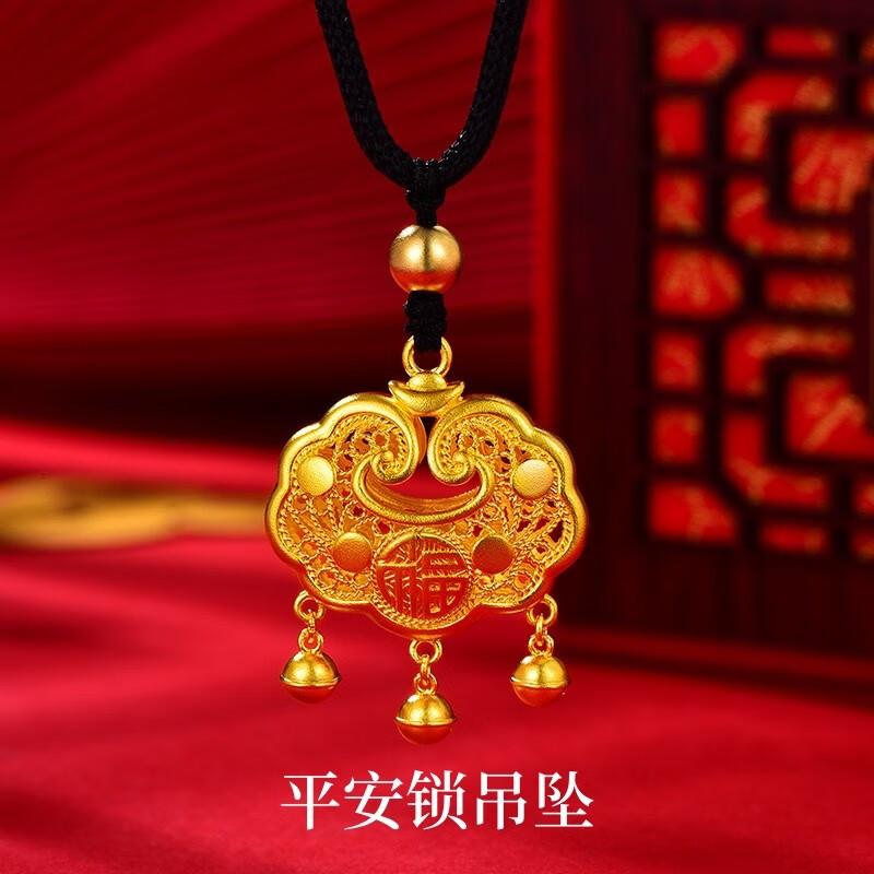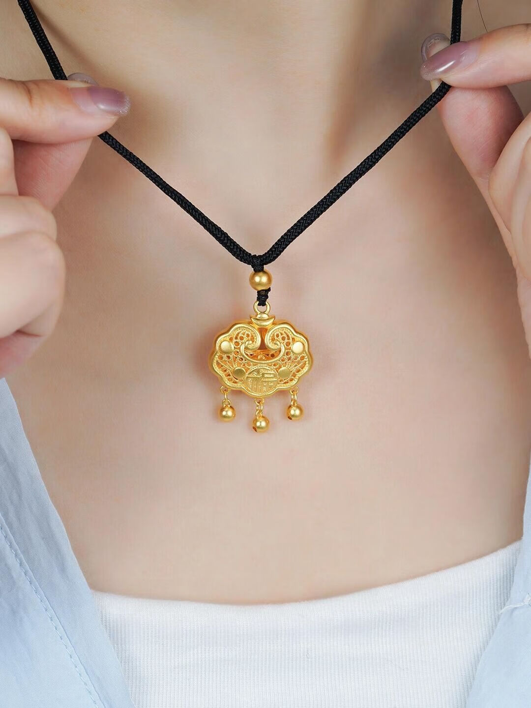 Shien Shenzhen Shuibei Gold Ping An Fu Lock Pendant Women's 999 Pure Gold Silver Baby's Birthday Red Rope Necklace Ping An Lock (17*22mm) Adult Black Rope