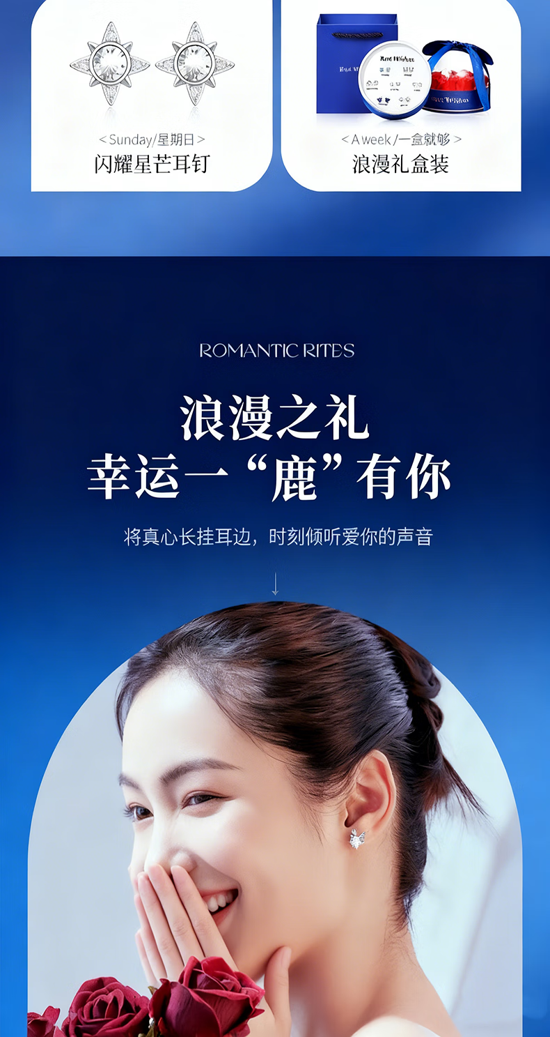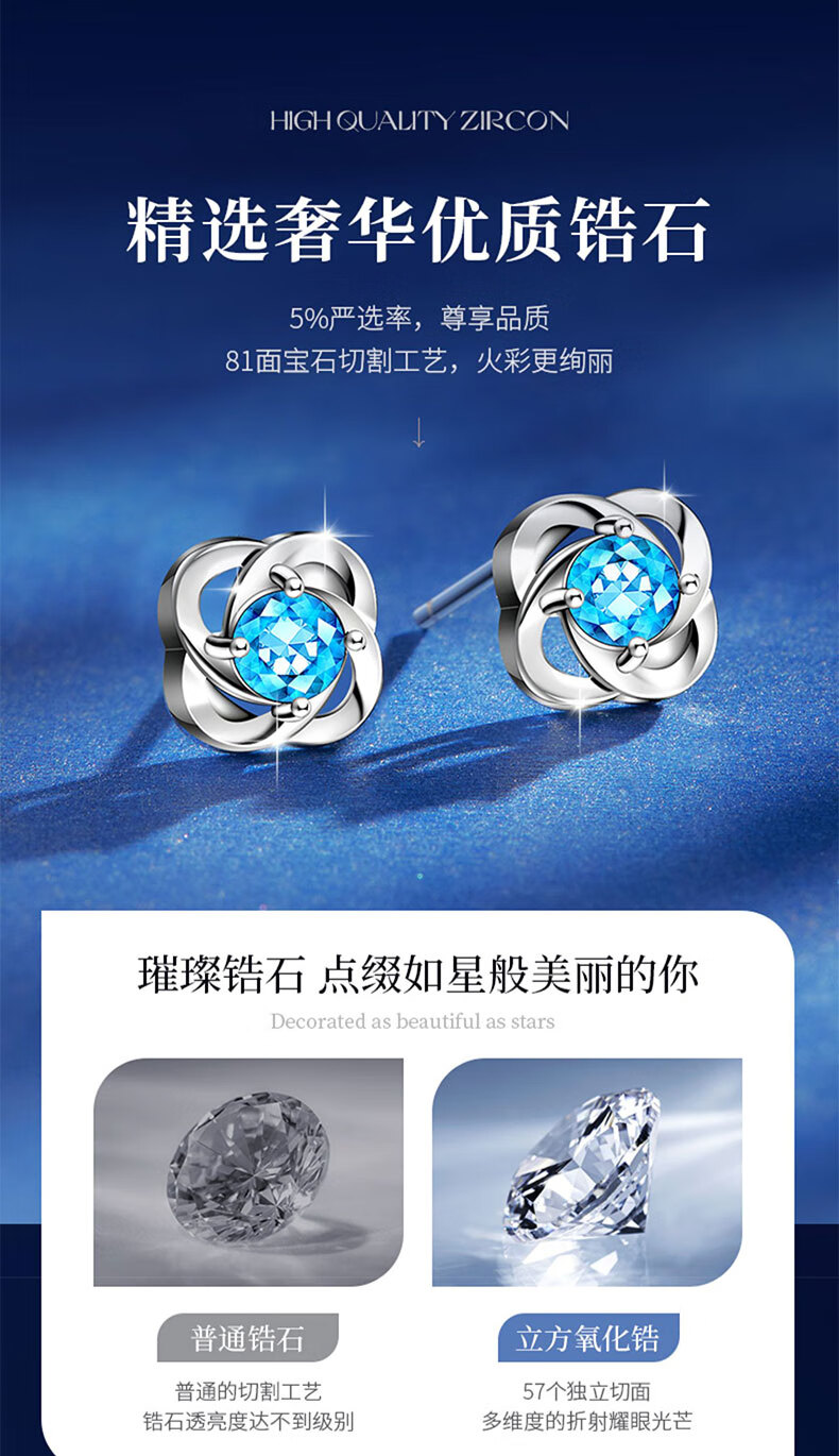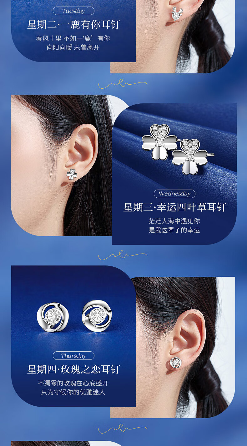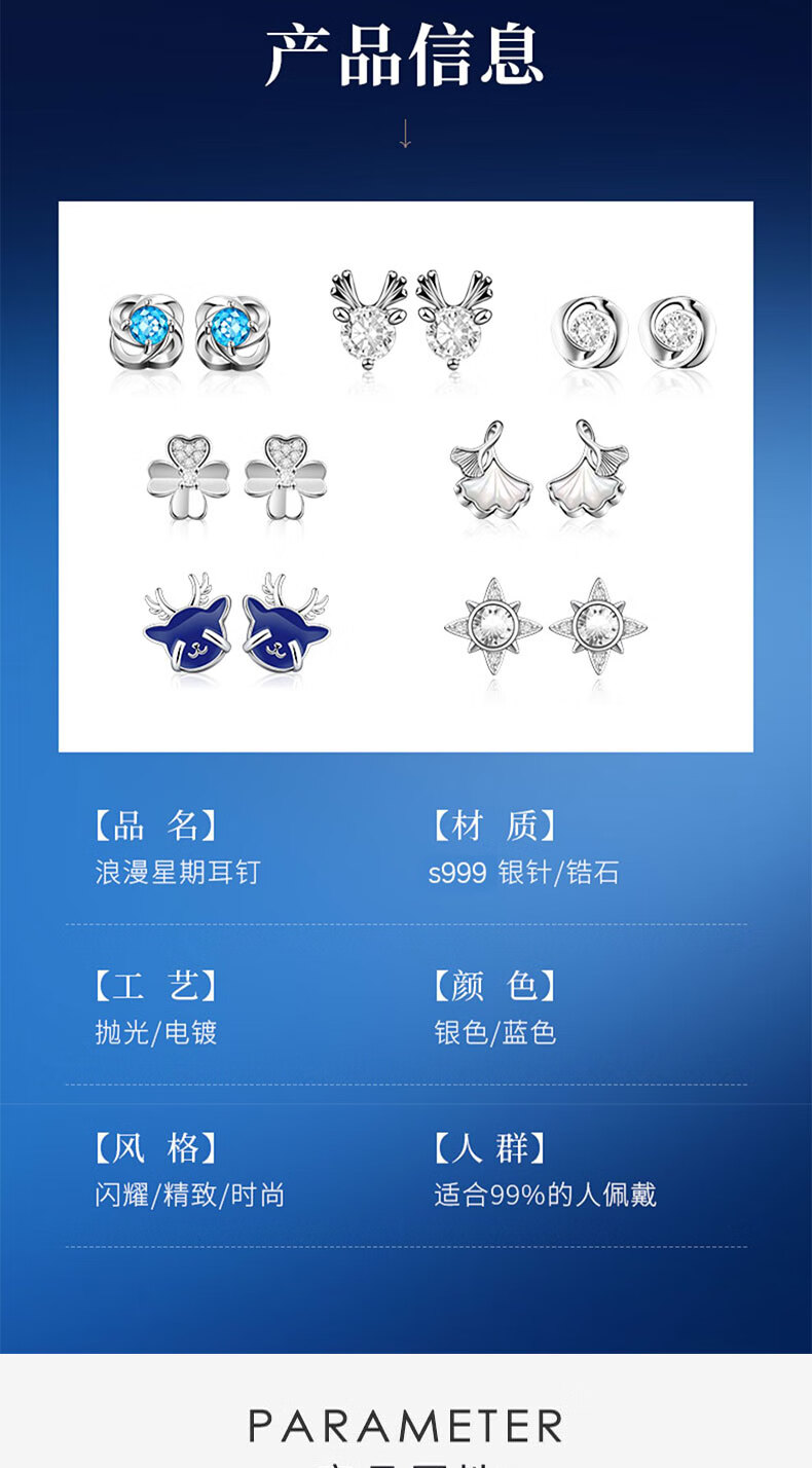 Bo Naling One Week Earrings Gift Box S999 Silver Earrings Weekly Set for Girlfriend and Wife Chinese Valentine's Day Birthday Gift One Week Earrings S999 Silver Needle Certificate + Gift Box